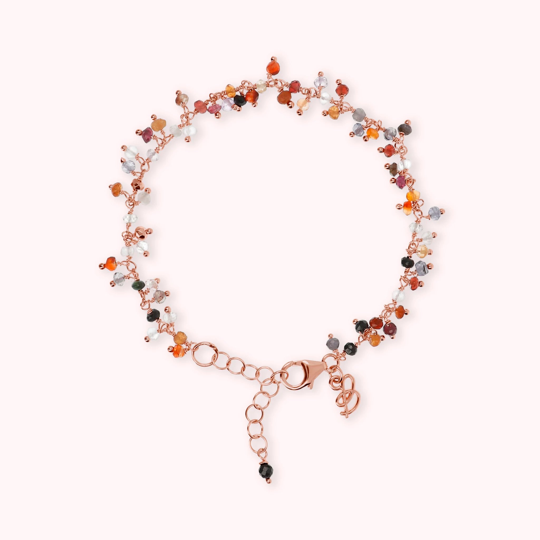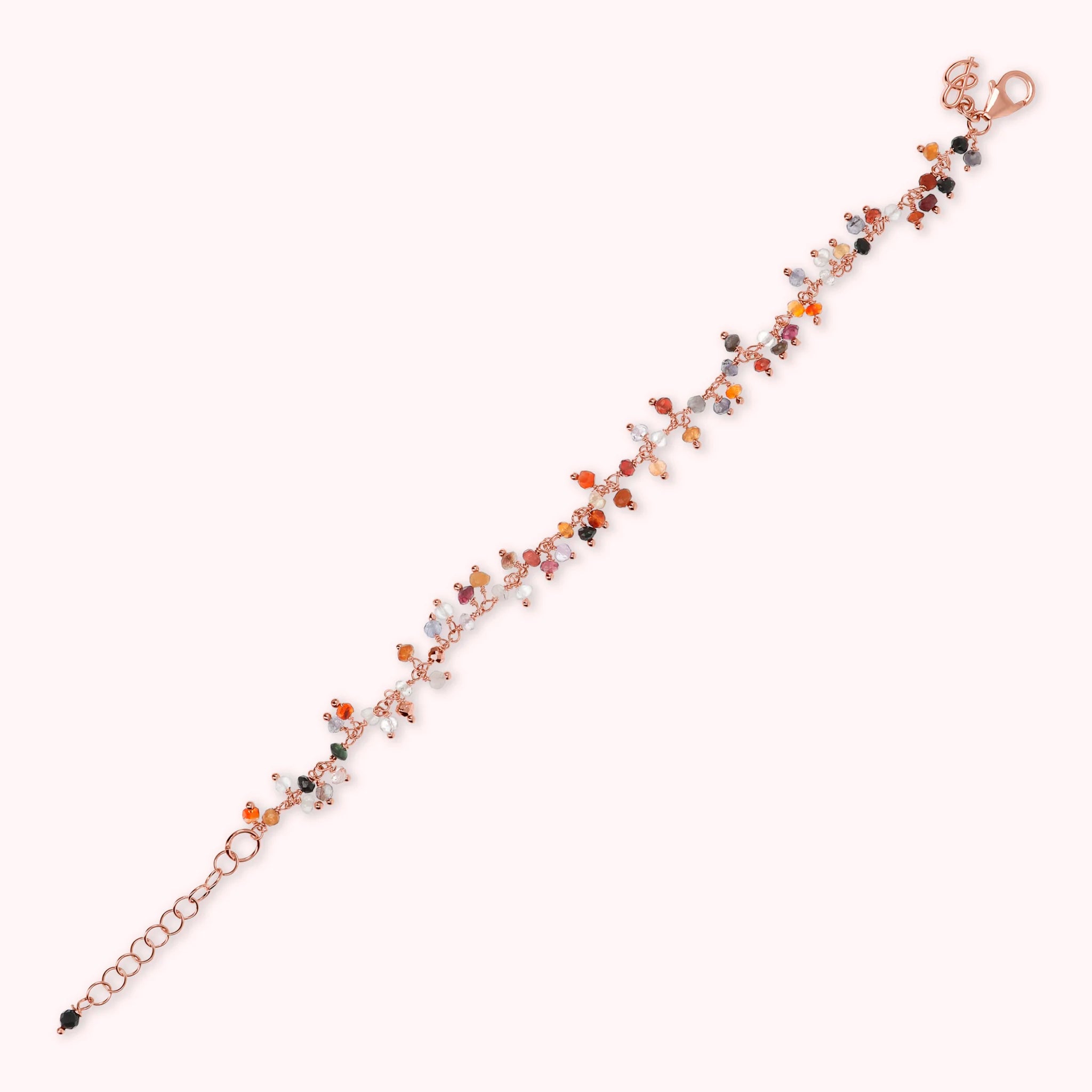 Bronzallure bracelet made on a Golden Rosé base, 18kt rose gold plated, embellished with small pendants in multicolor quartz; lobster clasp with extender.