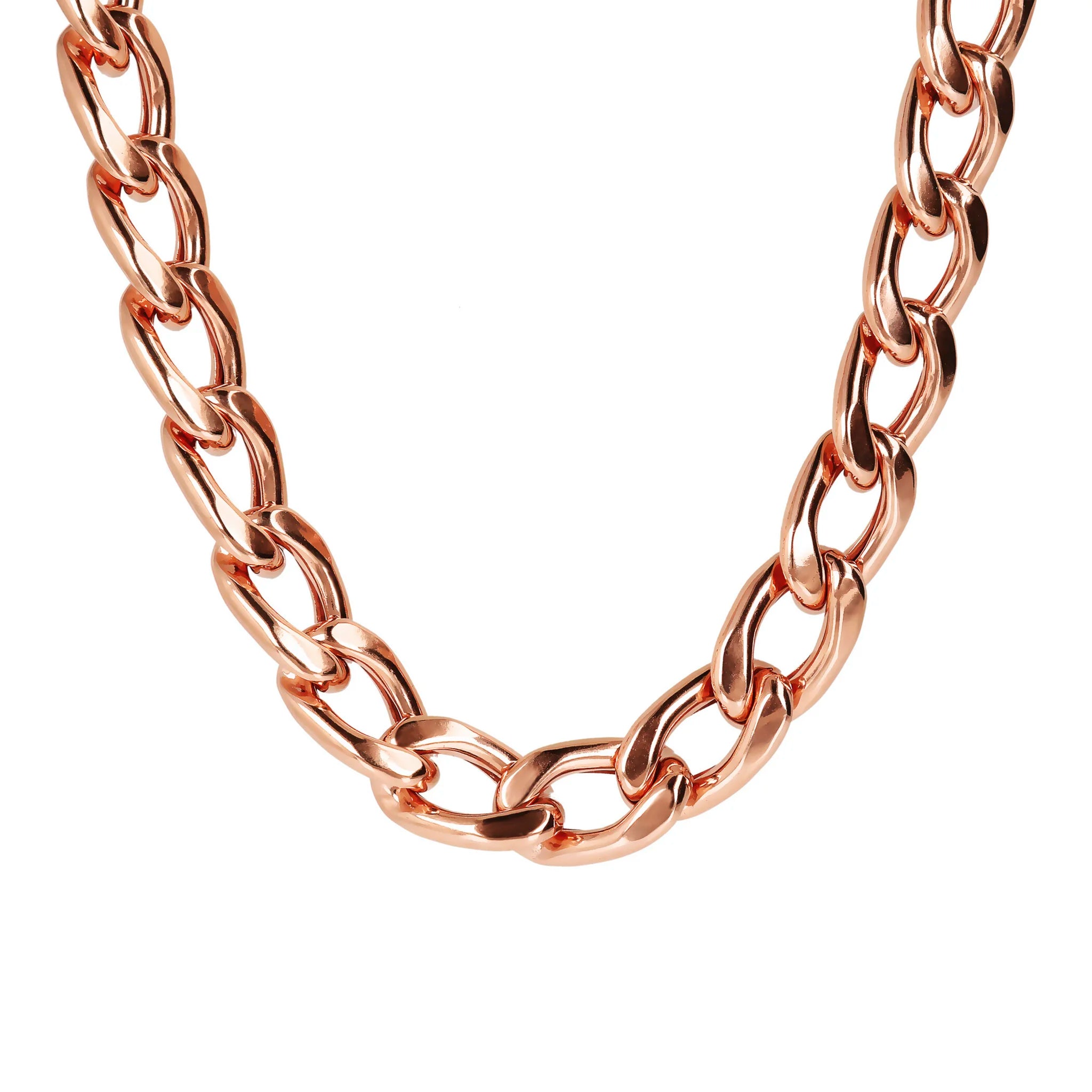 Bronzallure necklace made of Golden Rosé alloy, 18kt rose gold plated, with thick diamond-cut curb chain; lobster clasp.