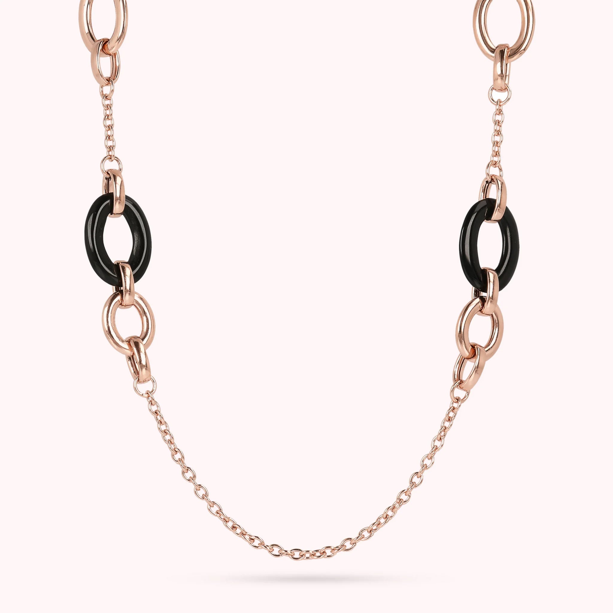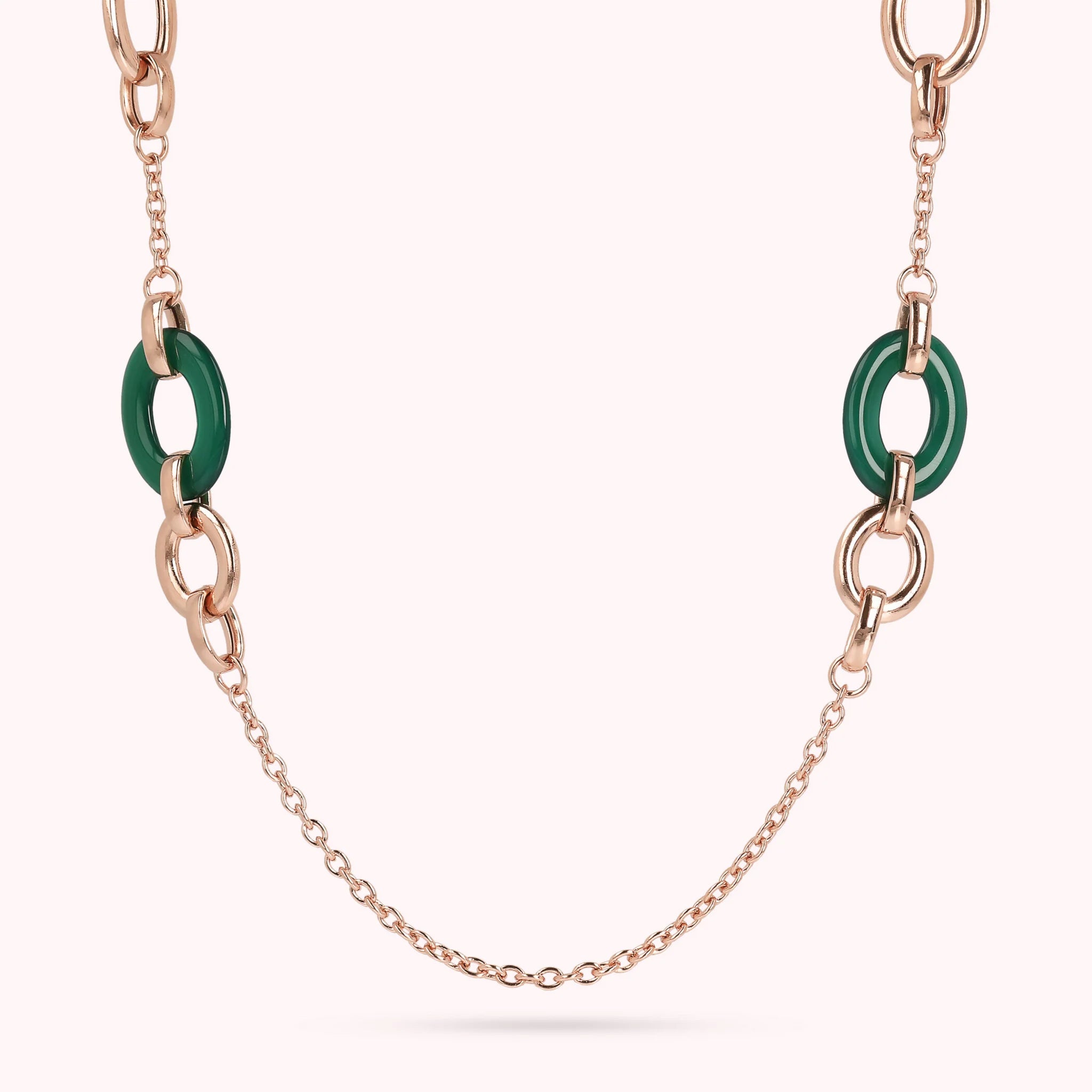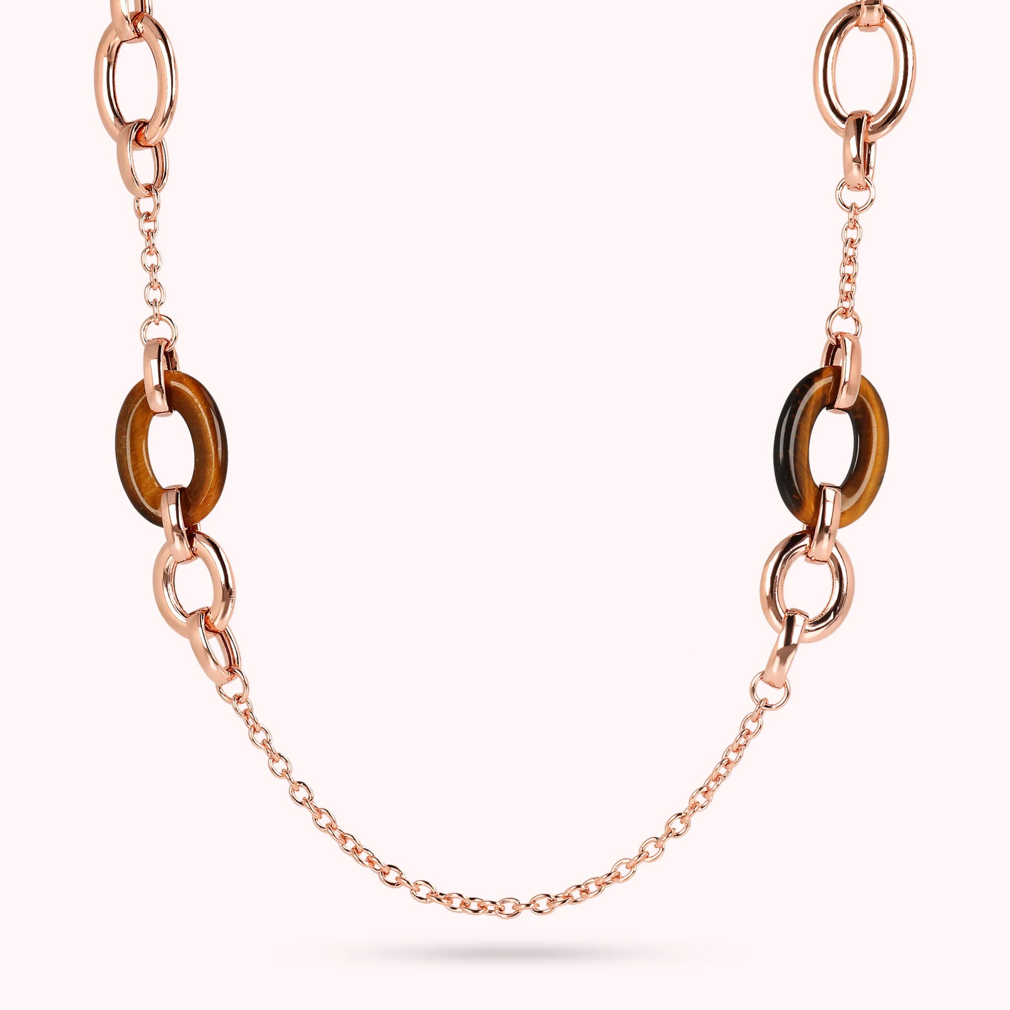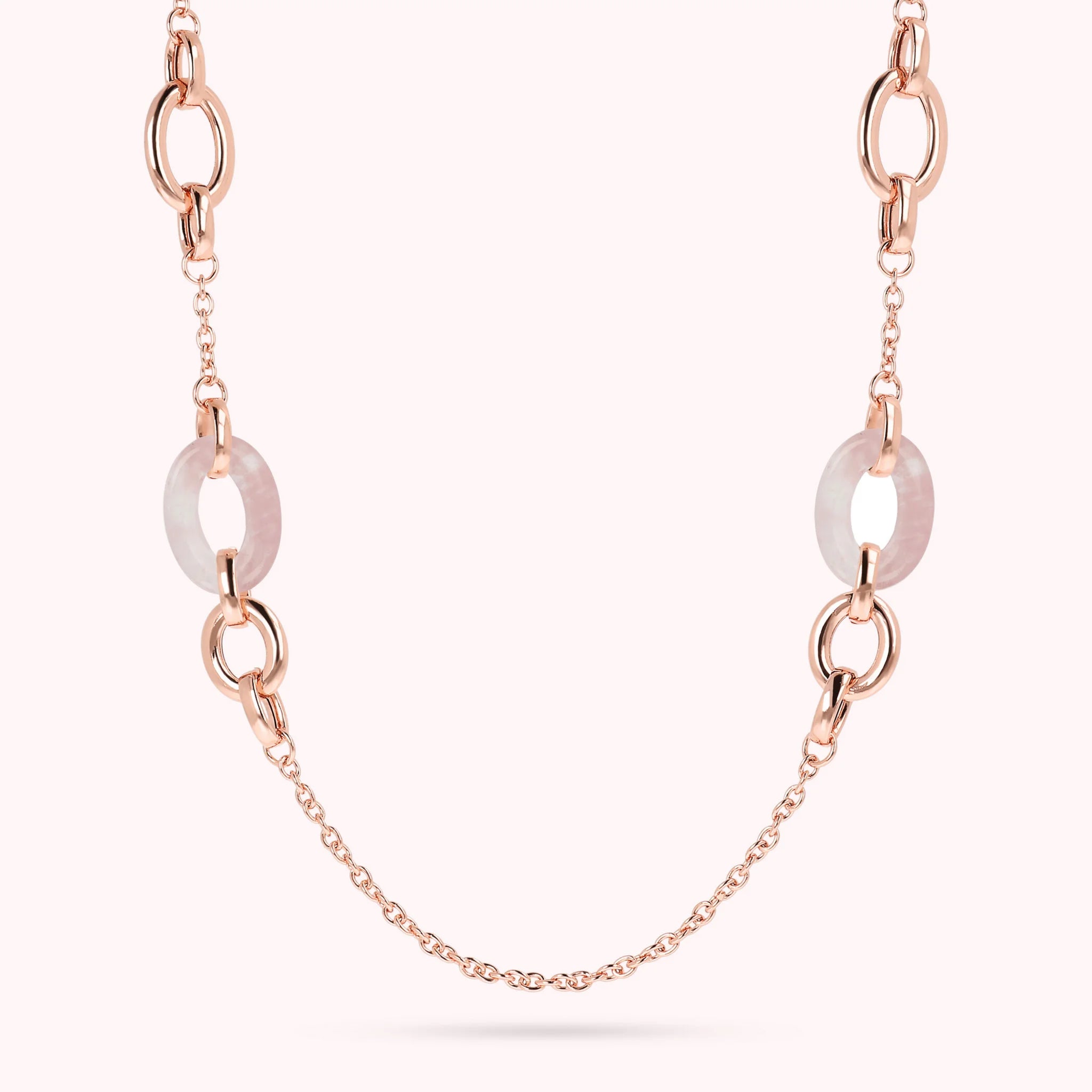 Bronzallure necklace made of Golden Rosé alloy, 18kt rose gold plated, with rolo chain embellished with Golden xRosé links and oval natural stones (17x26 mm); lobster clasp closure.