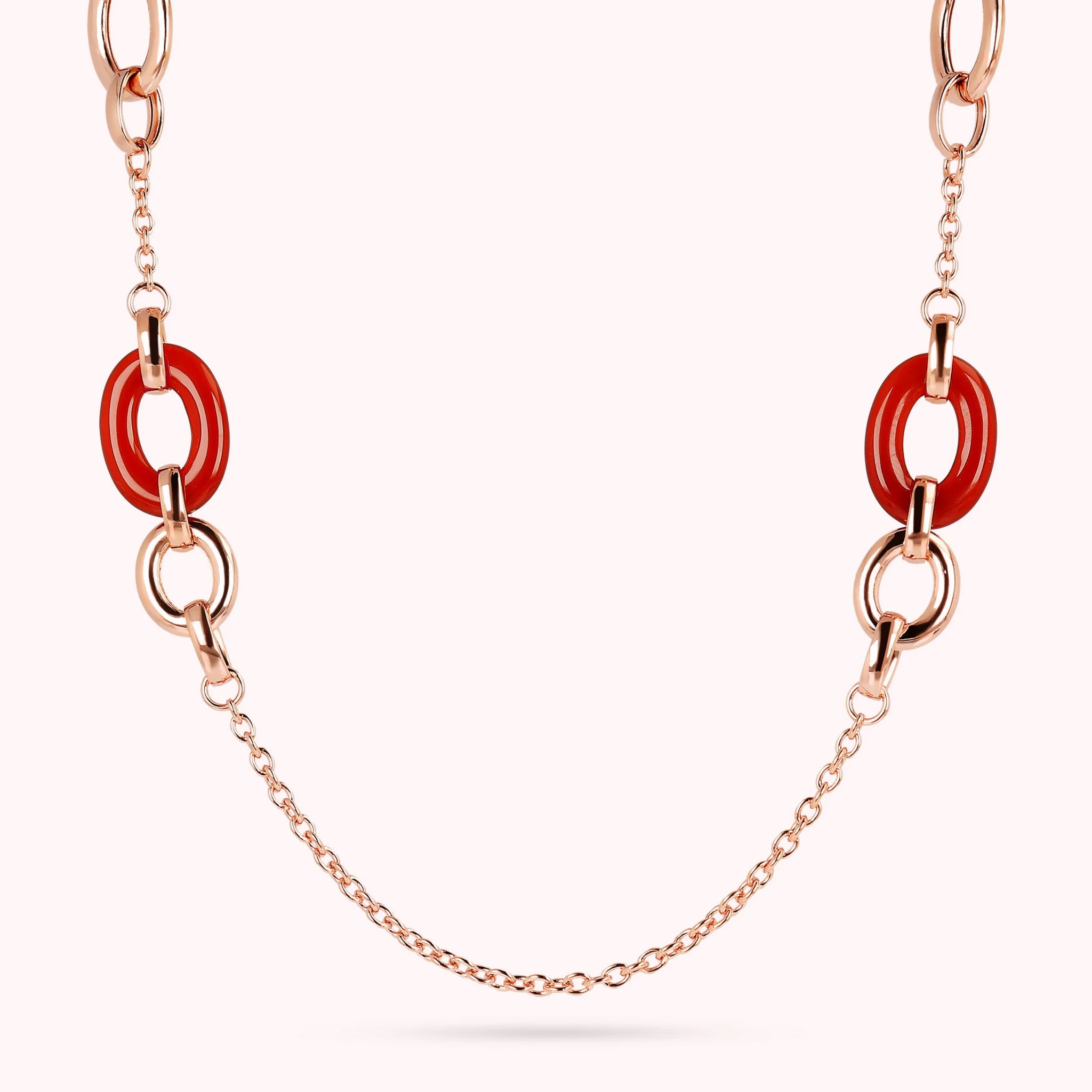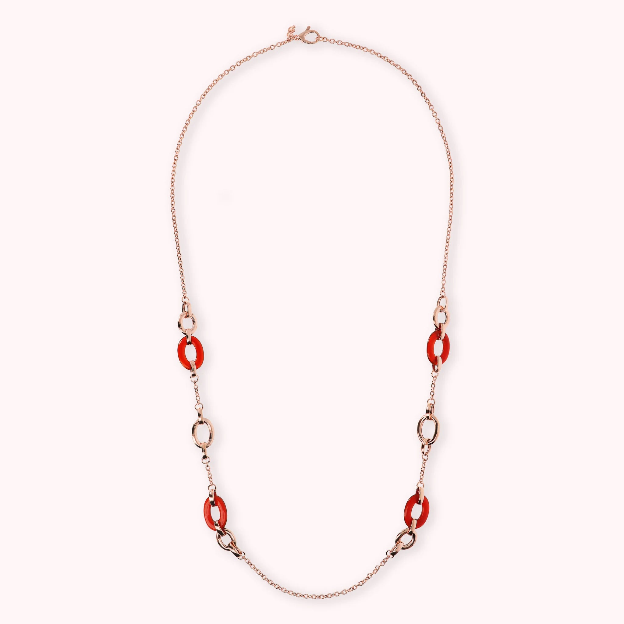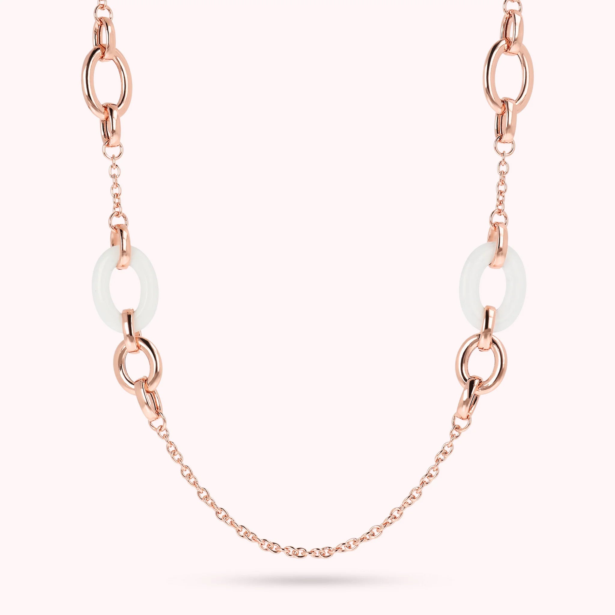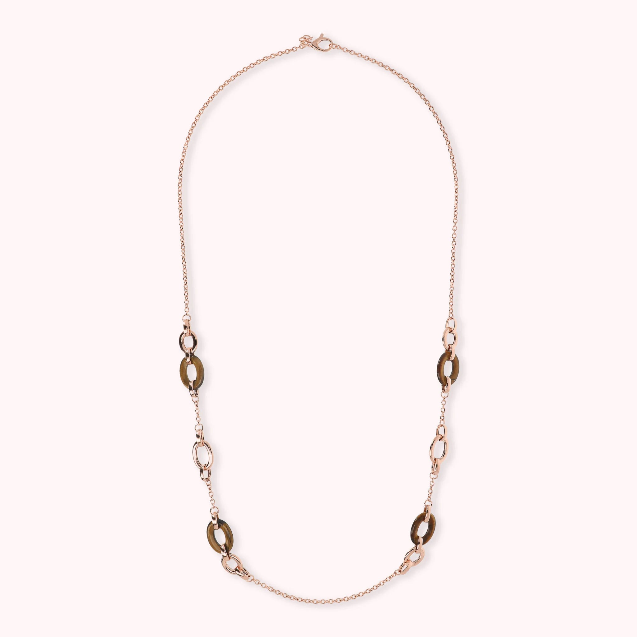Long Necklace with Oval Links in Natural Stone