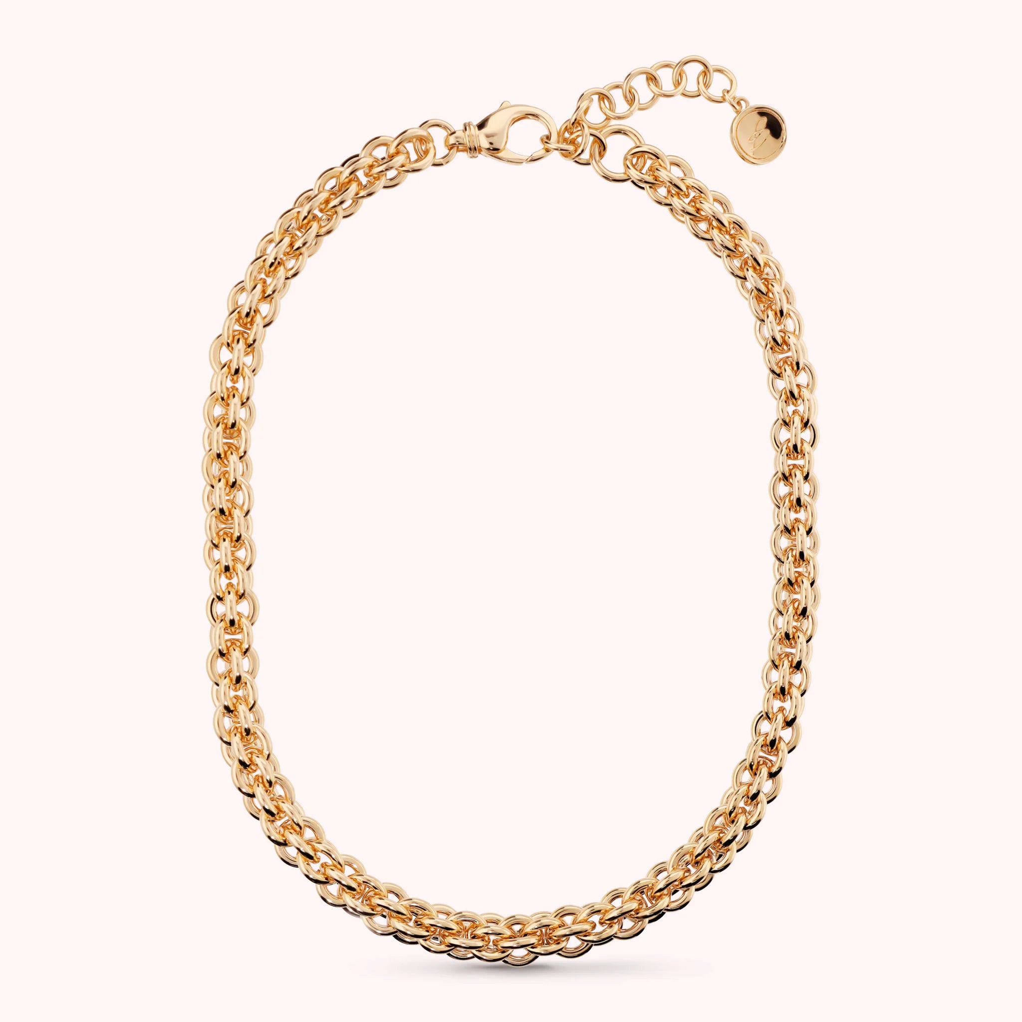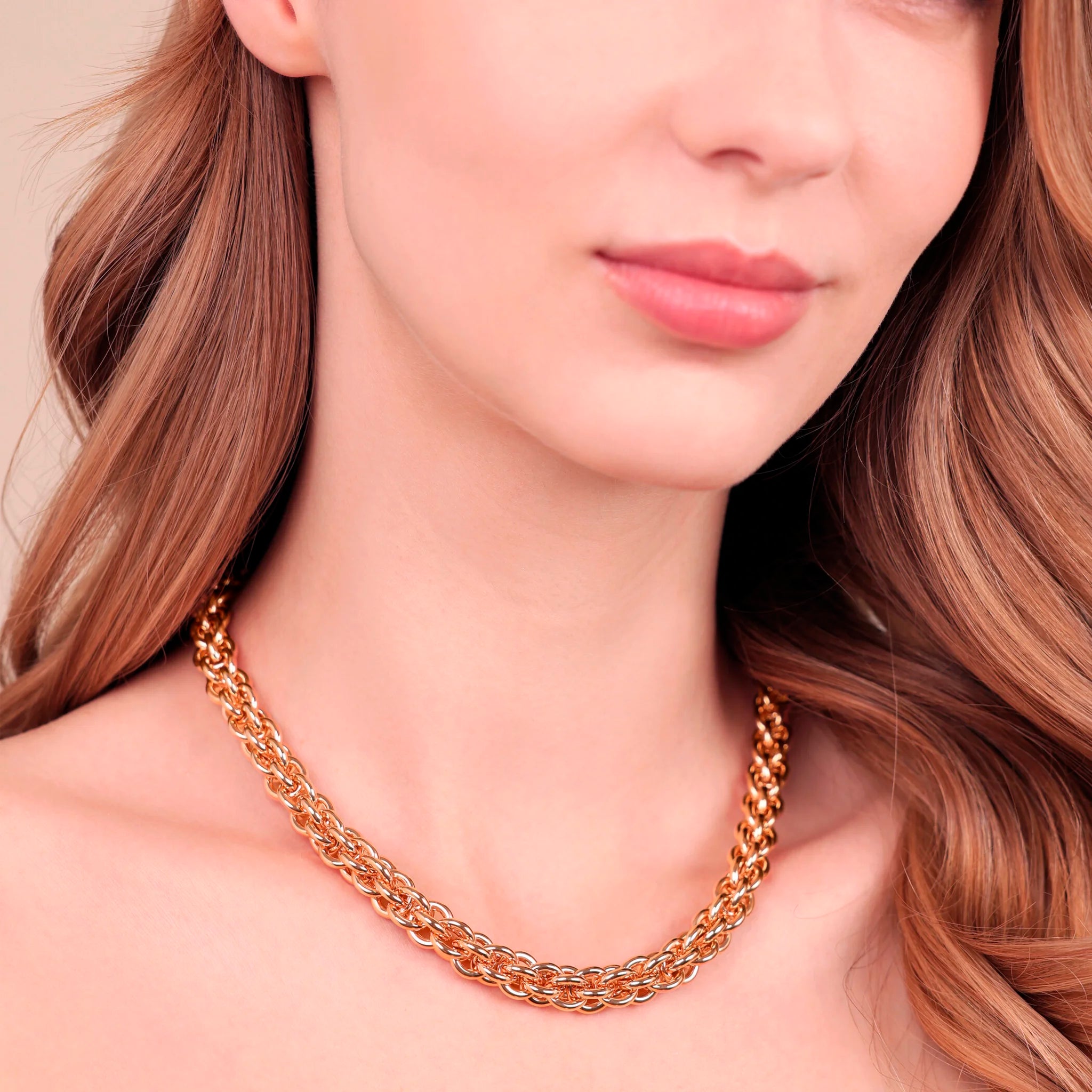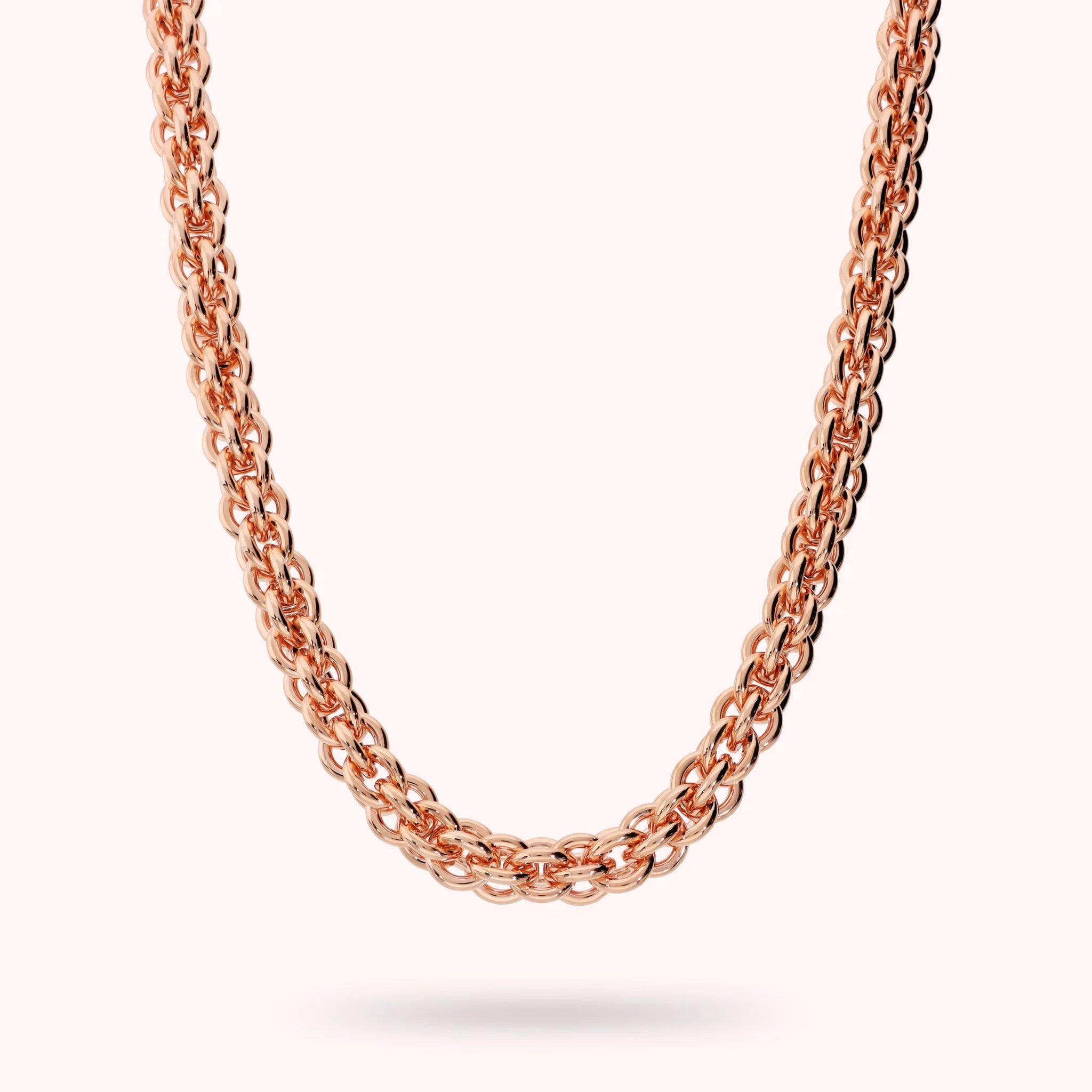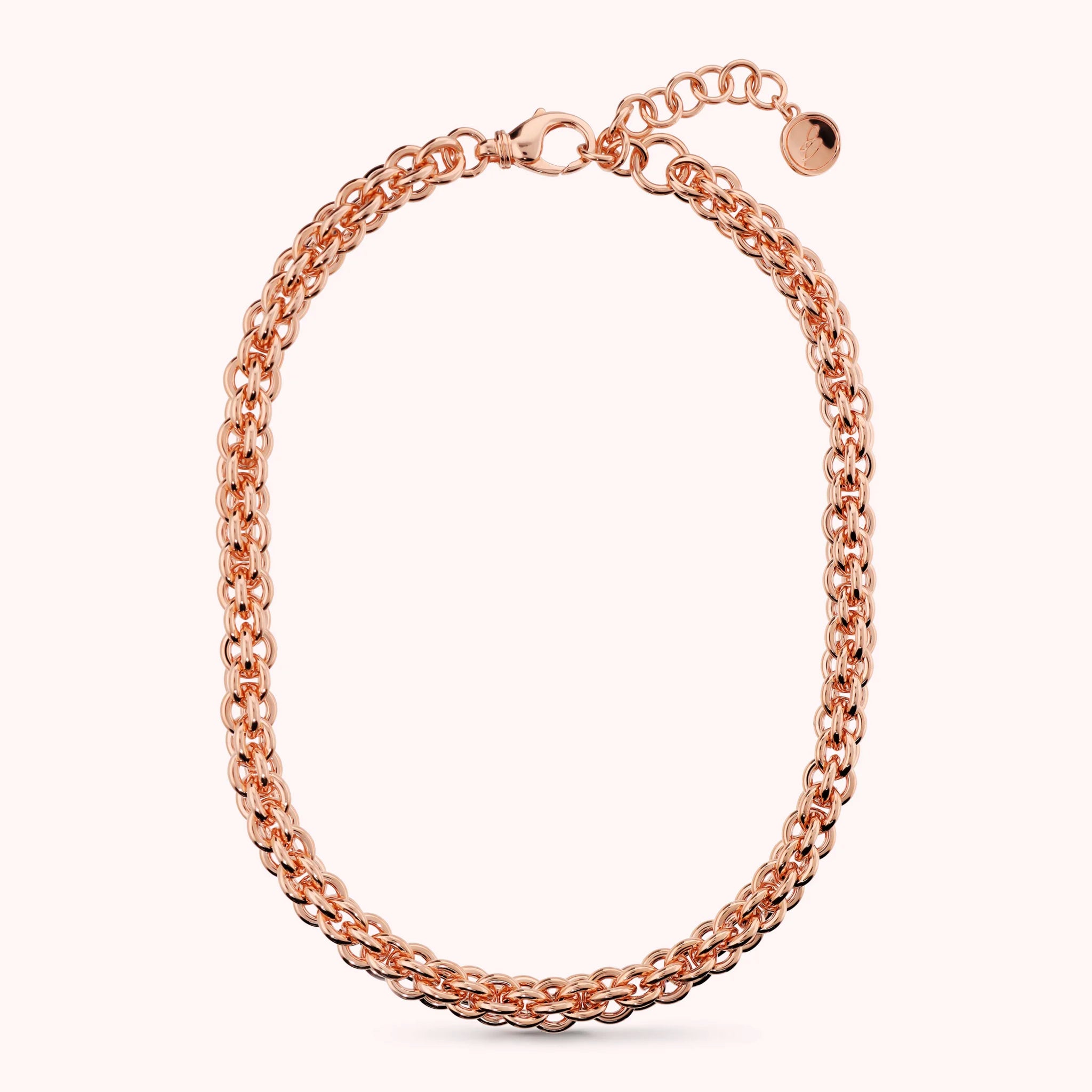Bronzallure choker necklace made of Golden Rosé alloy, 18kt gold plated, with 'basket' weave chain. Lobster clasp.