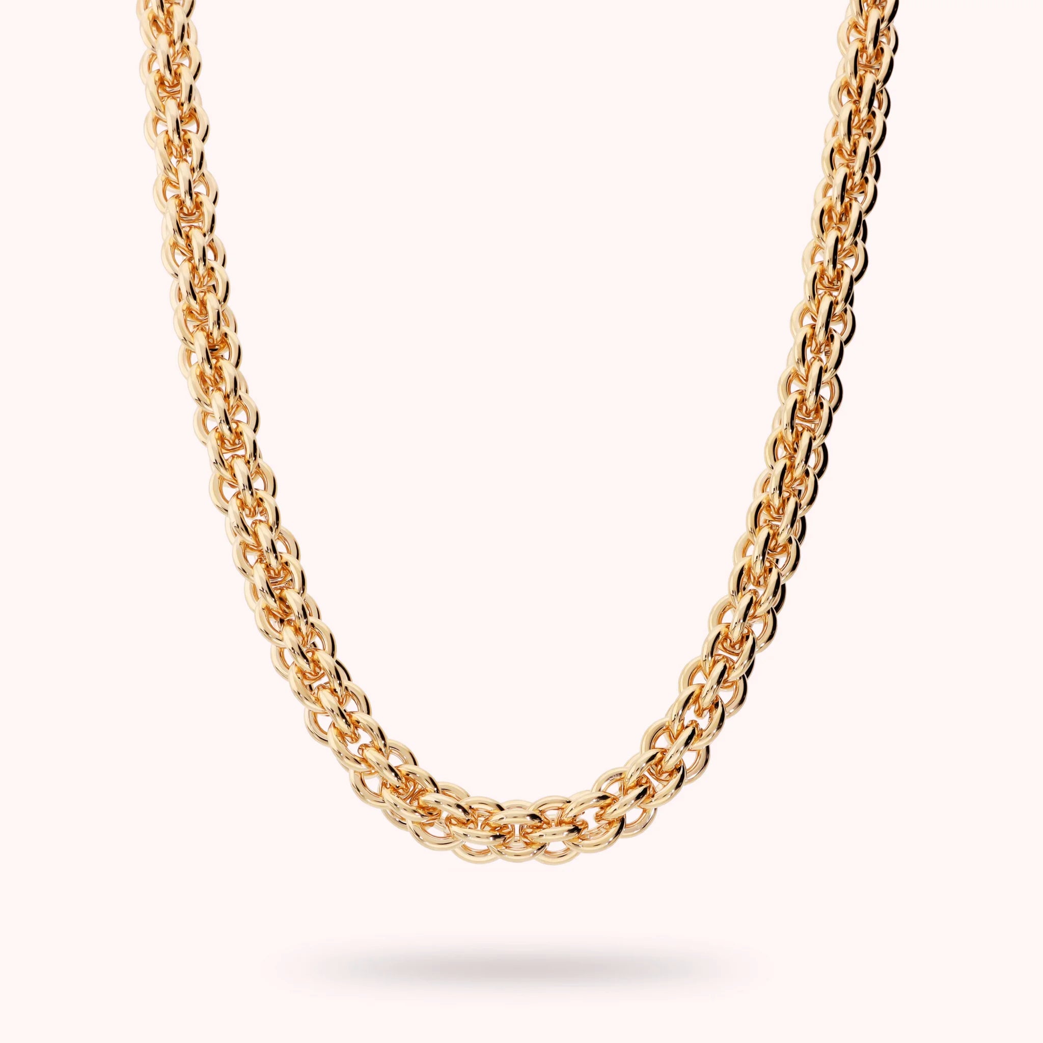 Collana girocollo Bronzallure in Golden Rosé, impreziosita da una maglia a intreccio basket che gioca con la luce in ogni movimento. Un gioiello dal fascino moderno e dall’eleganza senza tempo.