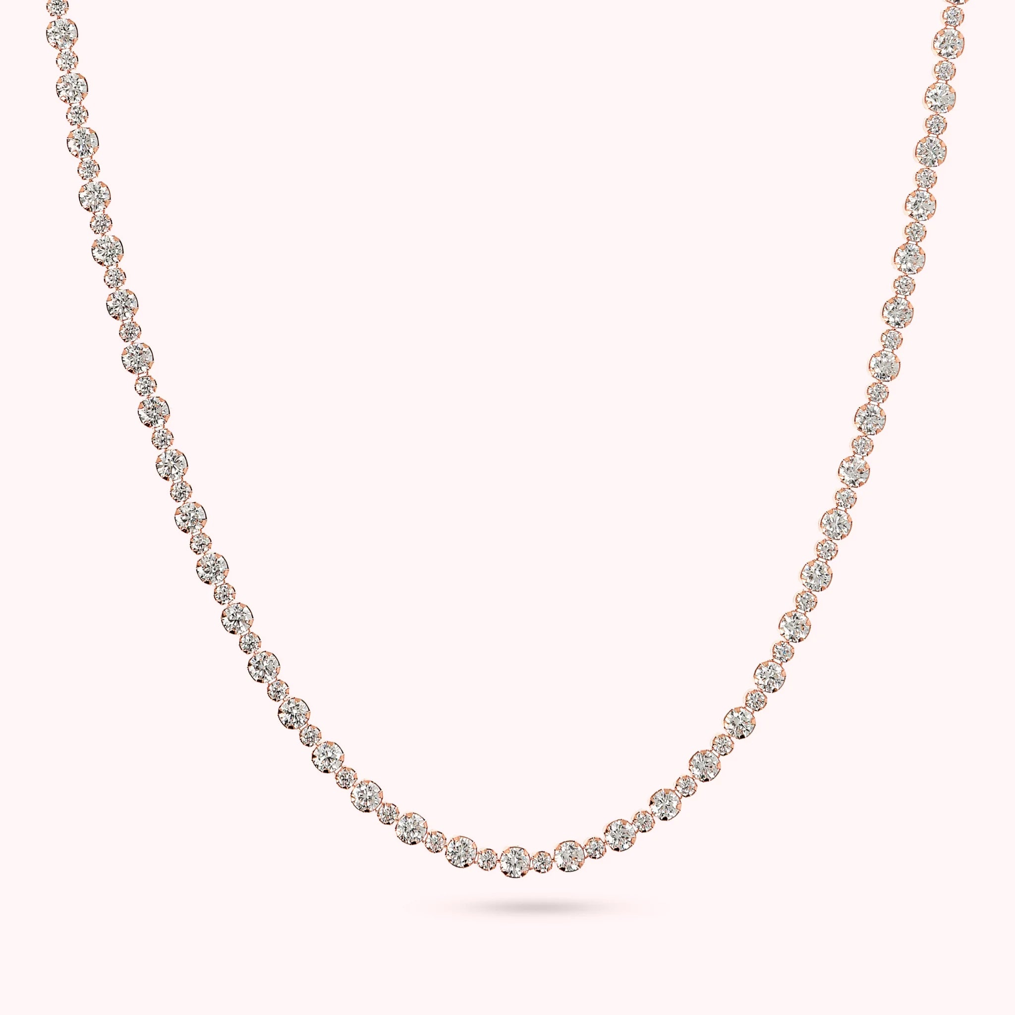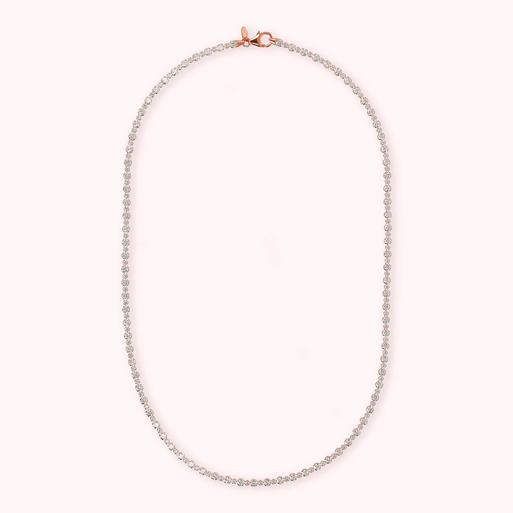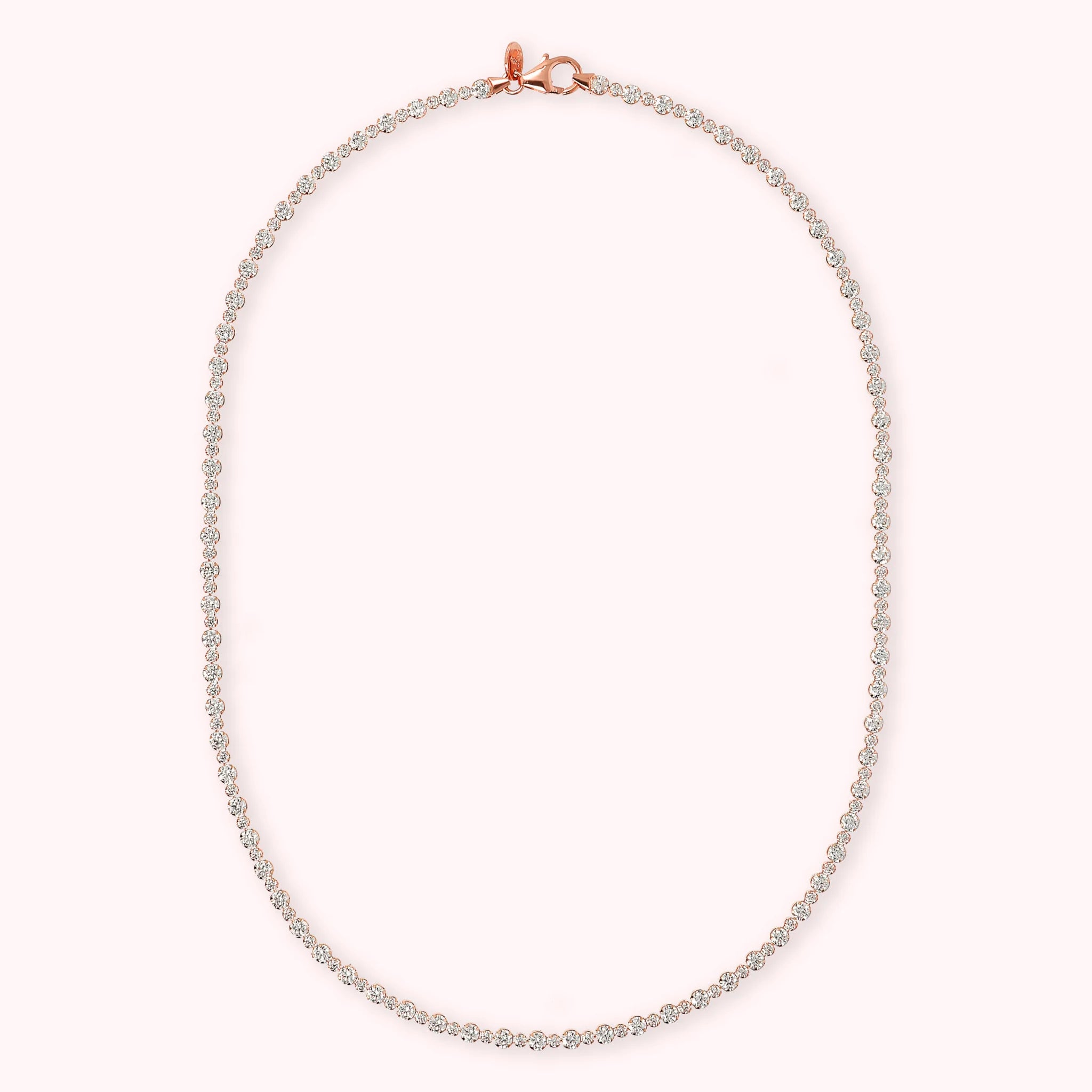 Bronzallure tennis necklace made on a Golden Rosé base, 18kt rose gold plated, completely covered with white cubic zirconia, luminous quality. The zirconia are of different sizes and arranged alternately, one large and one small; lobster clasp. Available in two sizes: short (40cm) and long (45cm).