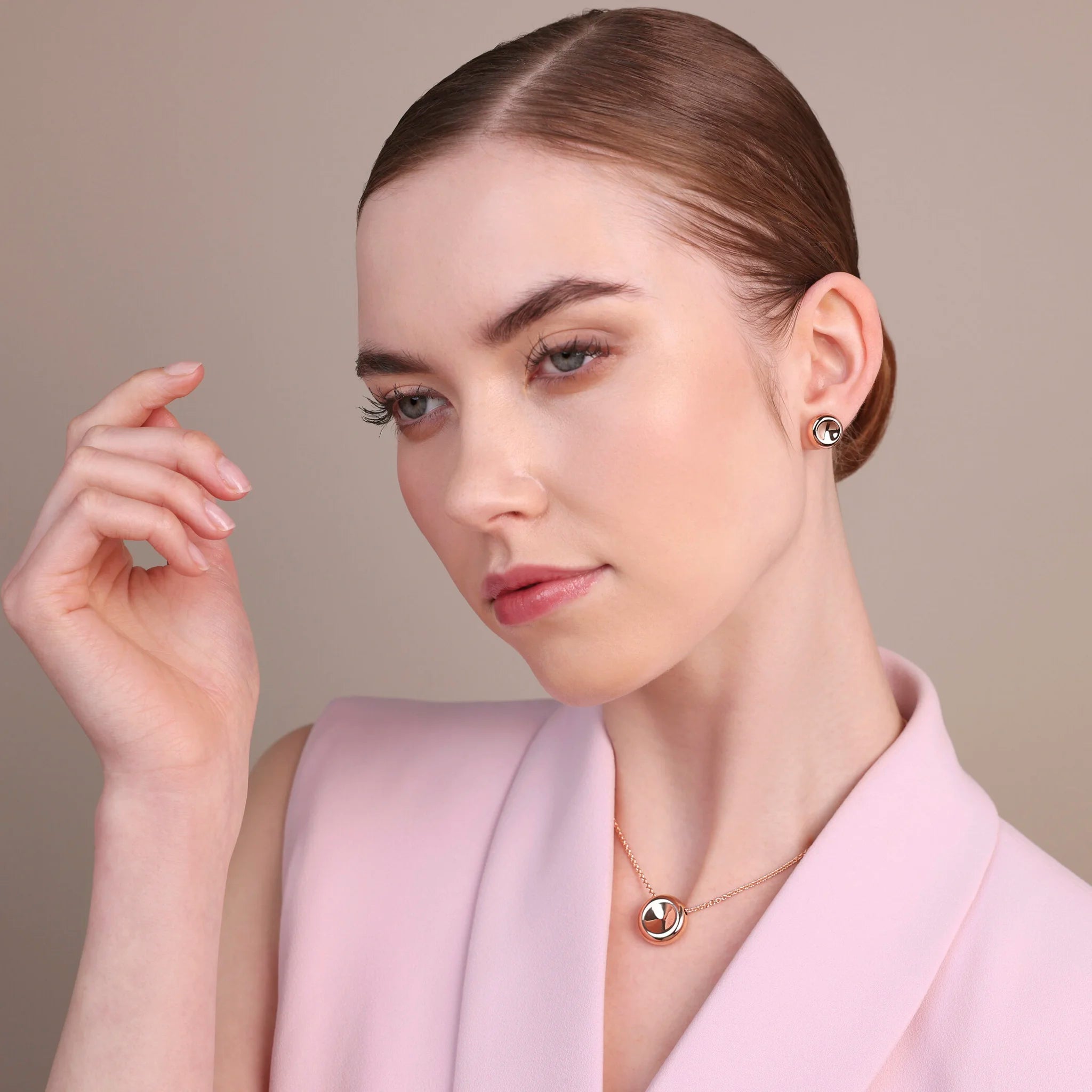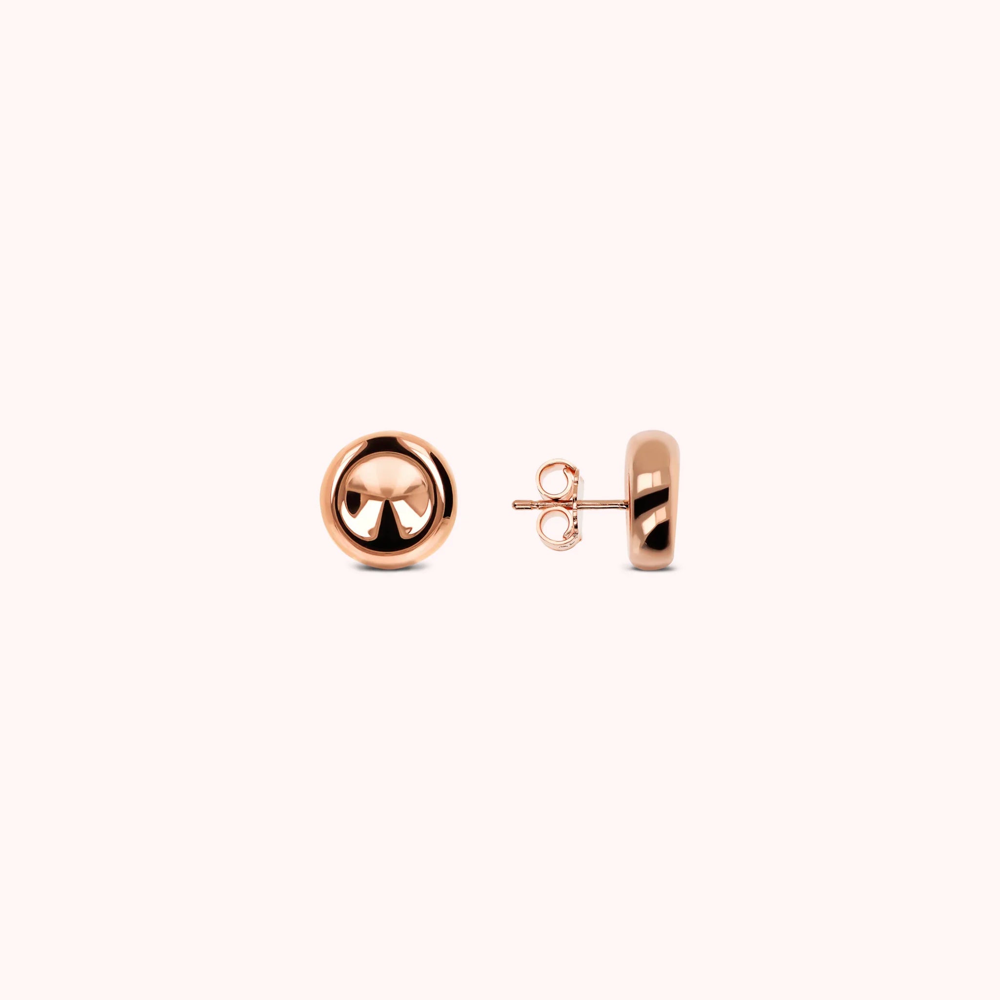 Bronzallure stud earrings made of Golden Rosé alloy, plated with 18kt Rose Gold, featuring a button design (12 mm). Glossy finish. Post and butterfly closure.
