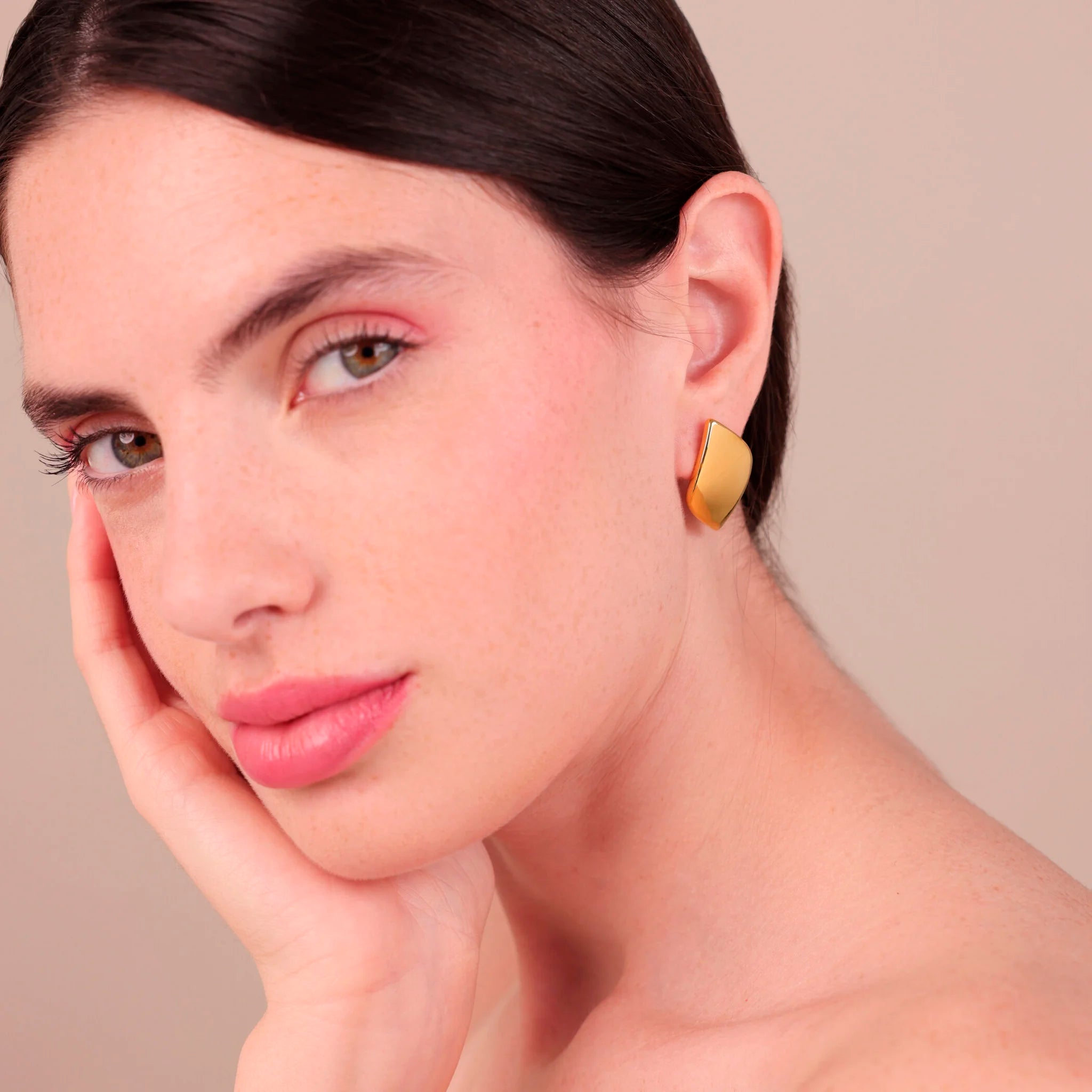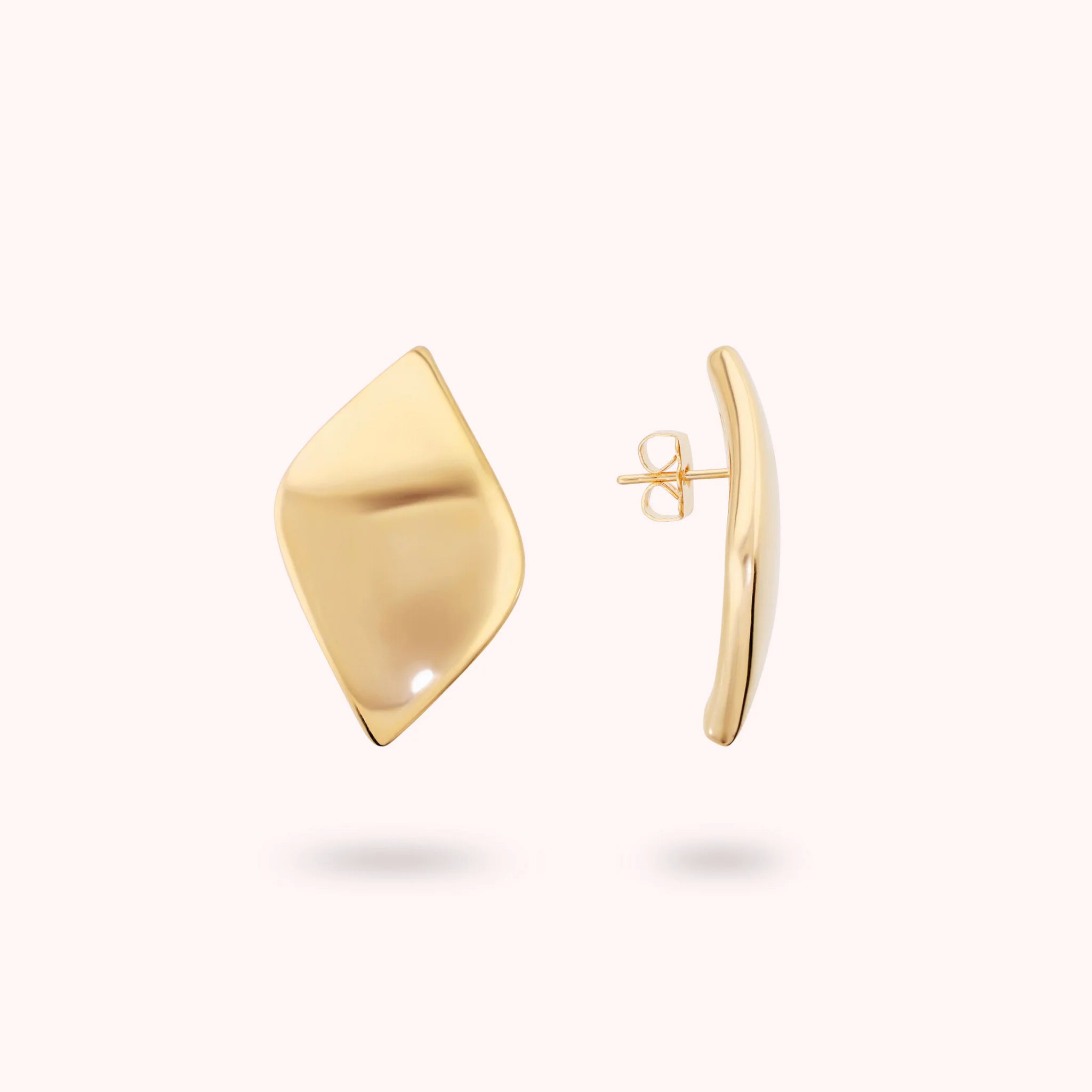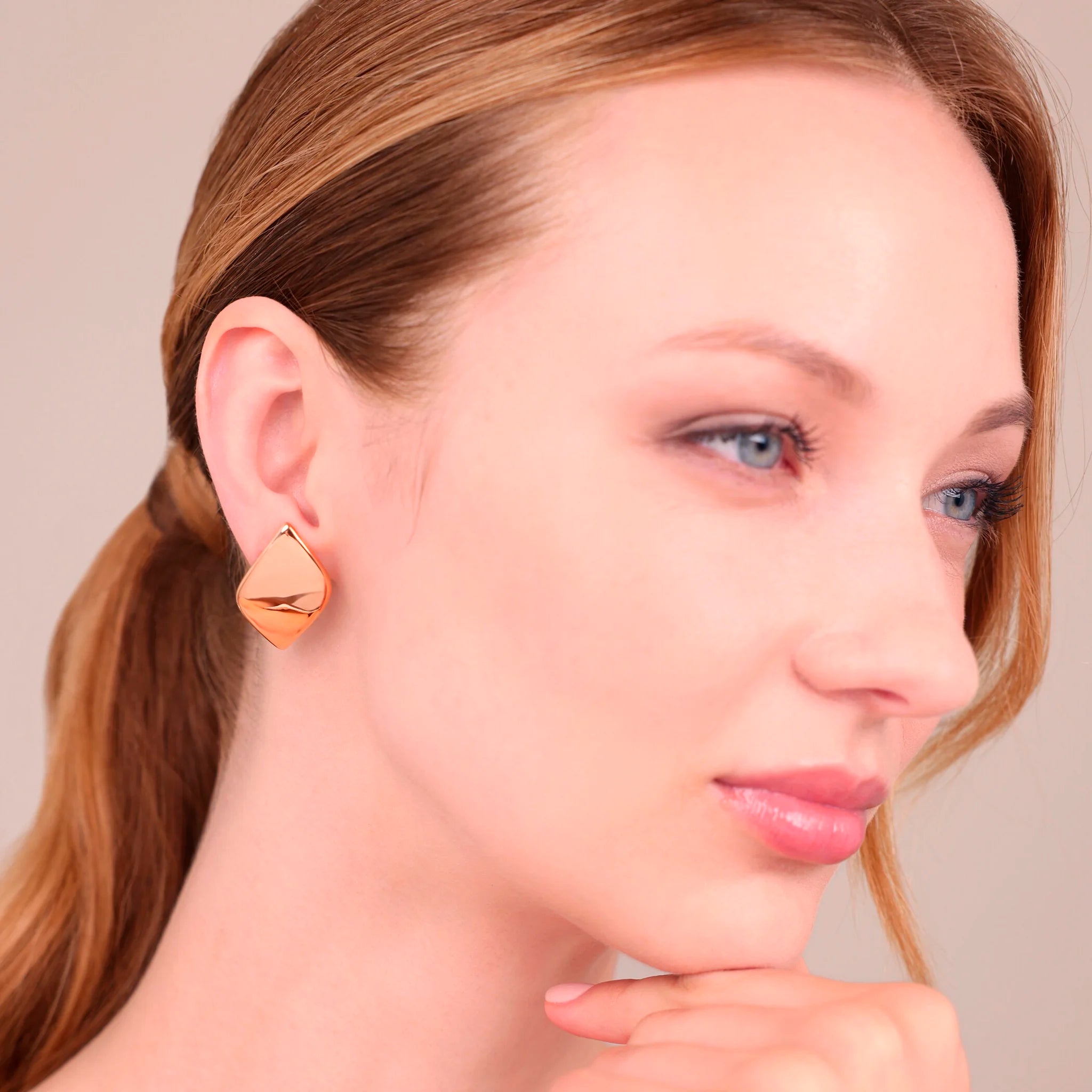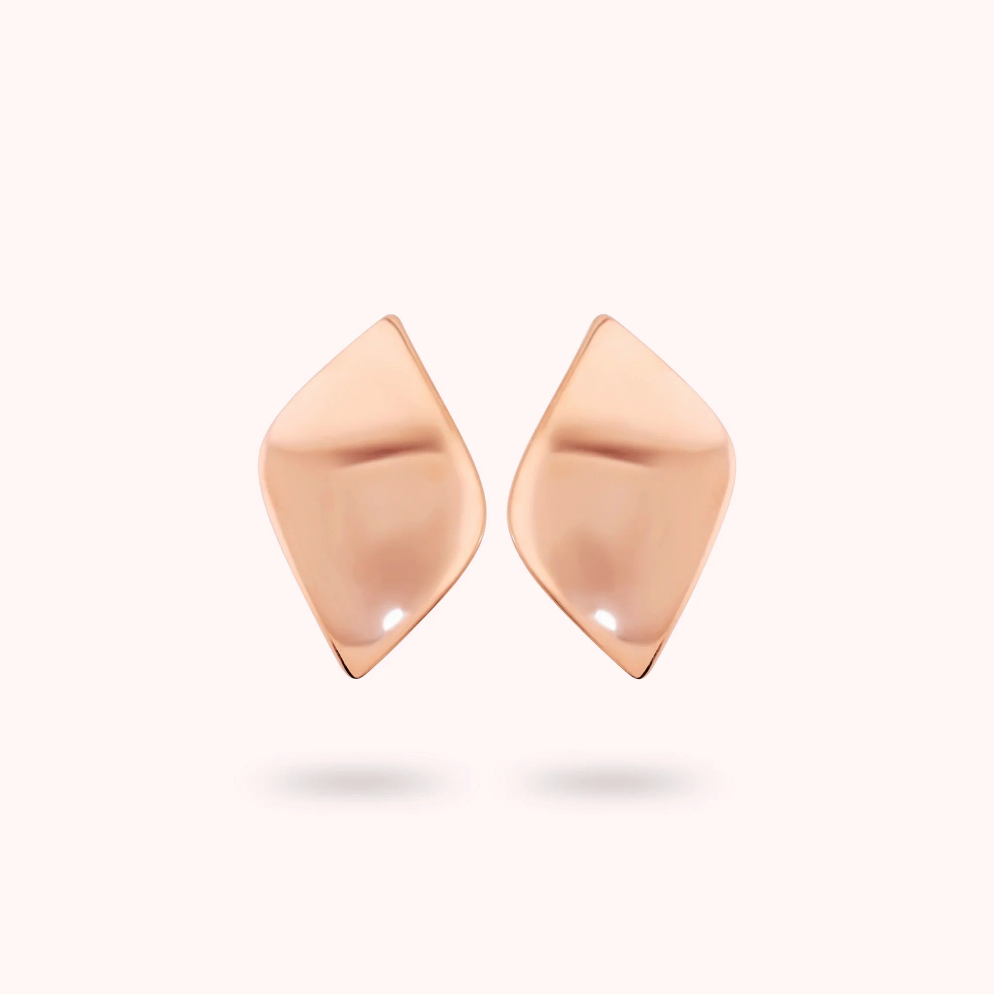 Bronzallure stud earrings made of Golden Rosé alloy, 18kt gold plated, with a leaf design. Glossy finish. Post and butterfly clasp.