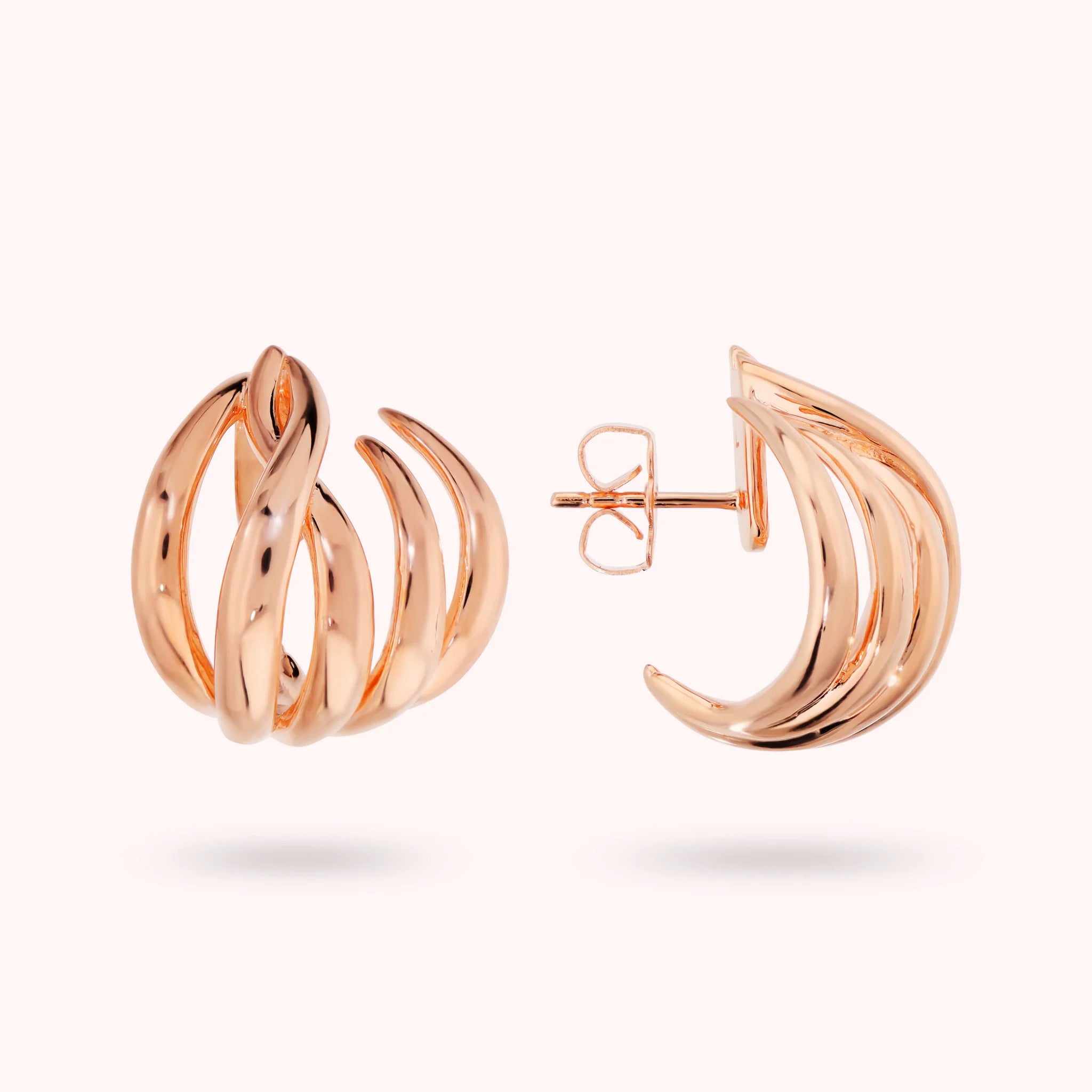 Orecchini a lobo Flame Bronzallure in Golden Rosé, dal design a intreccio lucido che avvolge l’orecchio con grazia e carattere. Eleganti e discreti, riescono a catturare subito l'attenzione.