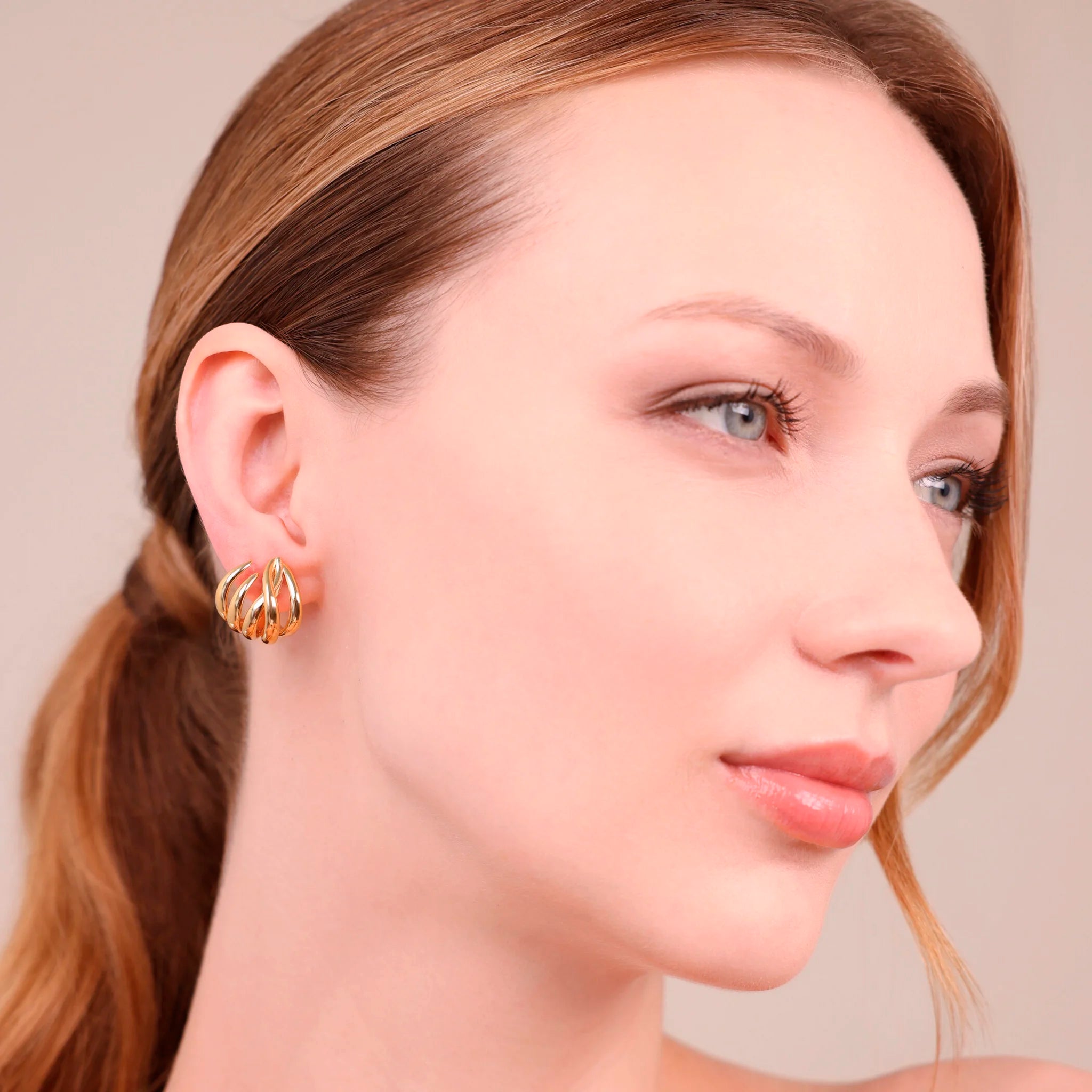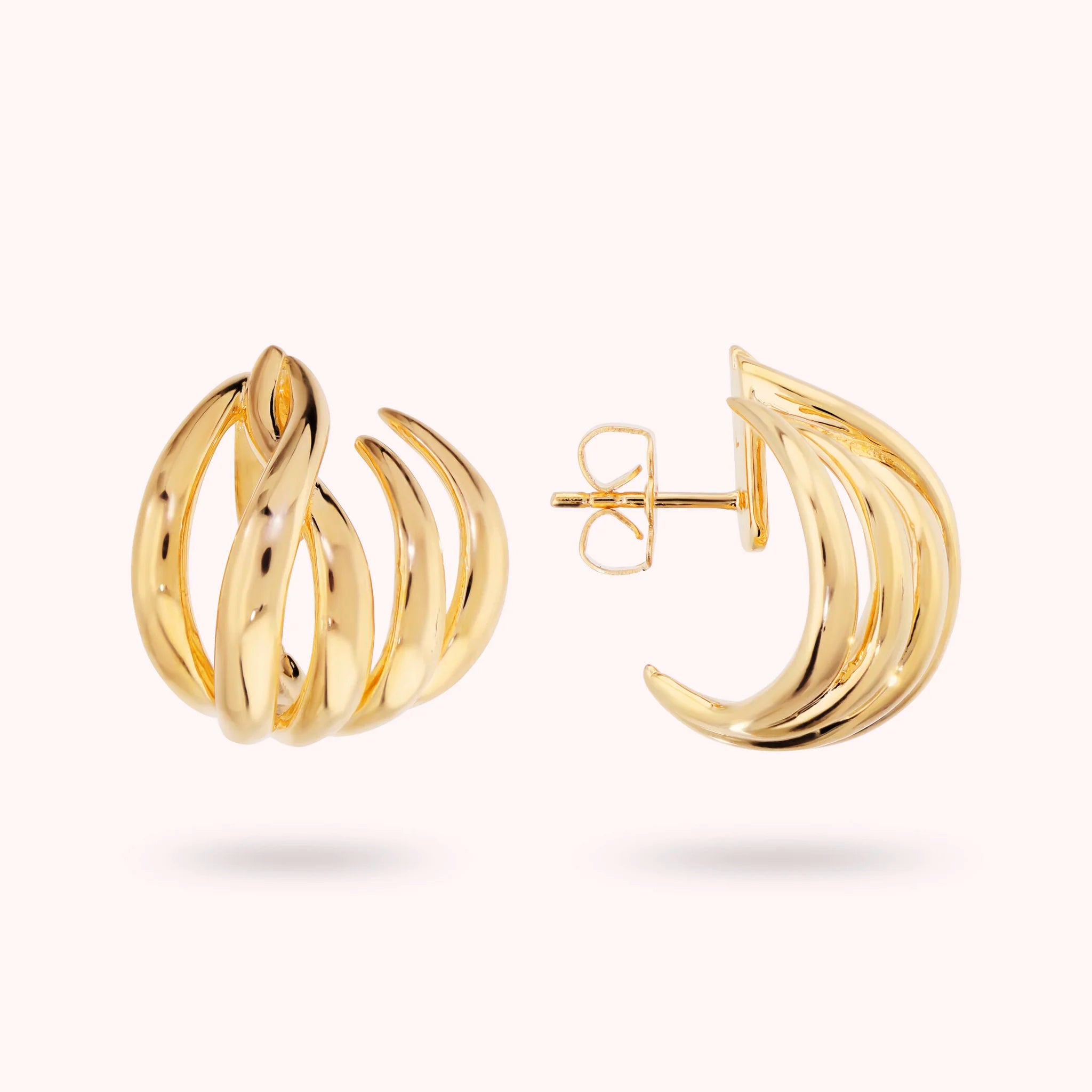 'Flame' stud earrings by Bronzallure made of Golden Rosé alloy, 18kt gold plated, with a woven design. Glossy finish. Post and butterfly clasp.