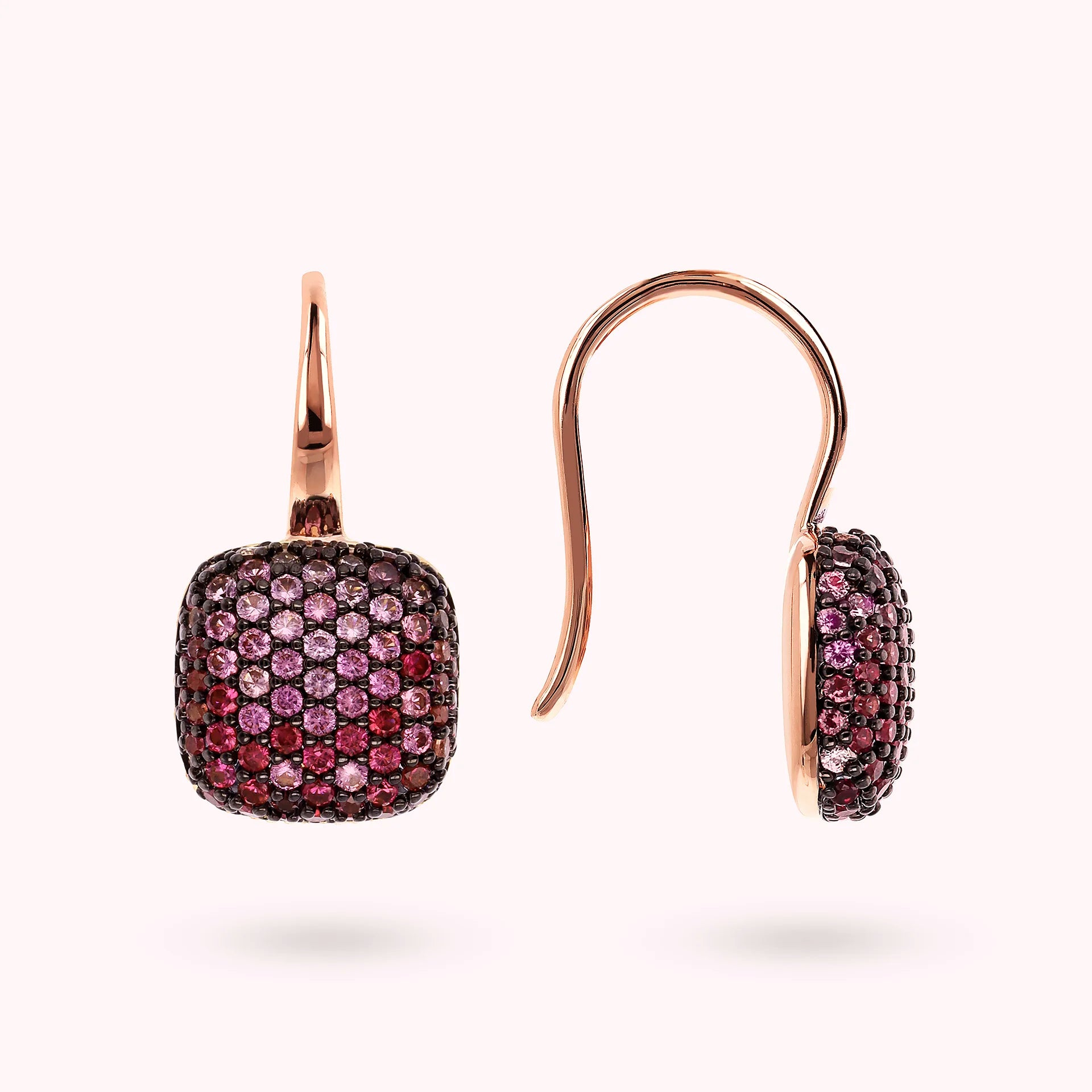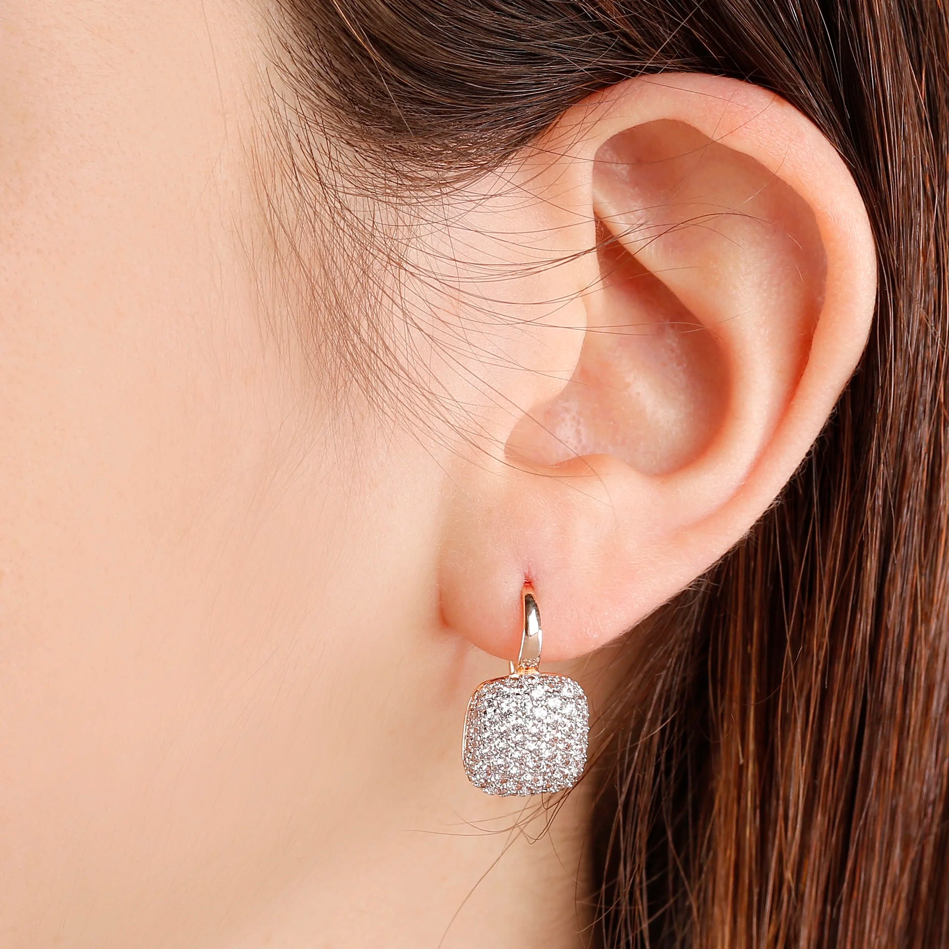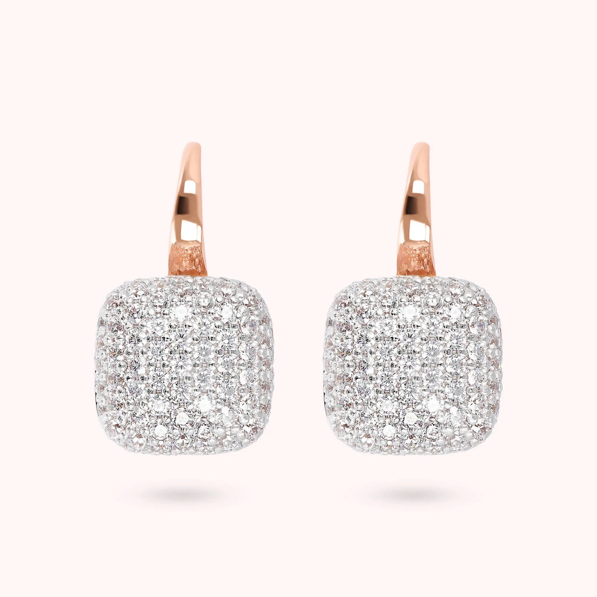 Square Pendant Earrings with Pavé in Cubic Zirconia