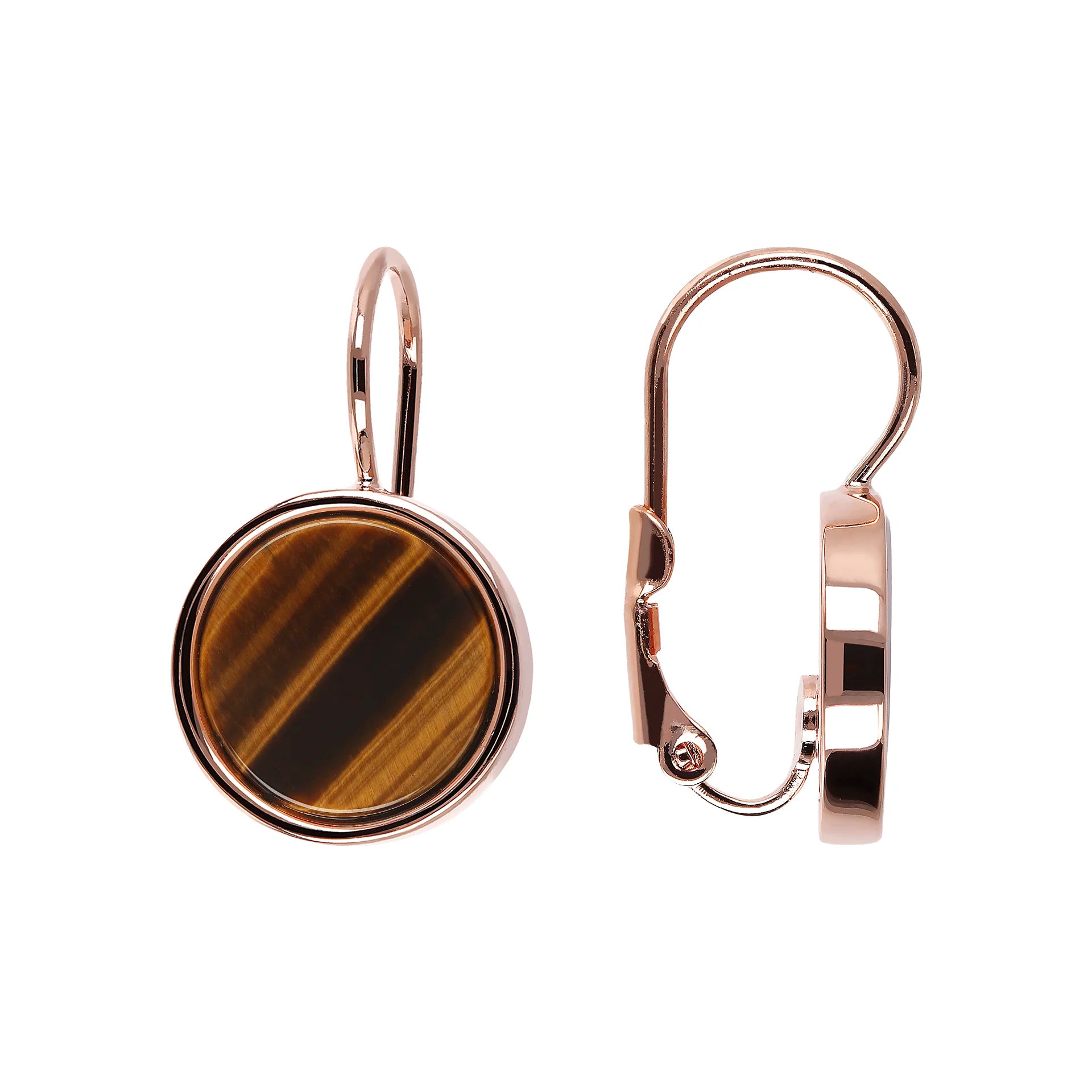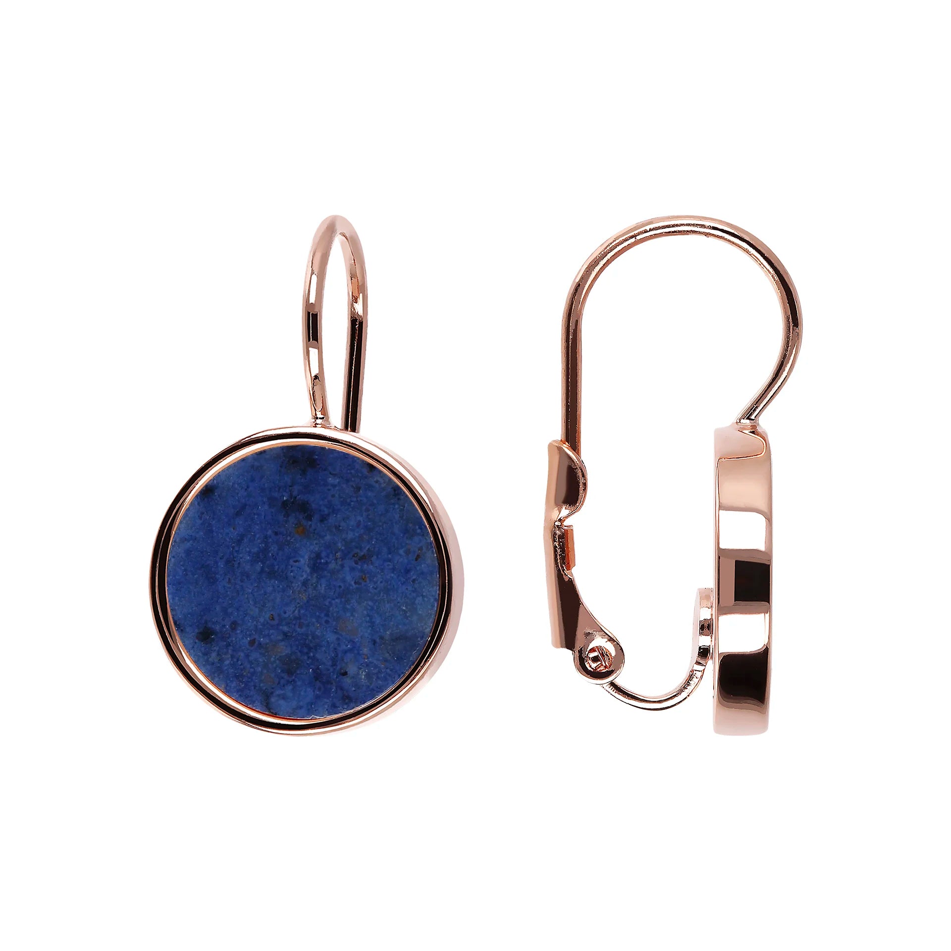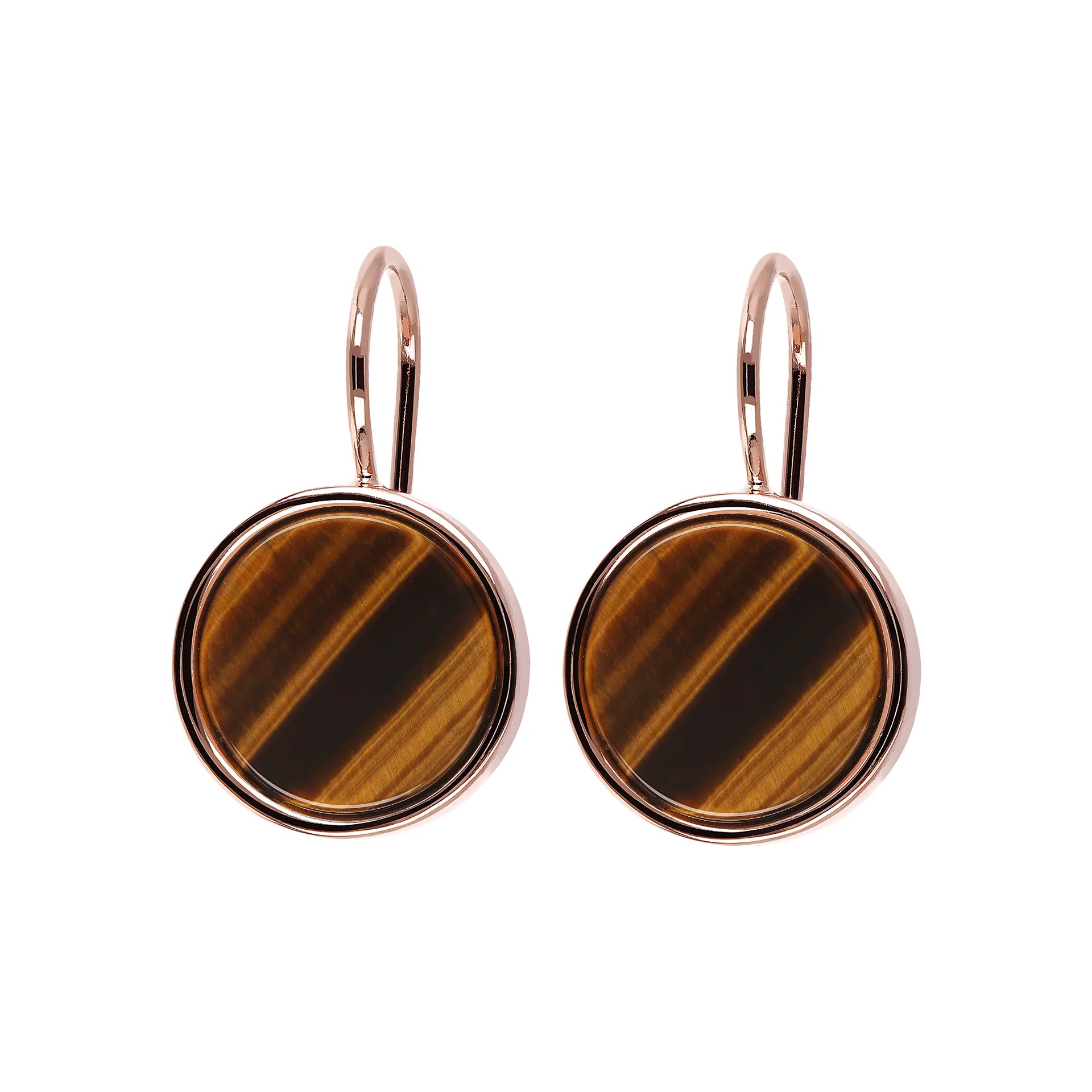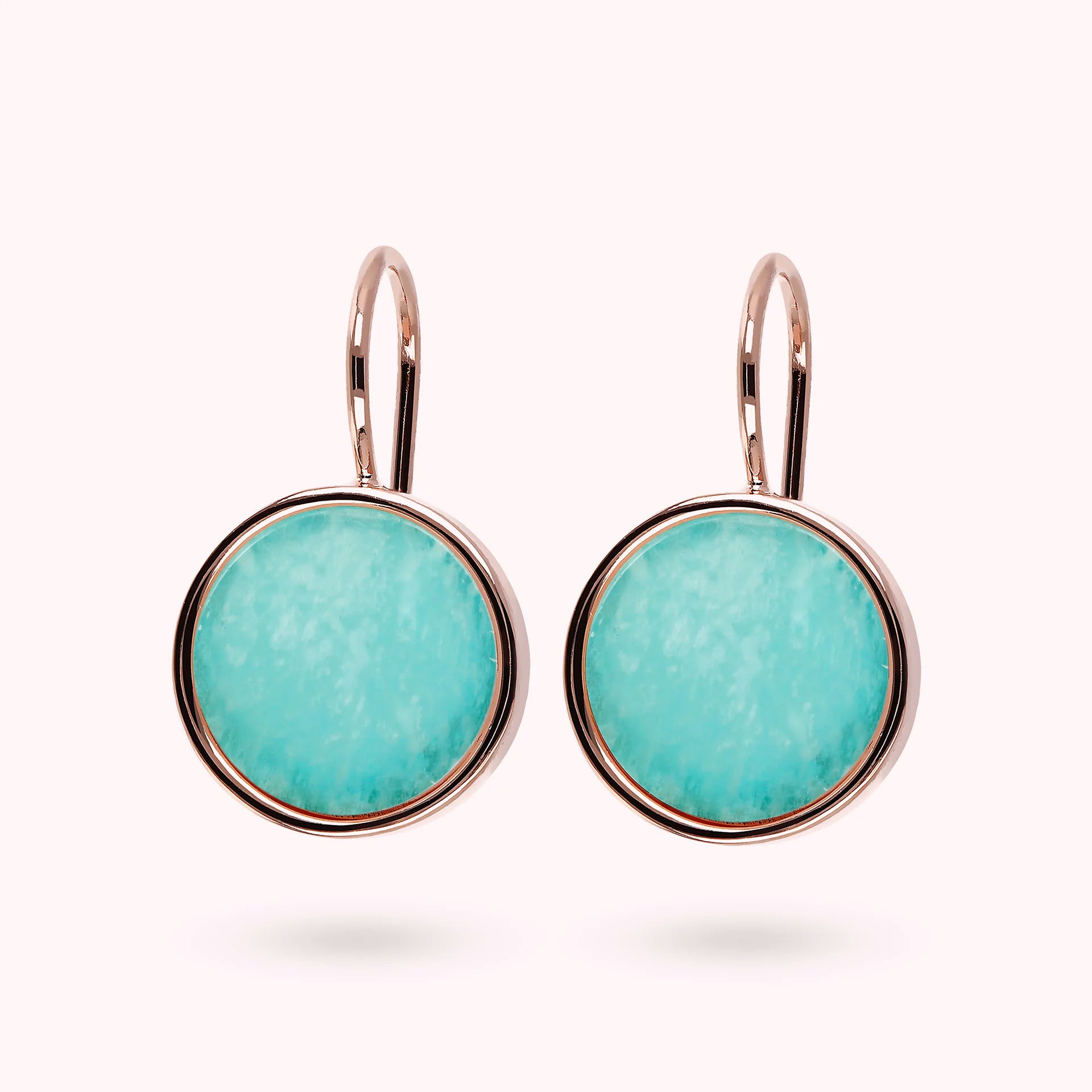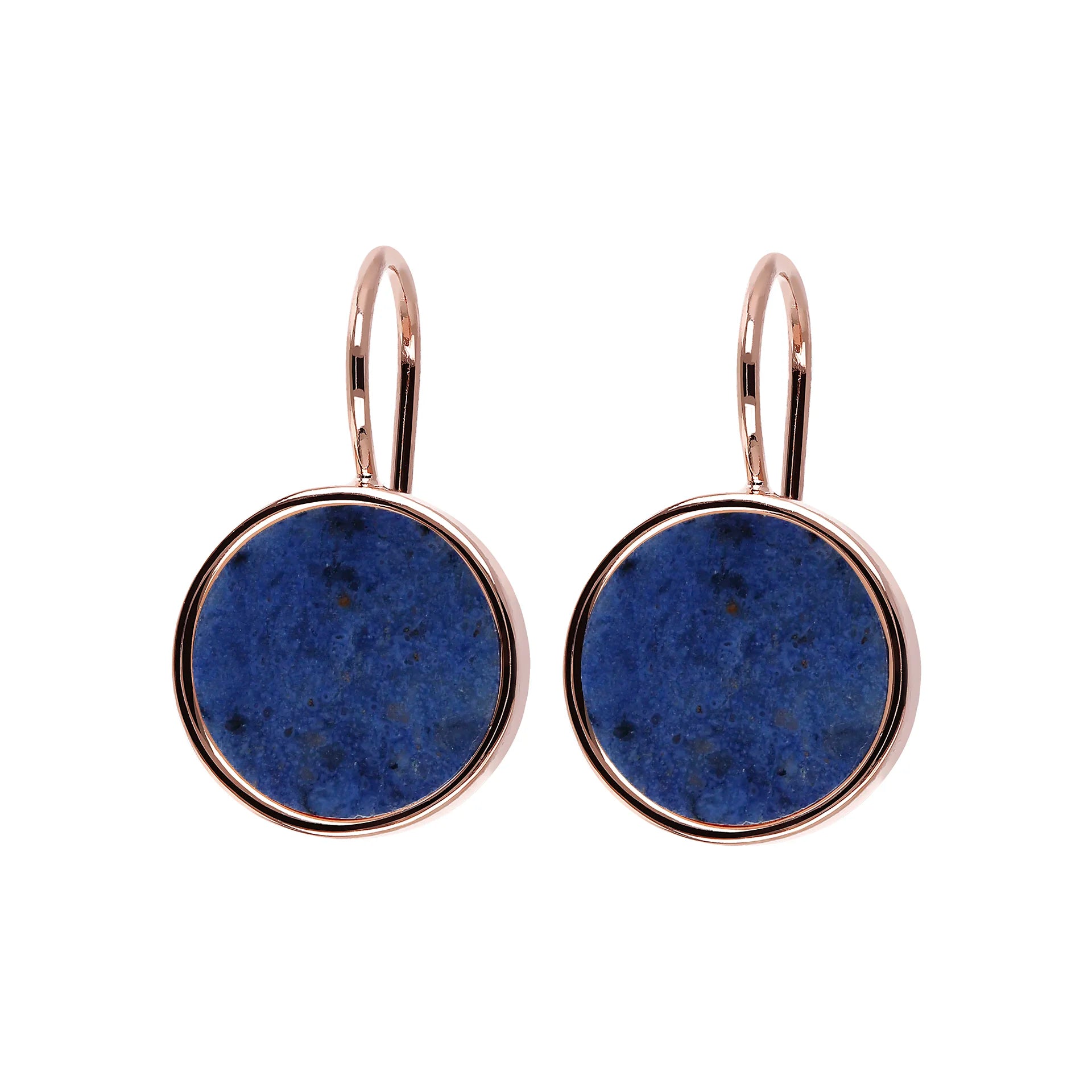 Bronzallure pendant earrings made of Golden Rosé alloy, 18kt rose gold plated with natural stone disc (1.2 cm) mounted on an 18kt rose gold plated base; leverback closure.