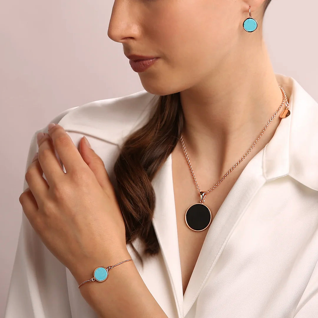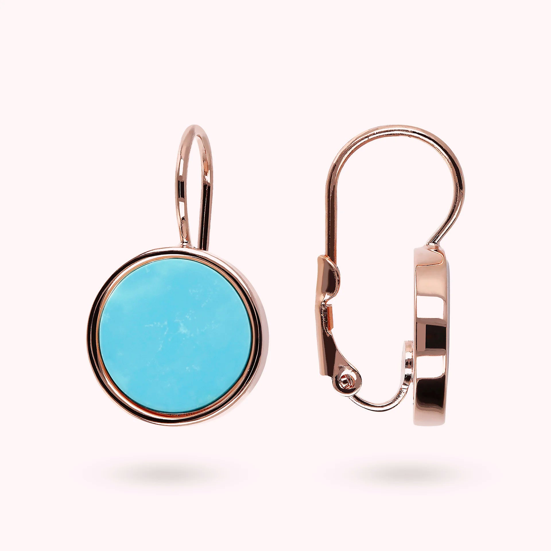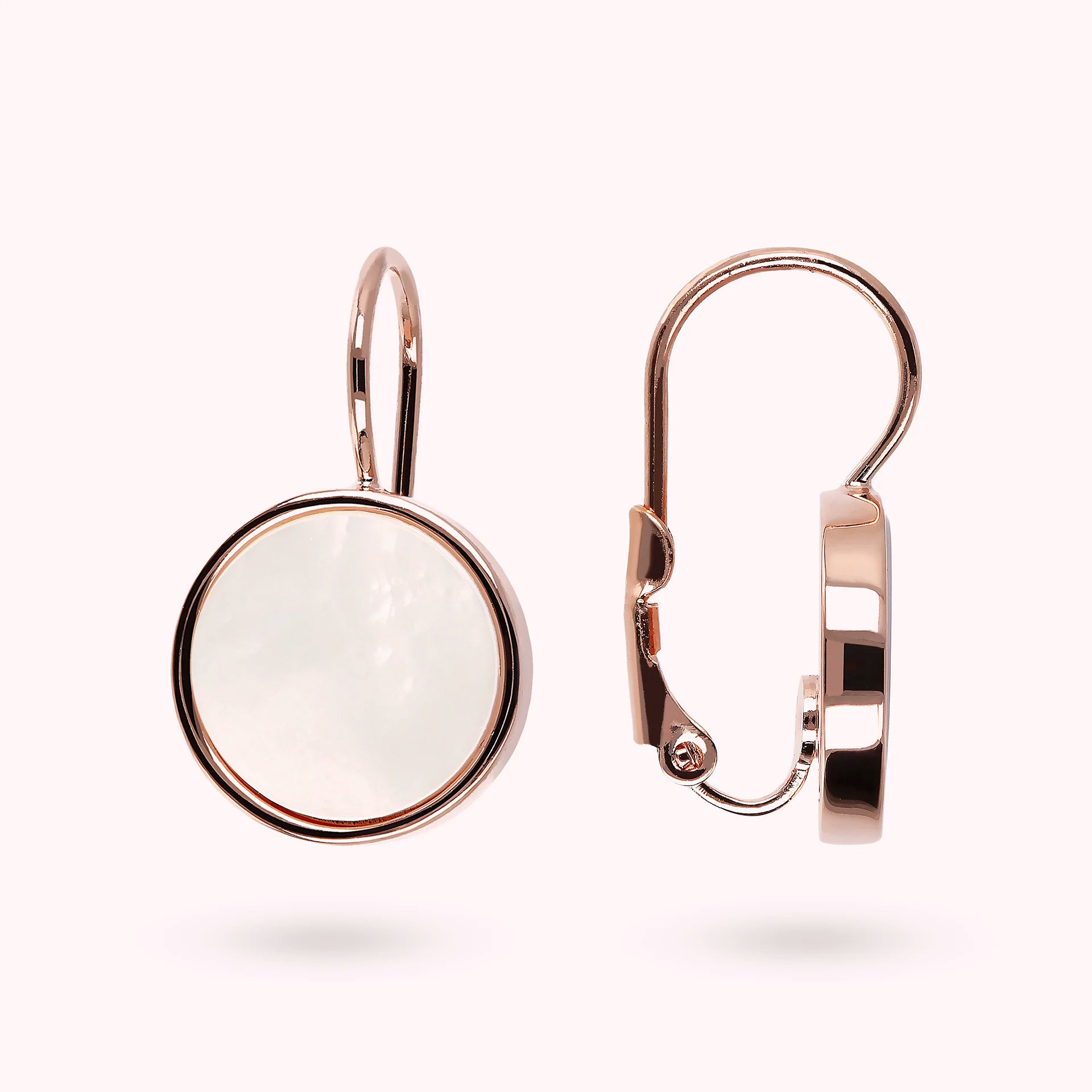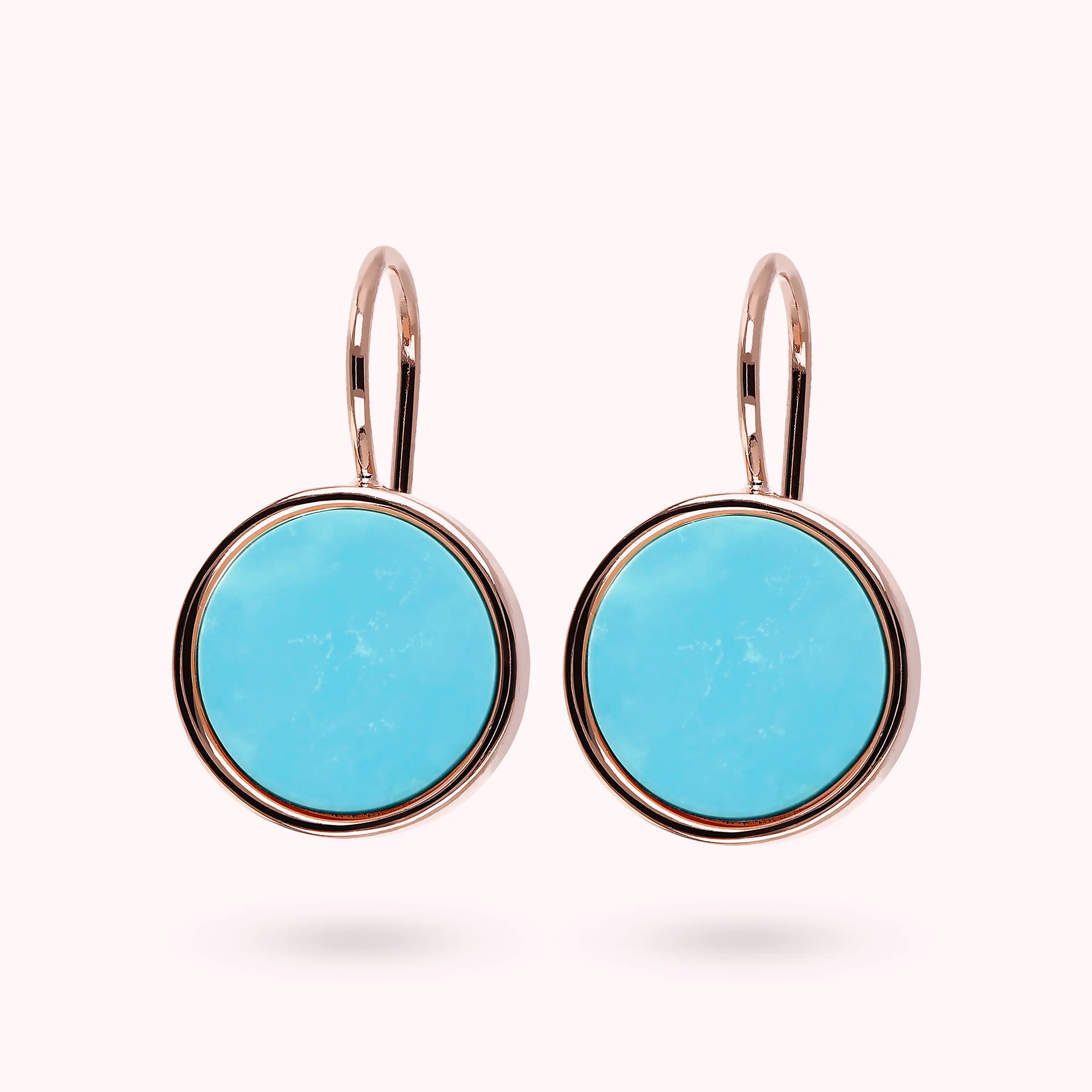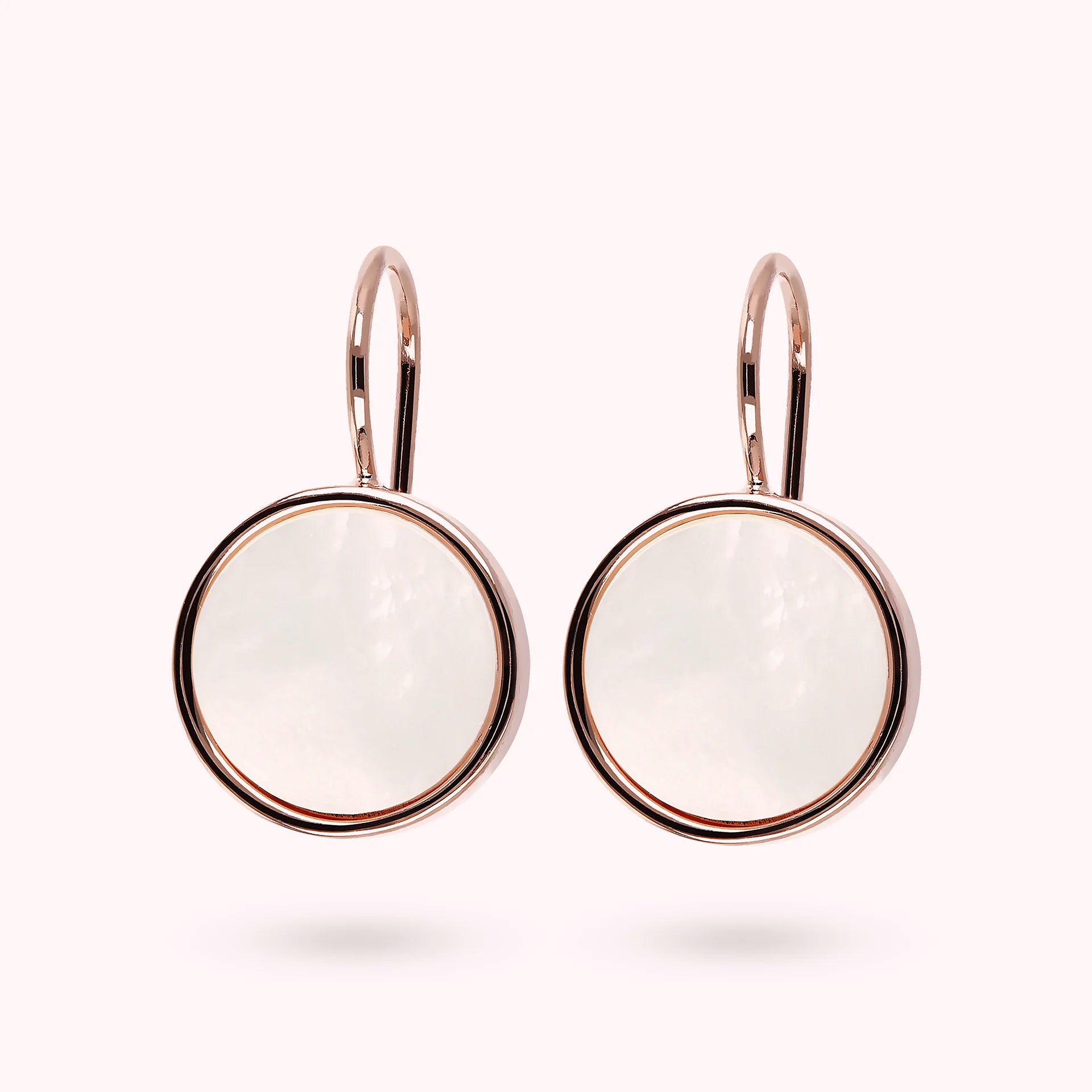 Bronzallure pendant earrings made of Golden Rosé alloy, 18kt rose gold plated with natural stone disc (1.2 cm) mounted on an 18kt rose gold plated base; leverback closure.