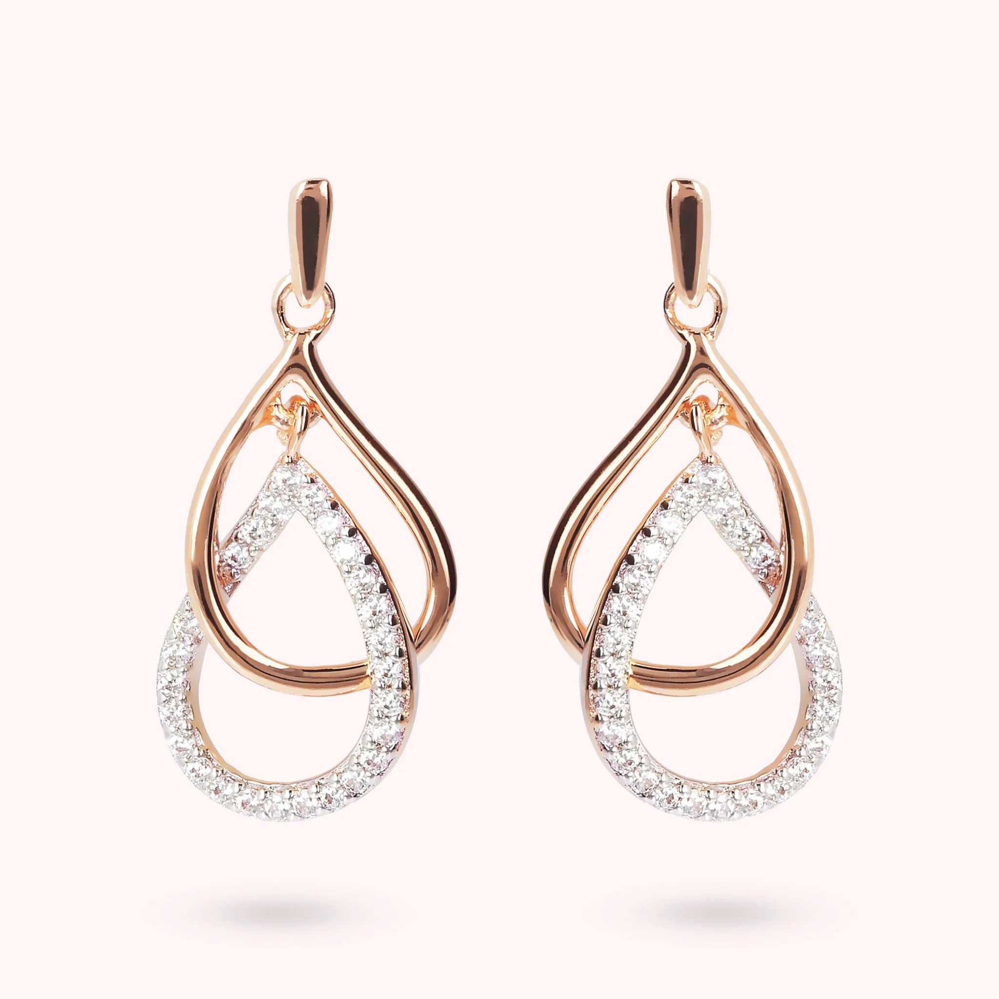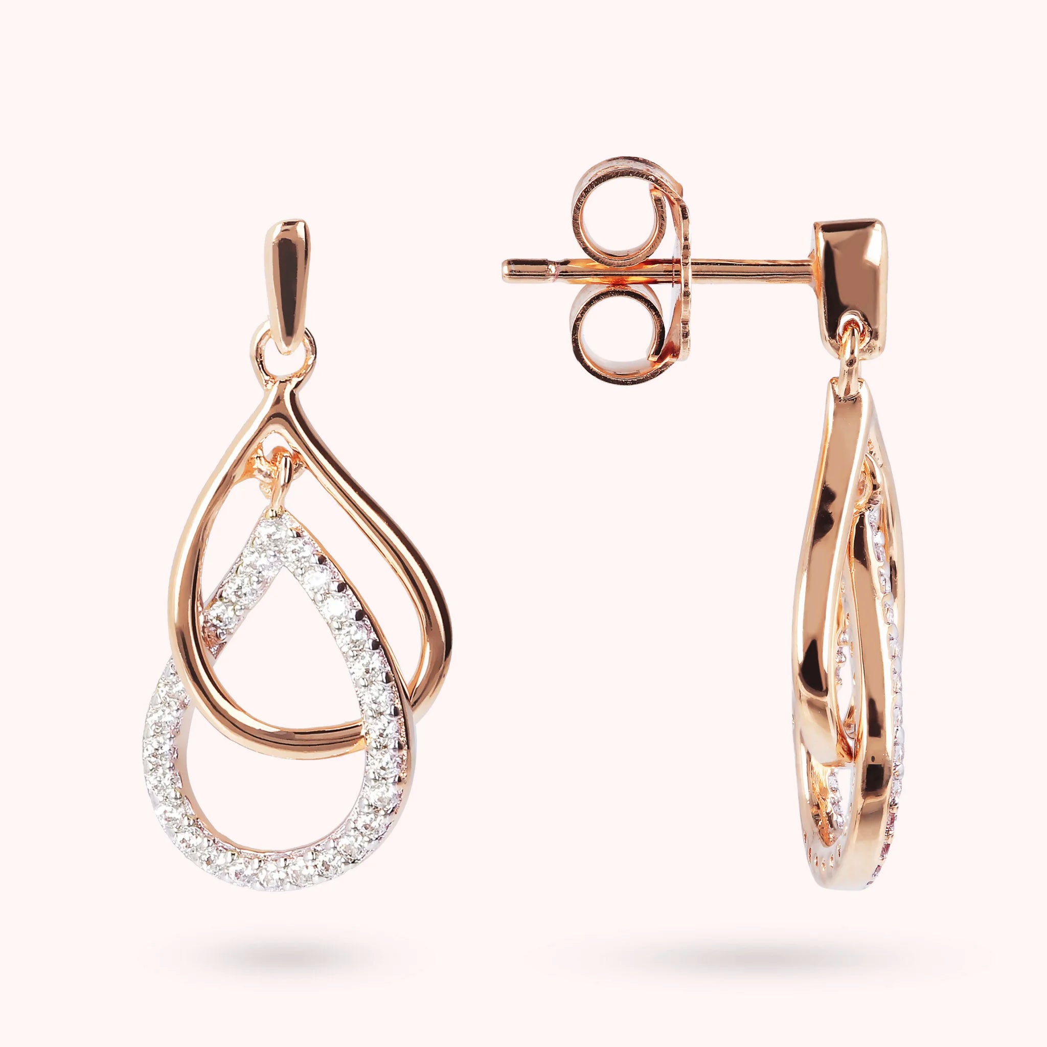 Bronzallure pendant earrings, made on a Golden Rosé base, 18kt rose gold plated, embellished with a double drop in golden rosé and cubic zirconia, luminous quality; stud and butterfly closure; length of 2cm. Elegant creation, with a perfect design to make your look shine.