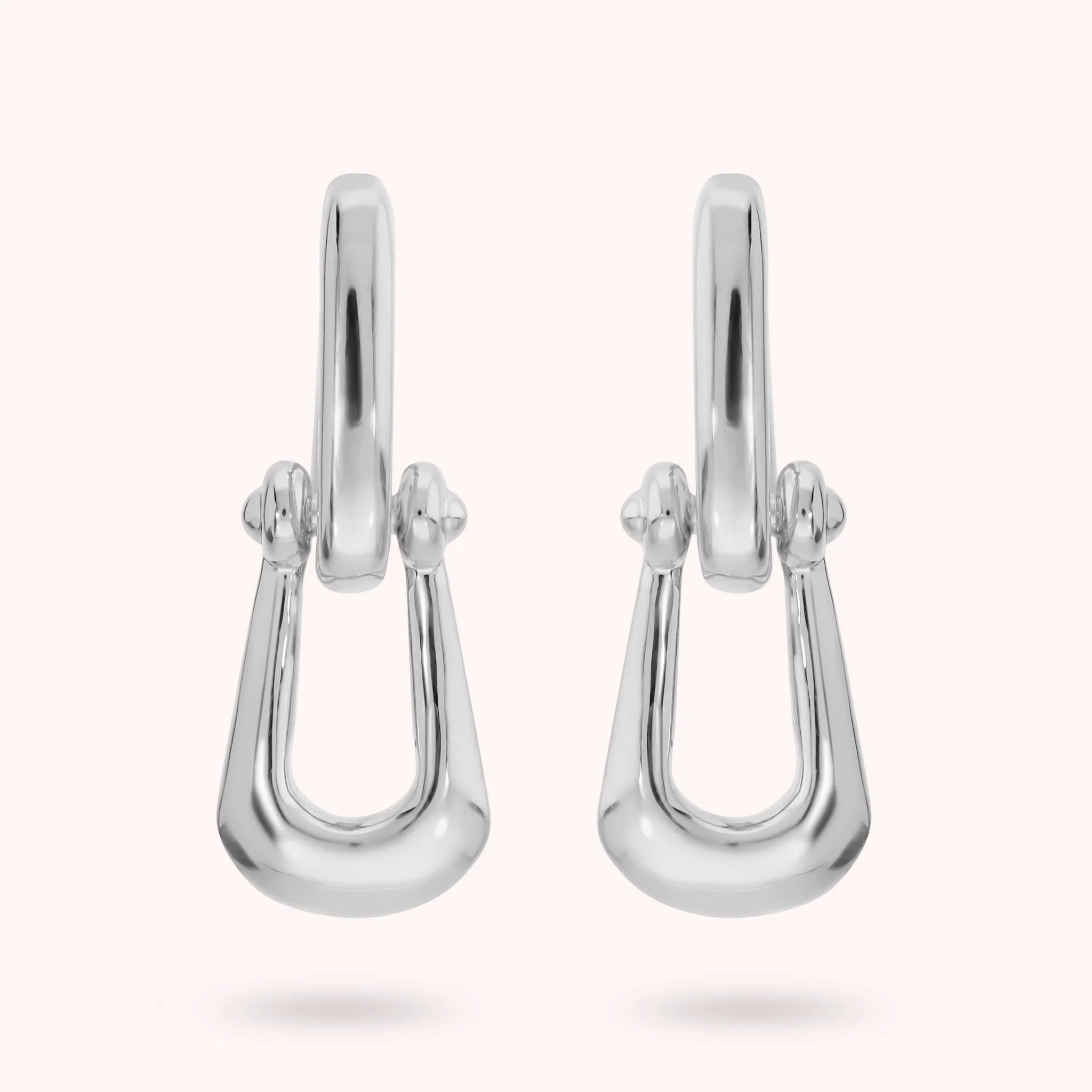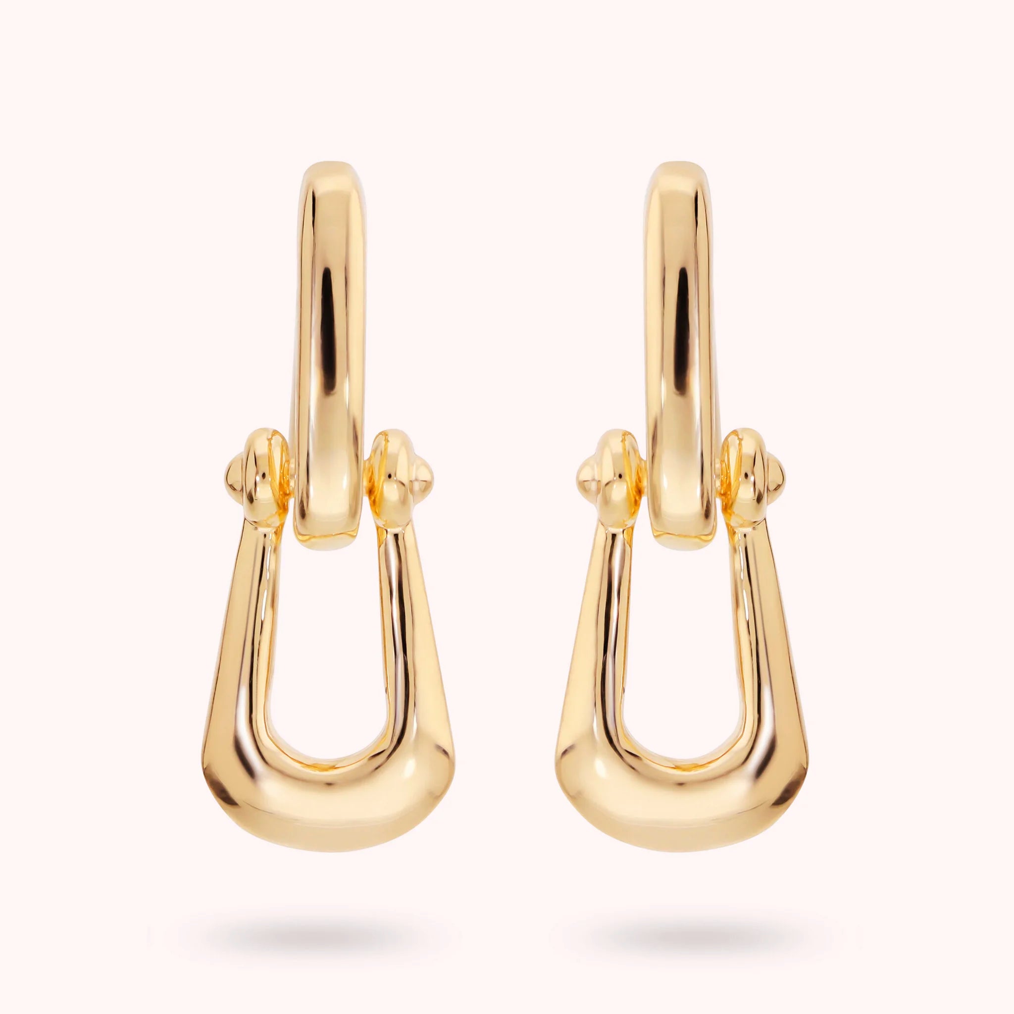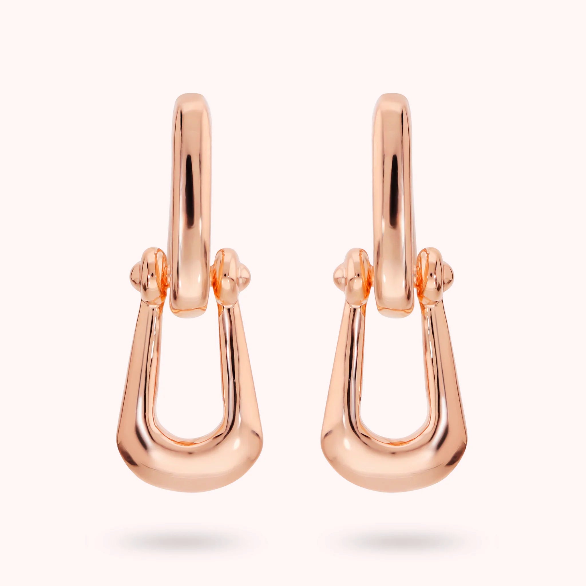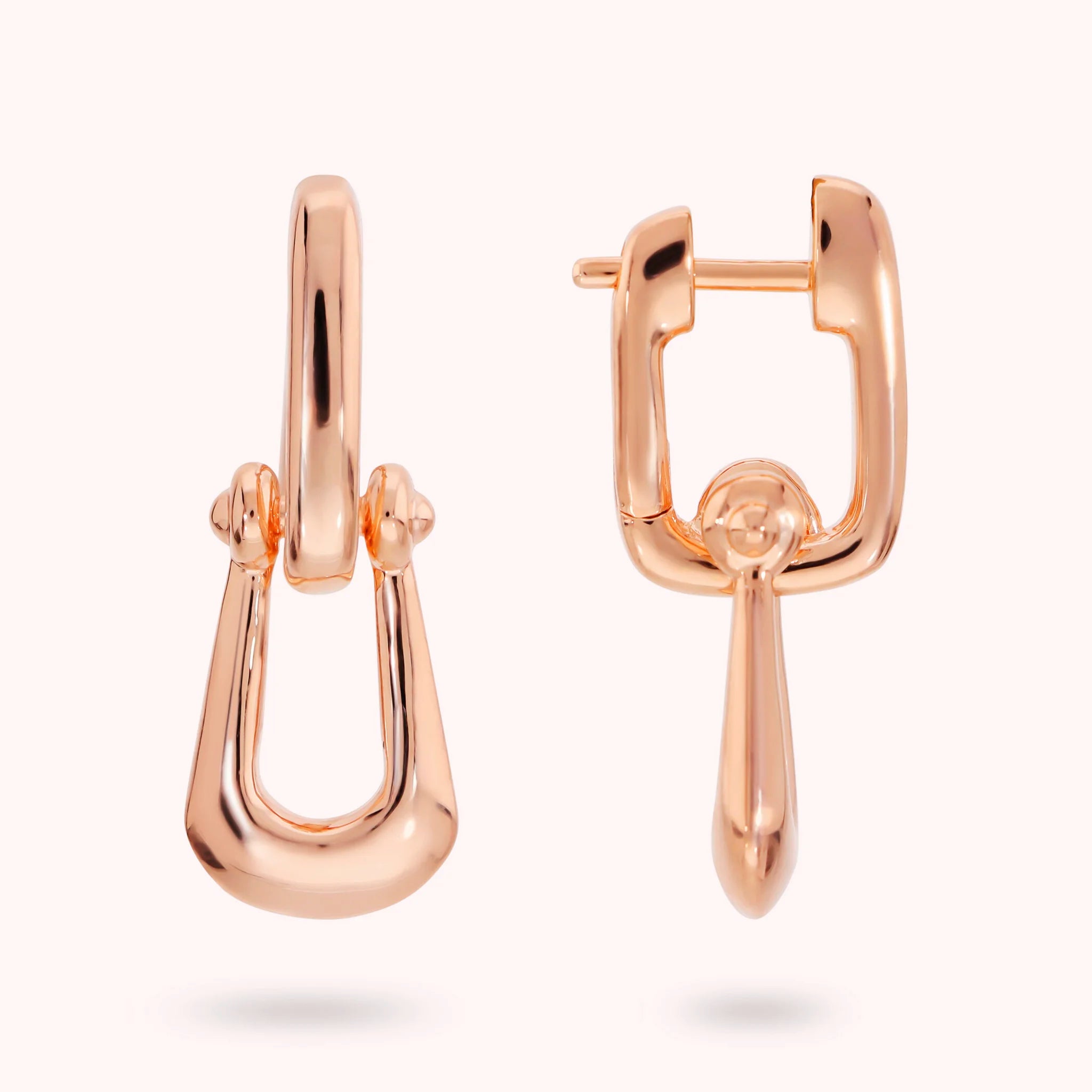 Bronzallure drop earrings made of Golden Rosé alloy, 18kt gold plated, with a polished hoop top and a polished link pendant. Closure with snap pin.
