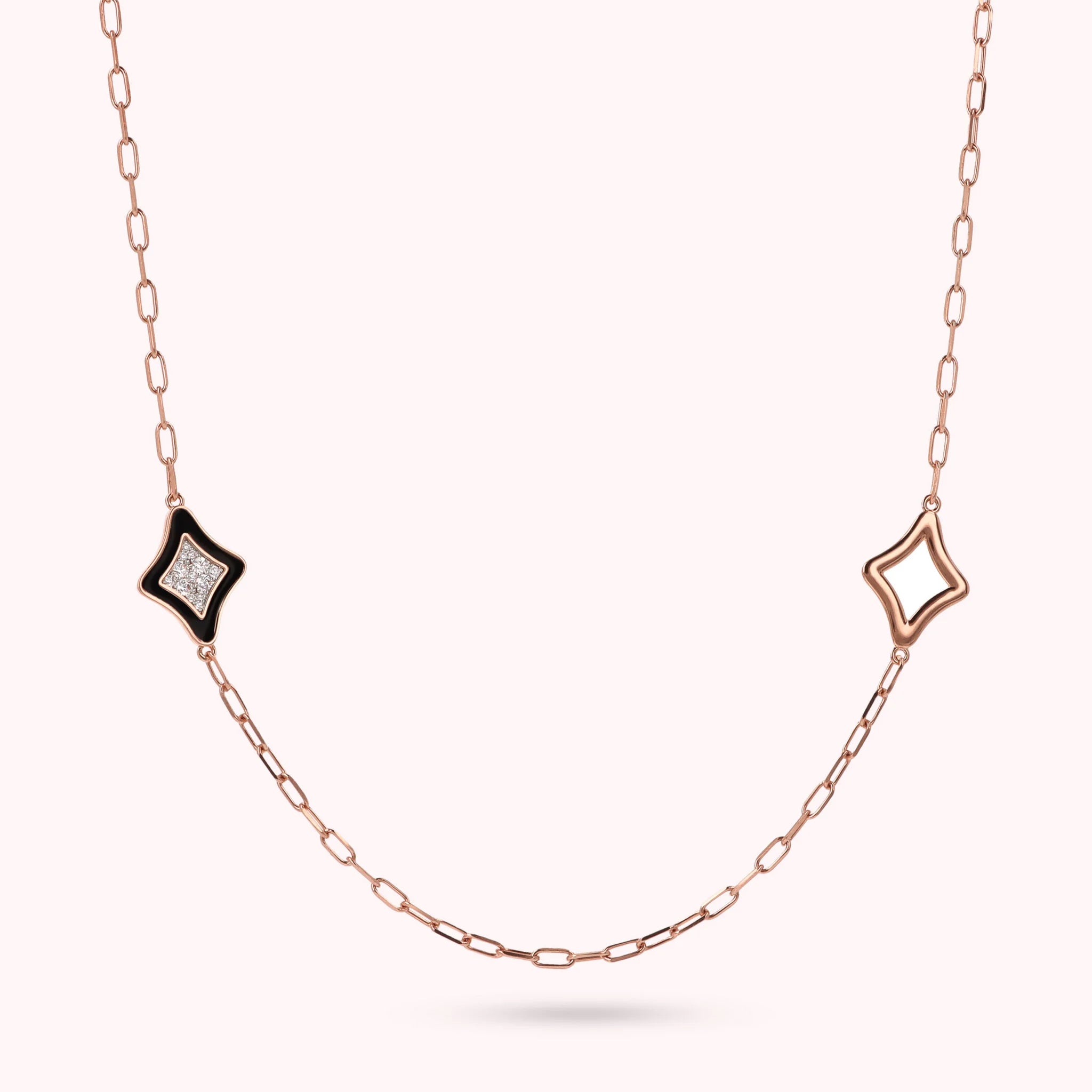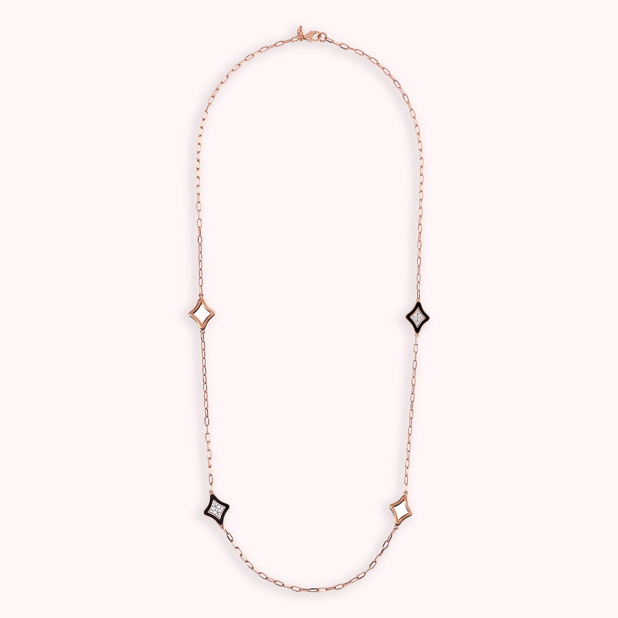 Forzatina Chain Necklace with Enamelled Etoile Stations and Cubic Zirconia Pavé
