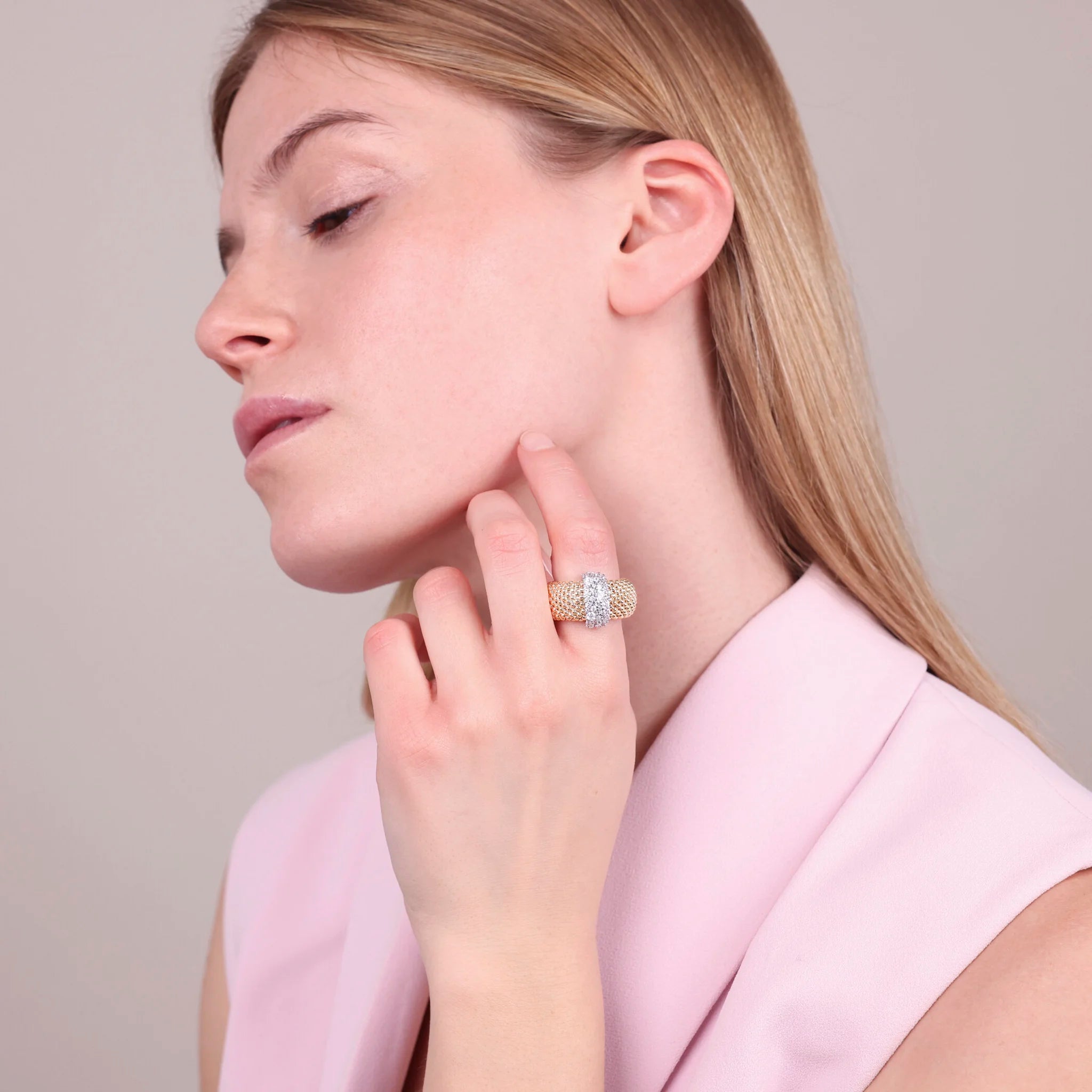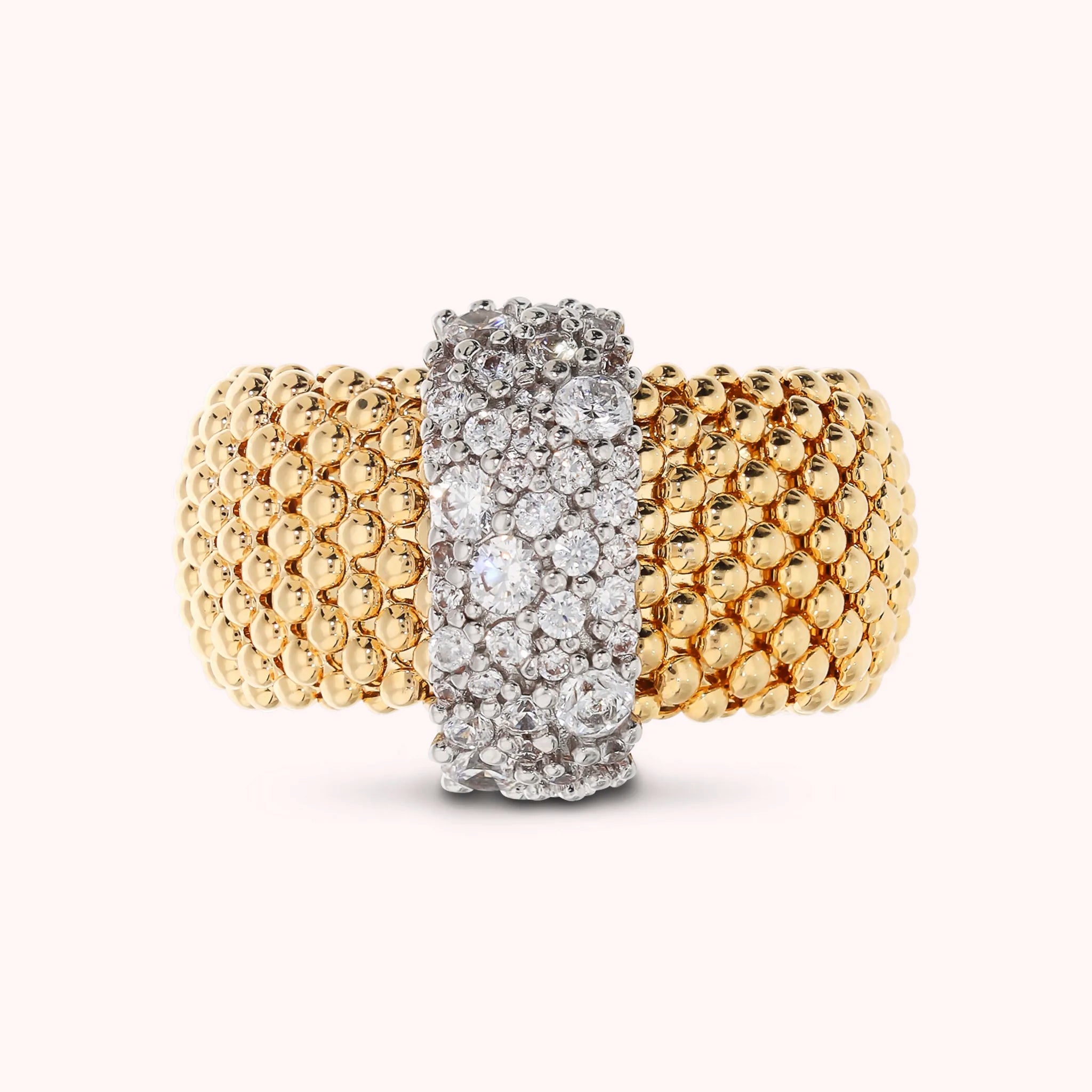 Golden Popcorn Band Ring with Cubic Zirconia Pave