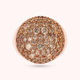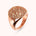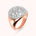 Chevalier ring made of Golden Rosé alloy, 18kt rose gold plated, with a round shape (35 mm) with pavé surface in cubic zirconia, luminous quality, and small dots in Golden Rosé.