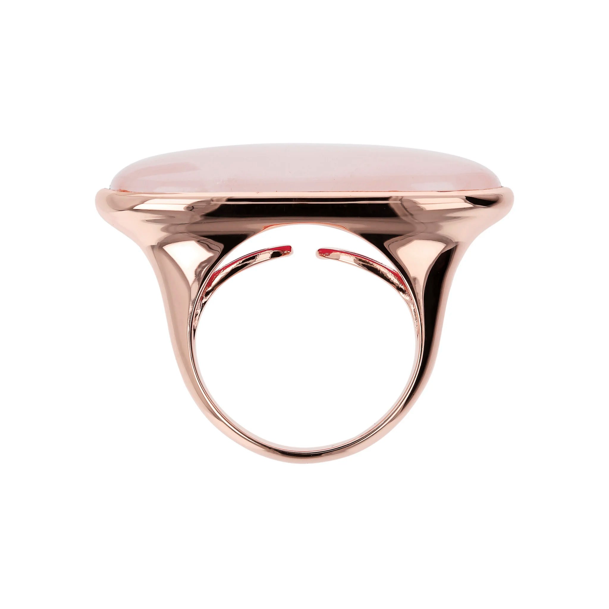 Bronzallure chevalier ring made on a Golden Rosé base, 18kt rose gold plated, embellished with a natural stone with an elongated oval shape (33 mm).