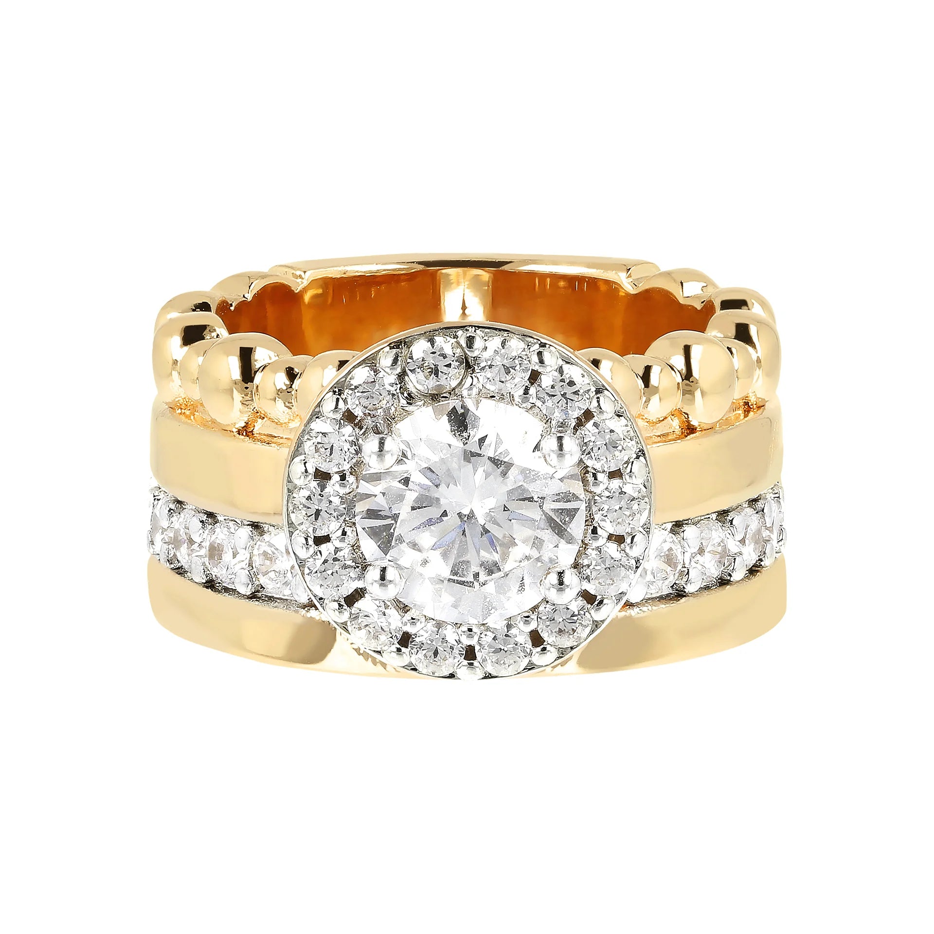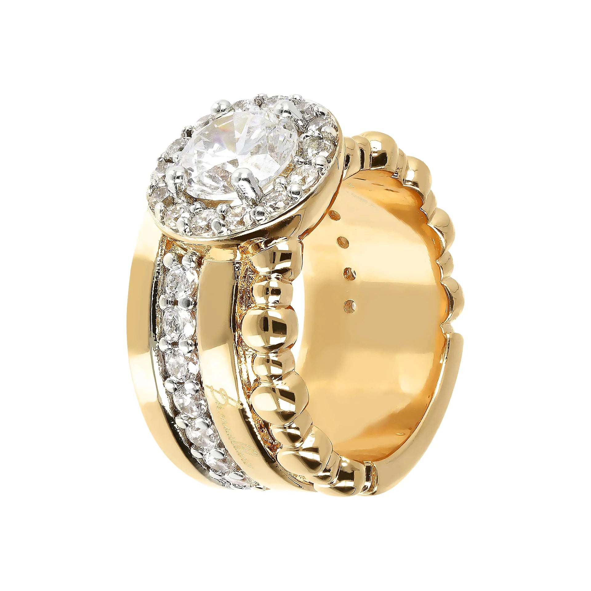 Bronzallure mixed band ring made of 18kt yellow gold plated Golden Rosé with a luminous central cubic zirconia stone surrounded by a corolla also in luminous zircons and ball detail. Elegant creation, with a perfect design to make your look shine.