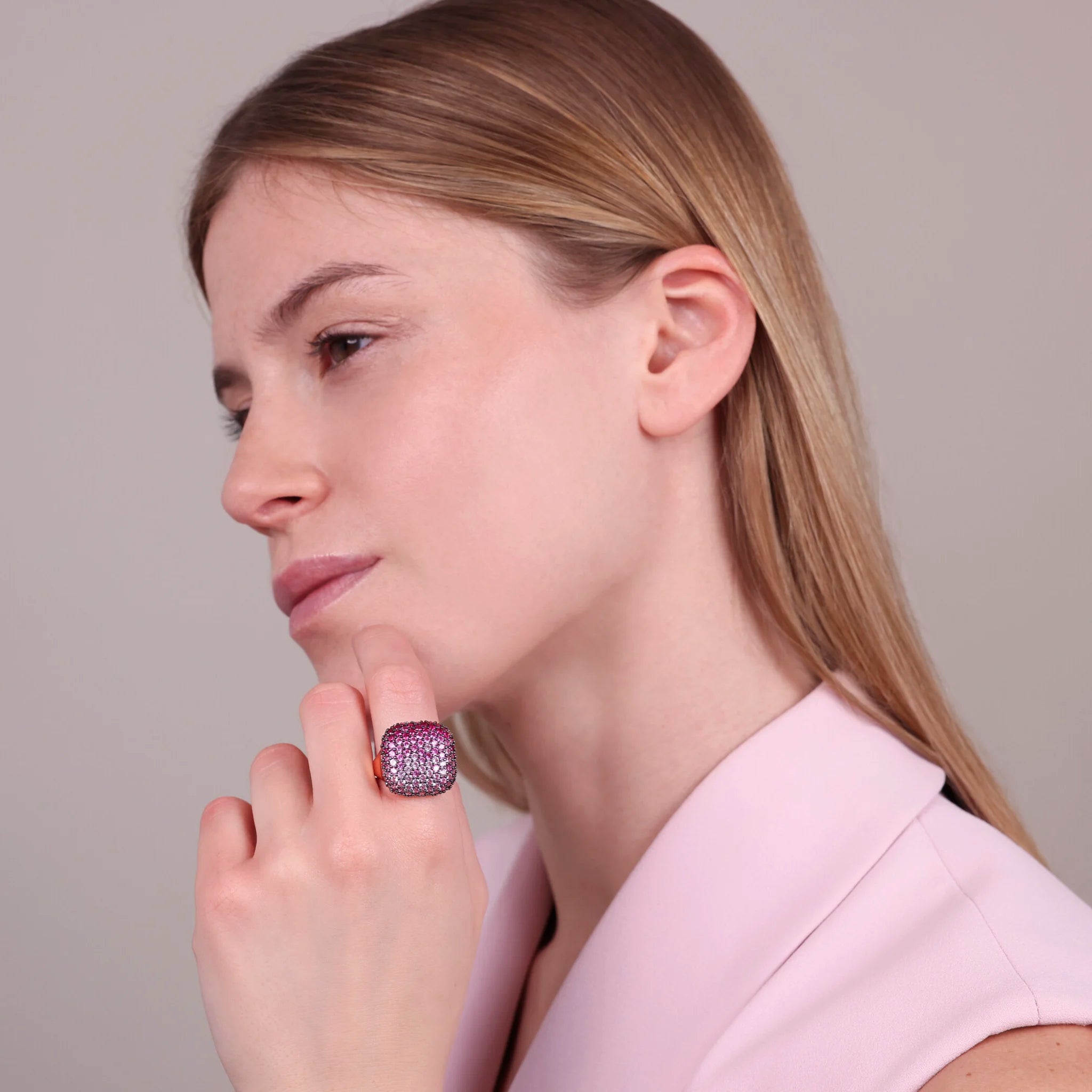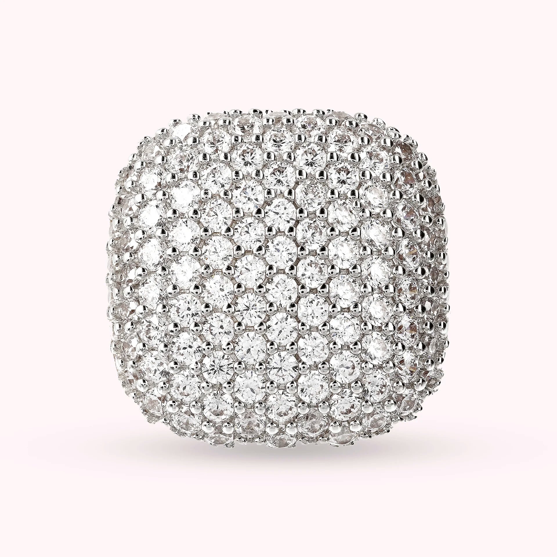 Square Chevalier Ring with Pavé in Cubic Zirconia