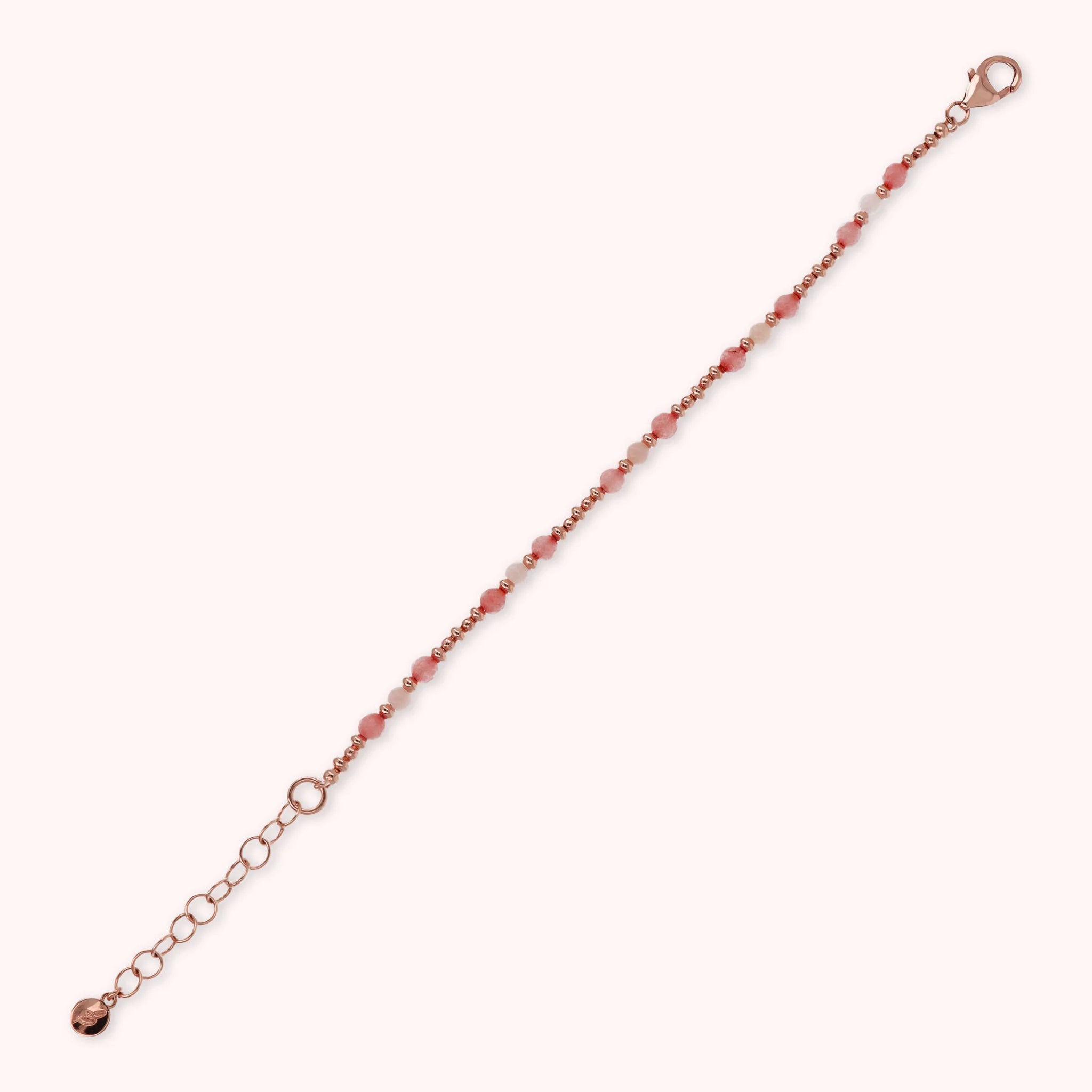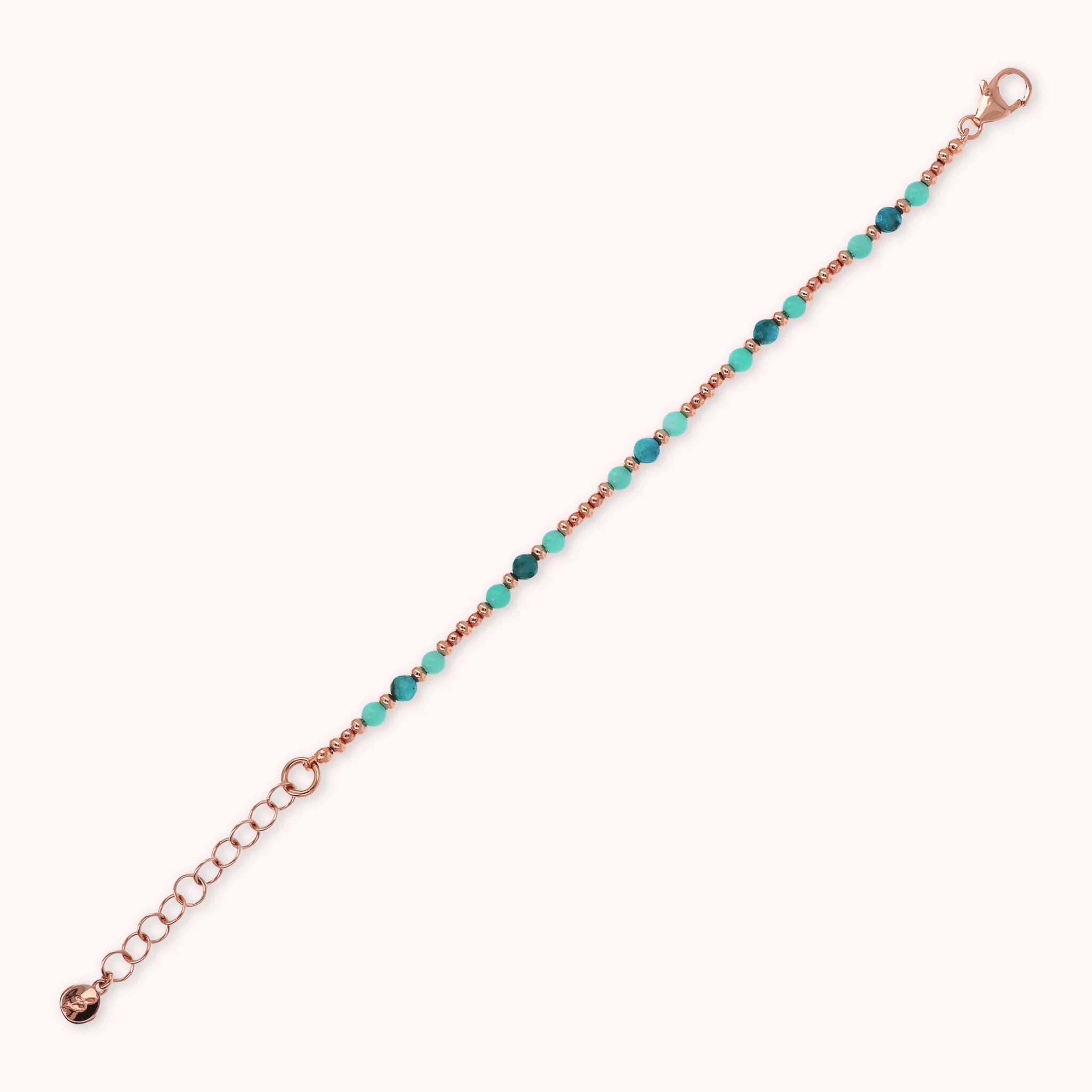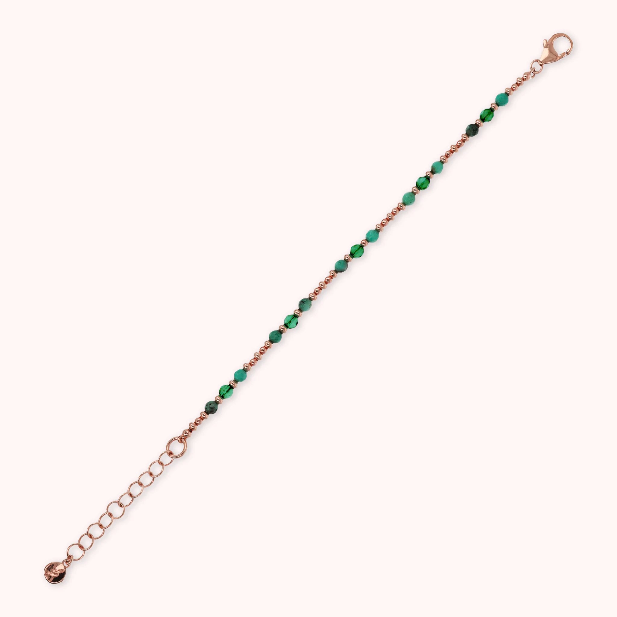 Bracelet made of Golden Rosé alloy, 18kt rose gold plated, embellished with an alternation of small beads and washers in golden rosé and small spheres (5 mm) in faceted natural stone. Lobster clasp closure.
