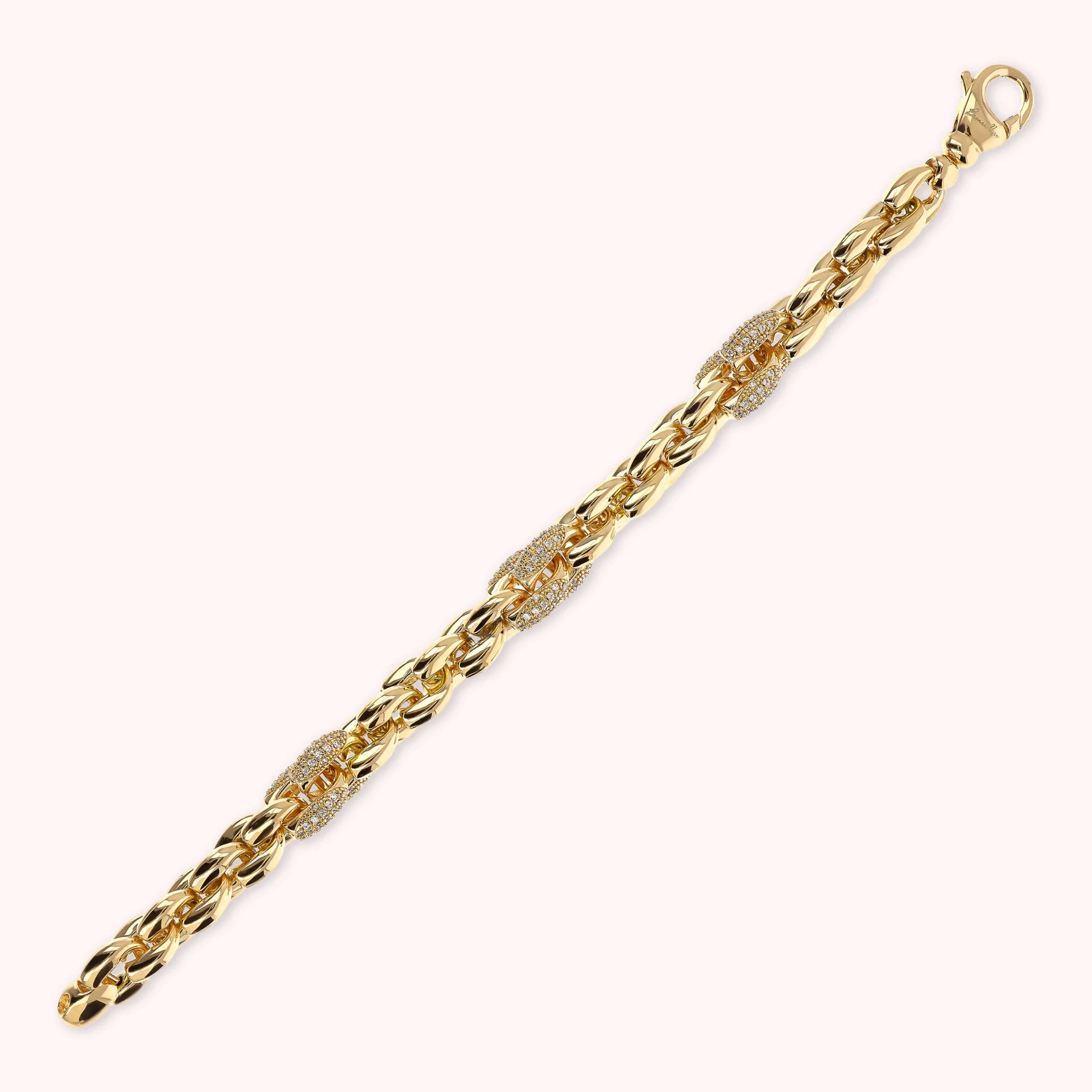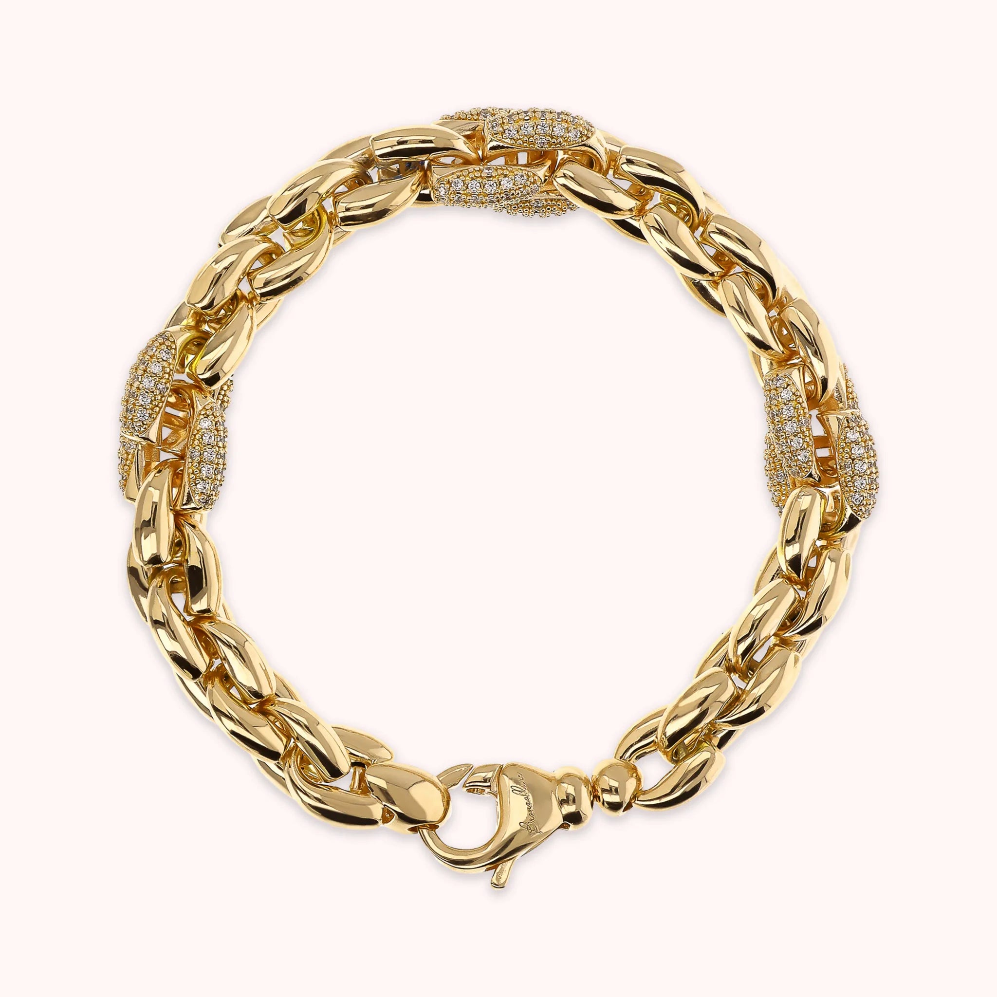 Golden Geometric Mesh Bracelet with Cubic Zirconia Pavé Elements
