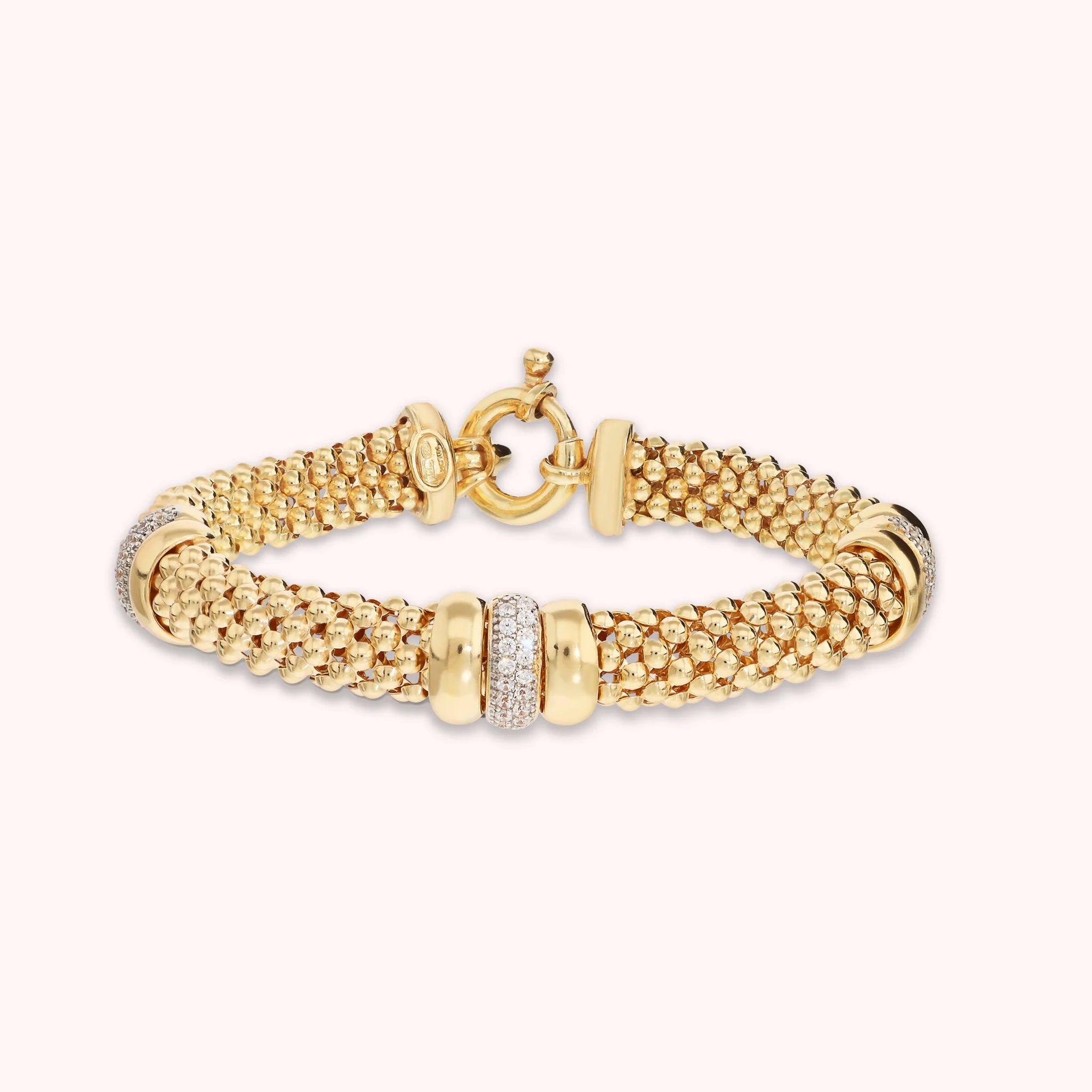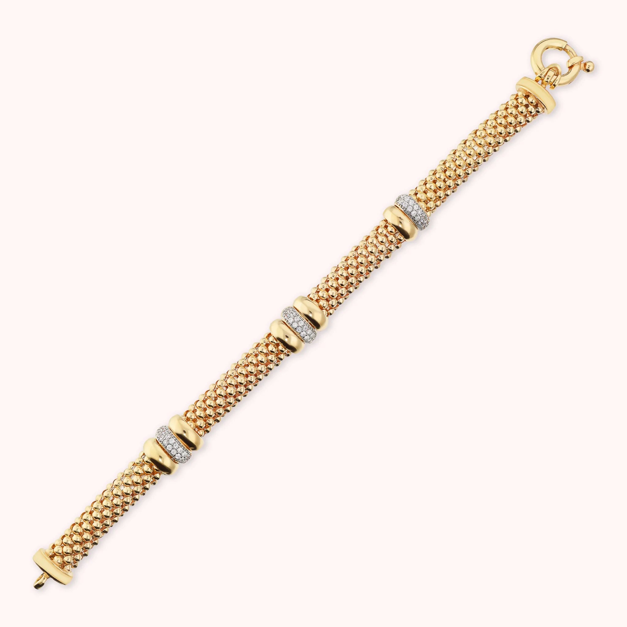 Golden Popcorn Link Bracelet with Pavé Rondelles in Cubic Zirconia