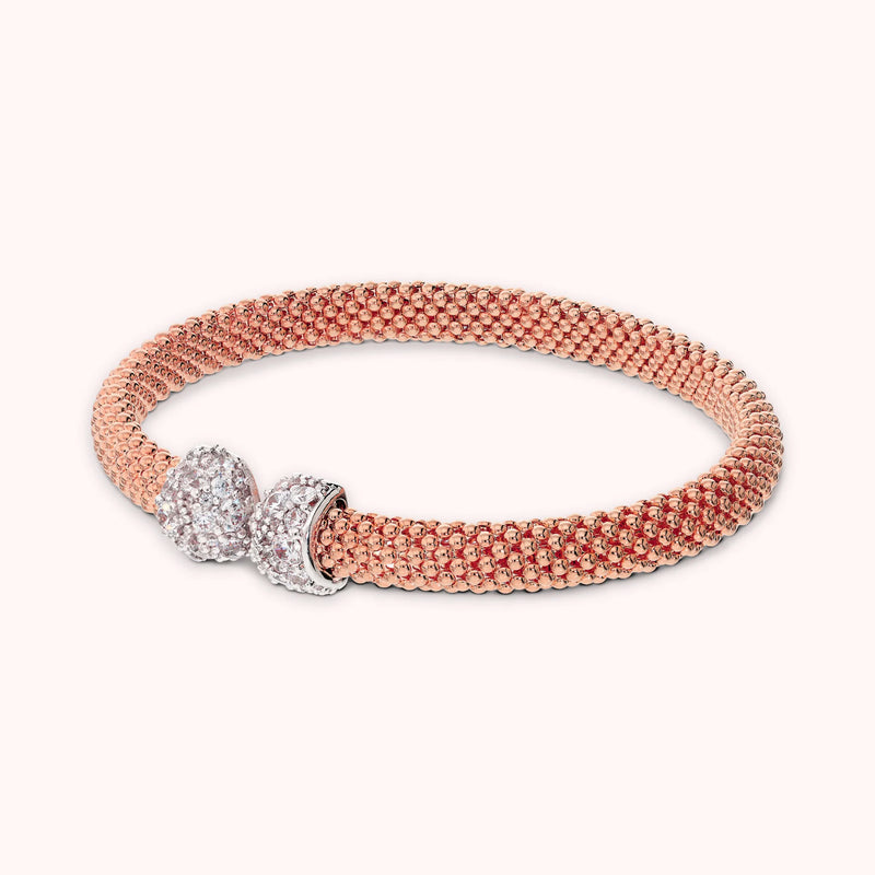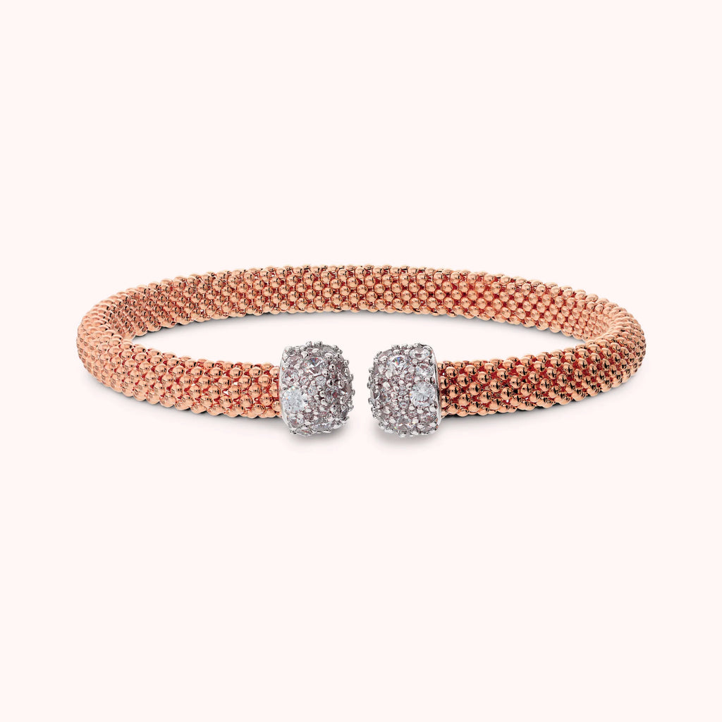 Rigid bracelet Bronzallure made of Golden Rosé alloy, plated with 18kt Rose Gold, featuring popcorn link and pavé element in cubic zirconia, quality 'Luminous'.
