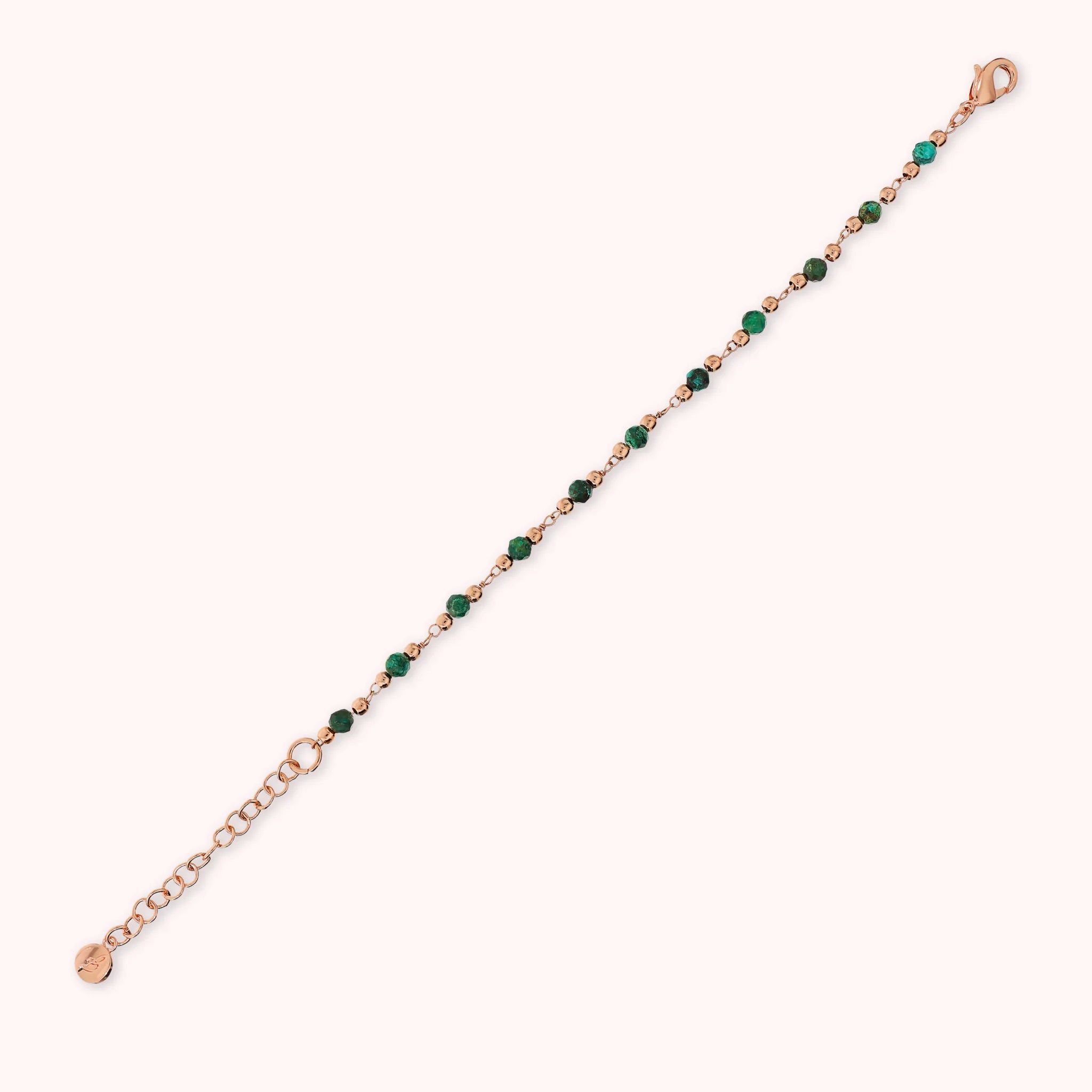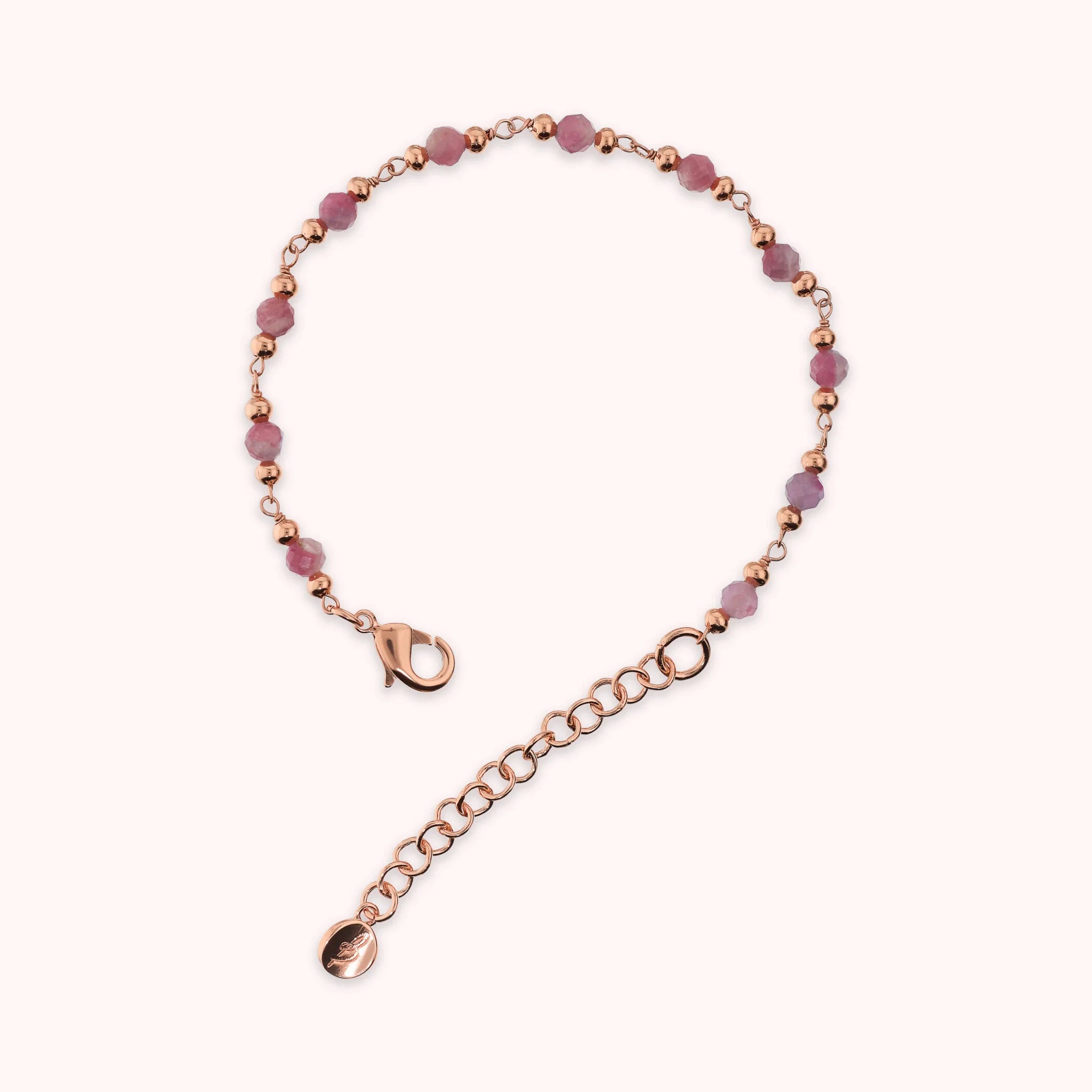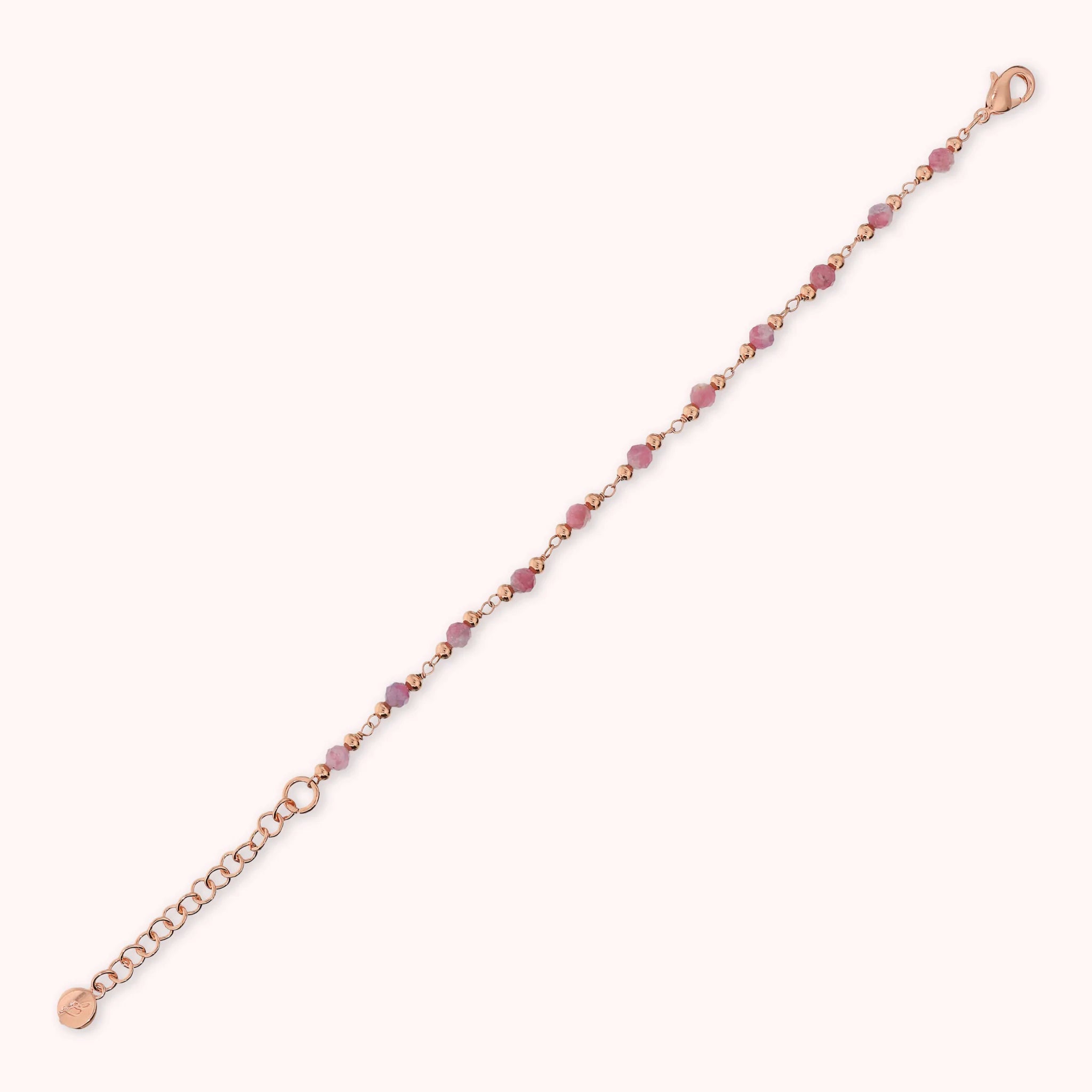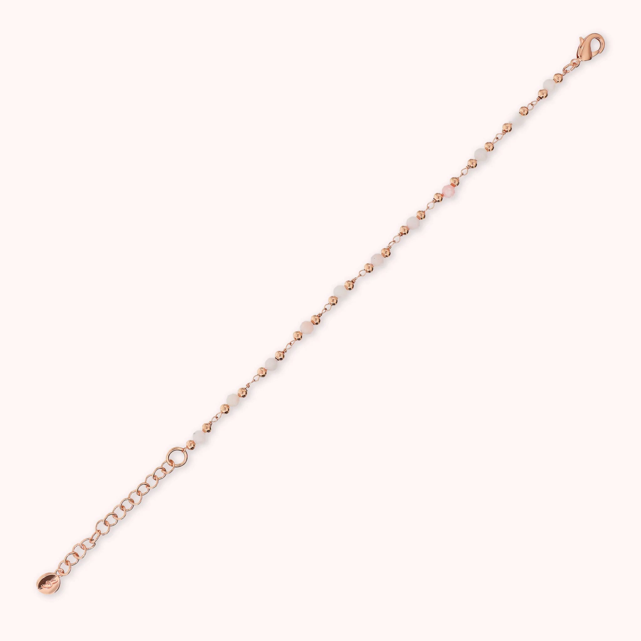Rosary bracelet Bronzallure made of Golden Rosé alloy, plated with 18kt Rose Gold, with faceted natural stones (4 mm) alternating with small shiny beads (3 mm). Length 16.5+4 cm extension. Lobster clasp.