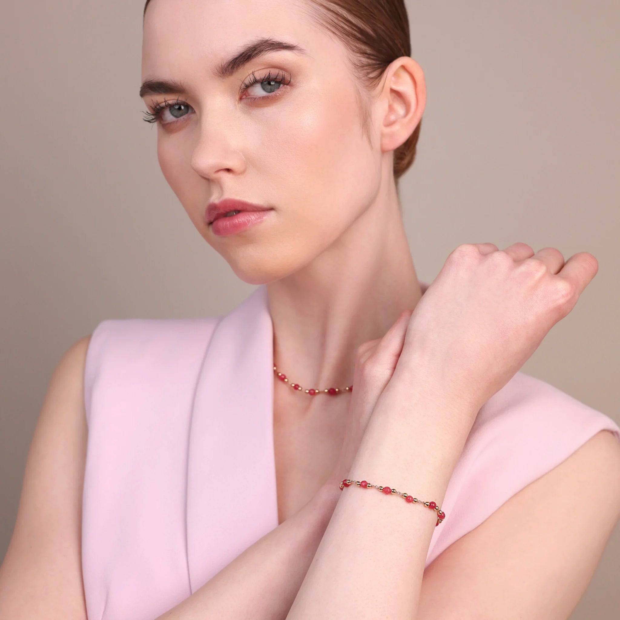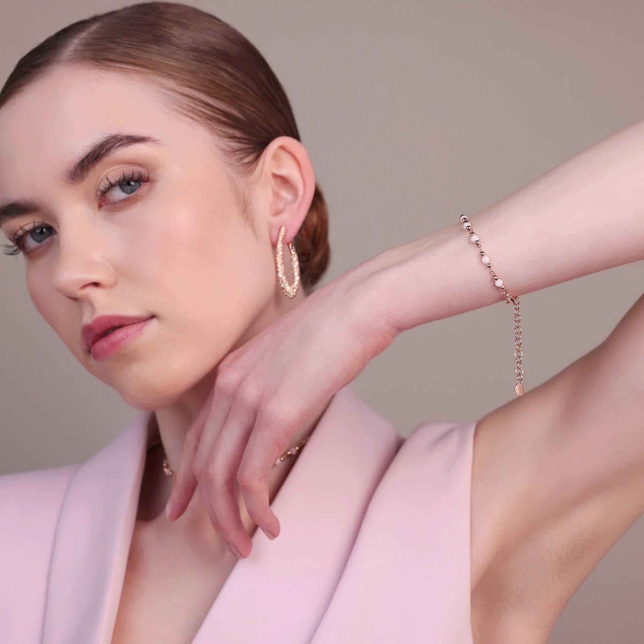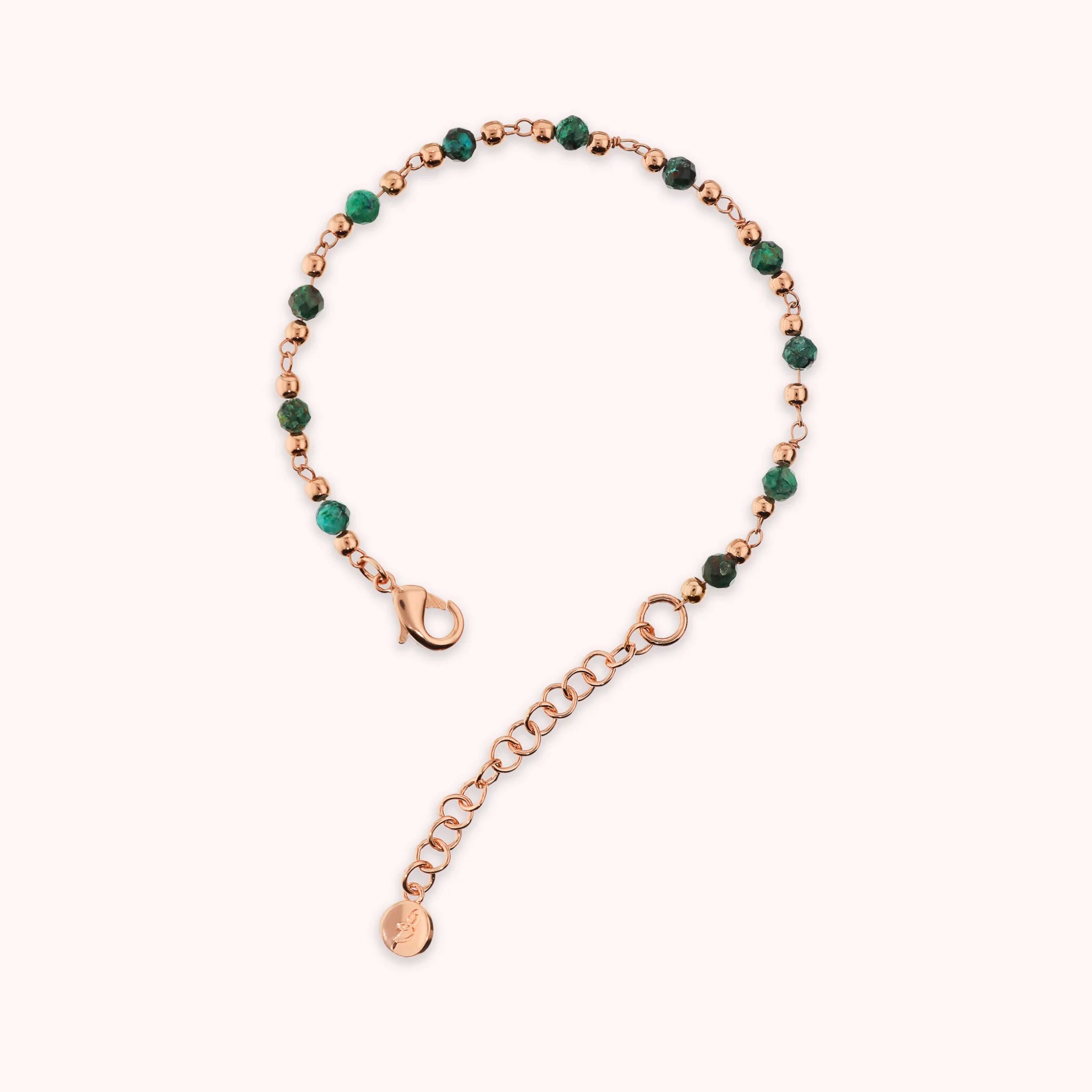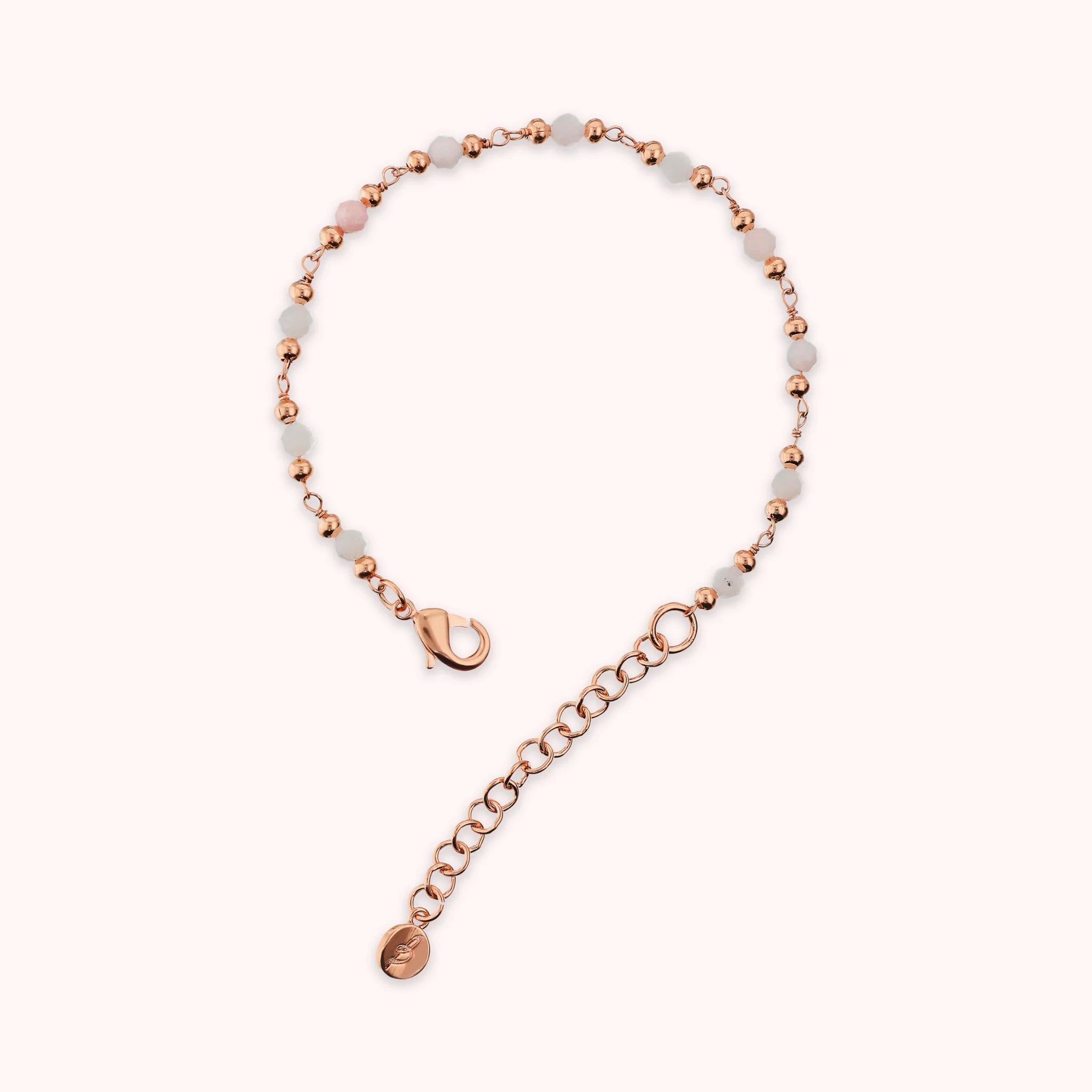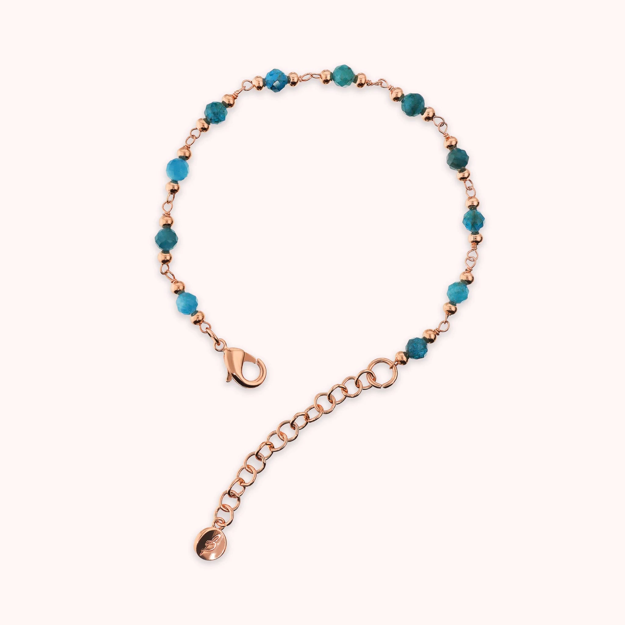 Rosary bracelet Bronzallure made of Golden Rosé alloy, plated with 18kt Rose Gold, with faceted natural stones (4 mm) alternating with small shiny beads (3 mm). Length 16.5+4 cm extension. Lobster clasp.