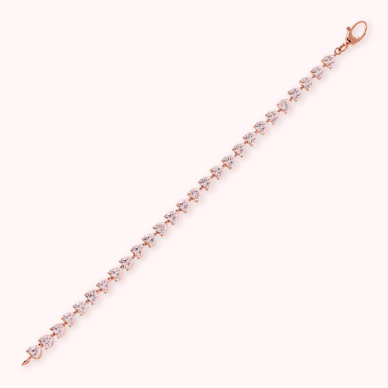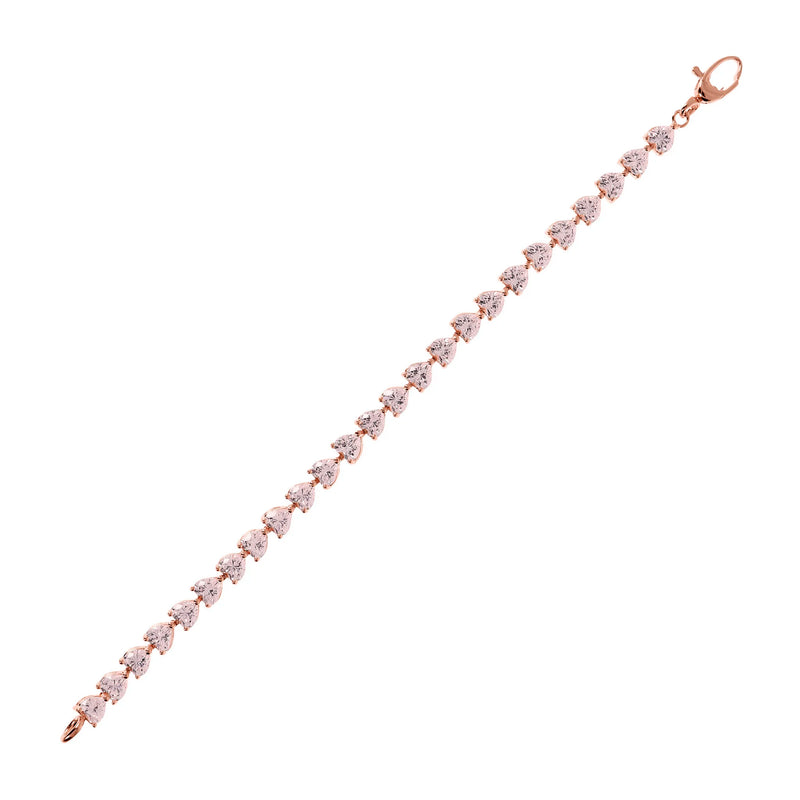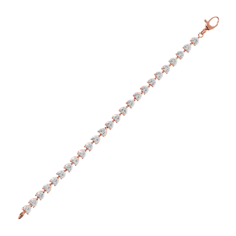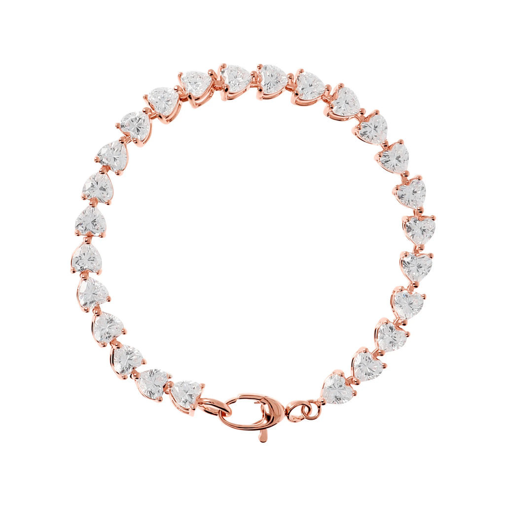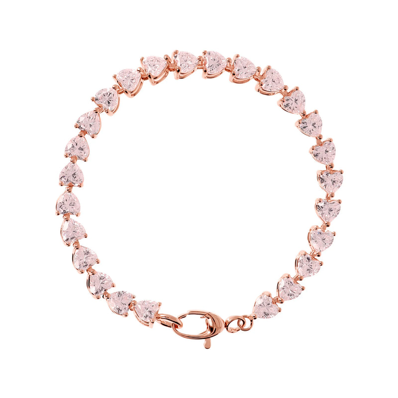 Bronzallure tennis bracelet made of Golden Rosé alloy, 18kt rose gold plated, embellished with cubic zirconia hearts, luminous quality. Available in two sizes: small (17.8 cm) and large (18.4 cm)