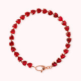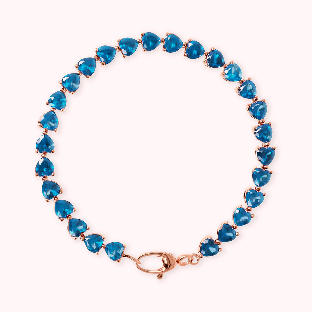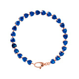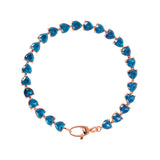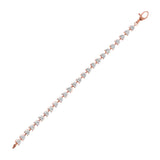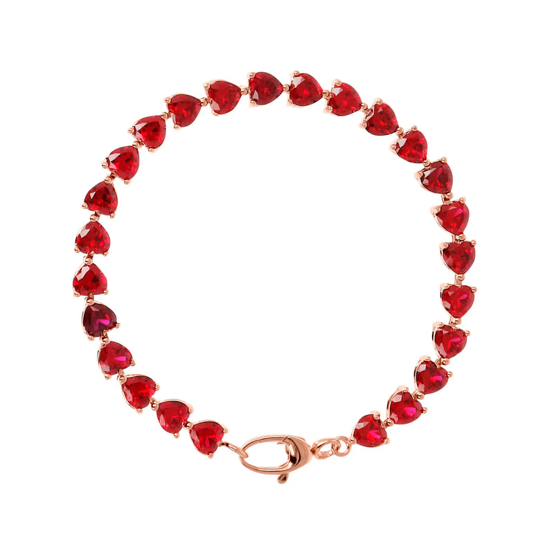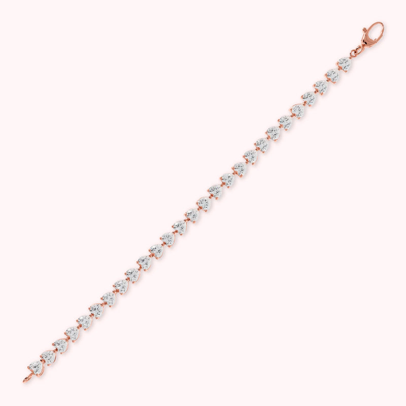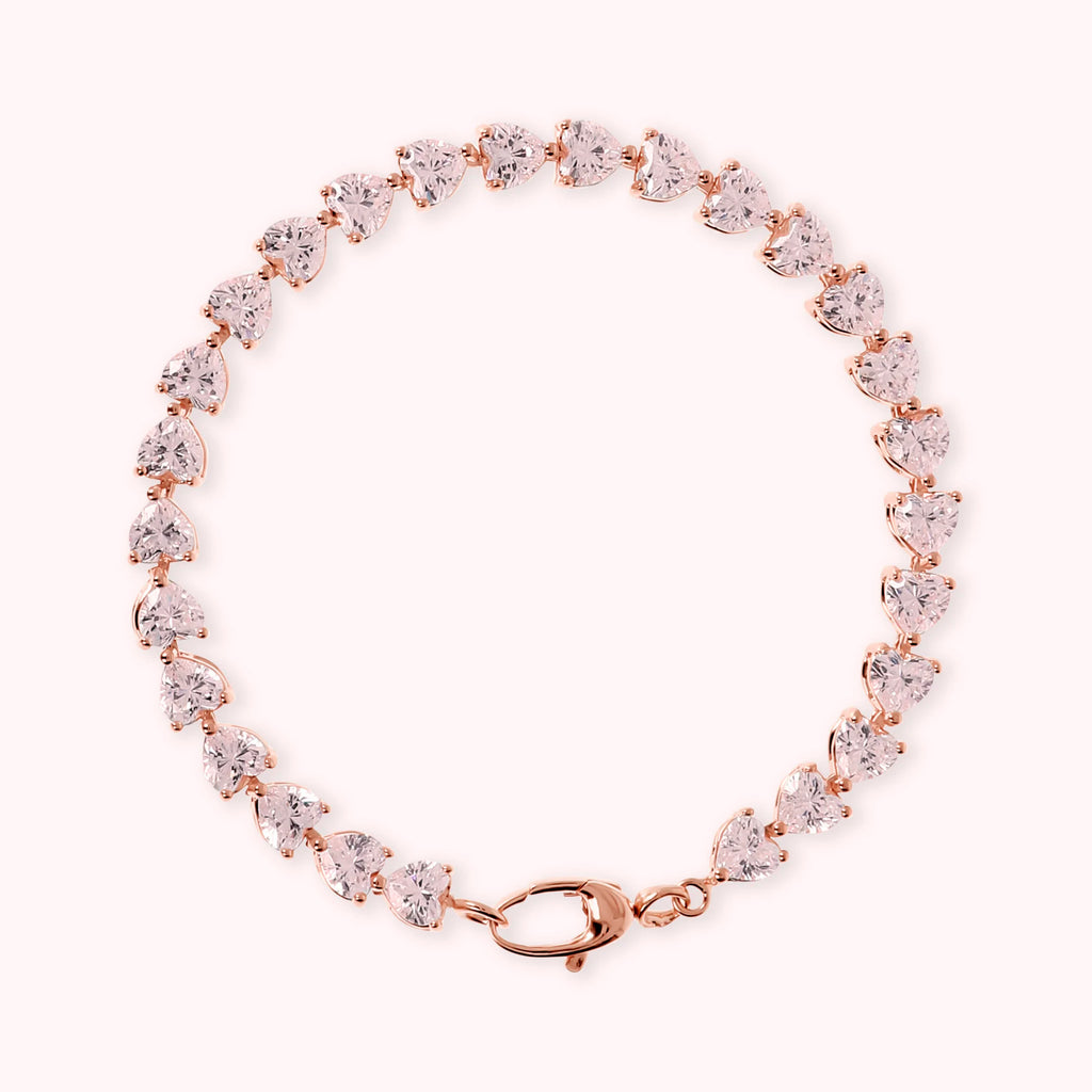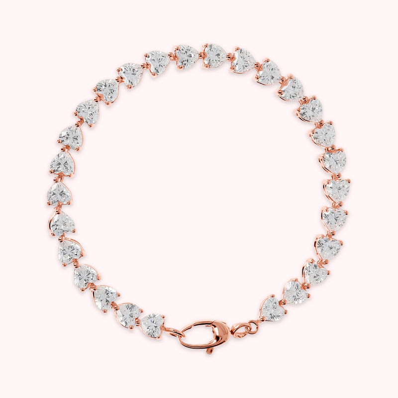 Bronzallure tennis bracelet made of Golden Rosé alloy, 18kt rose gold plated, embellished with cubic zirconia hearts, luminous quality. Available in two sizes: small (17.8 cm) and large (18.4 cm)