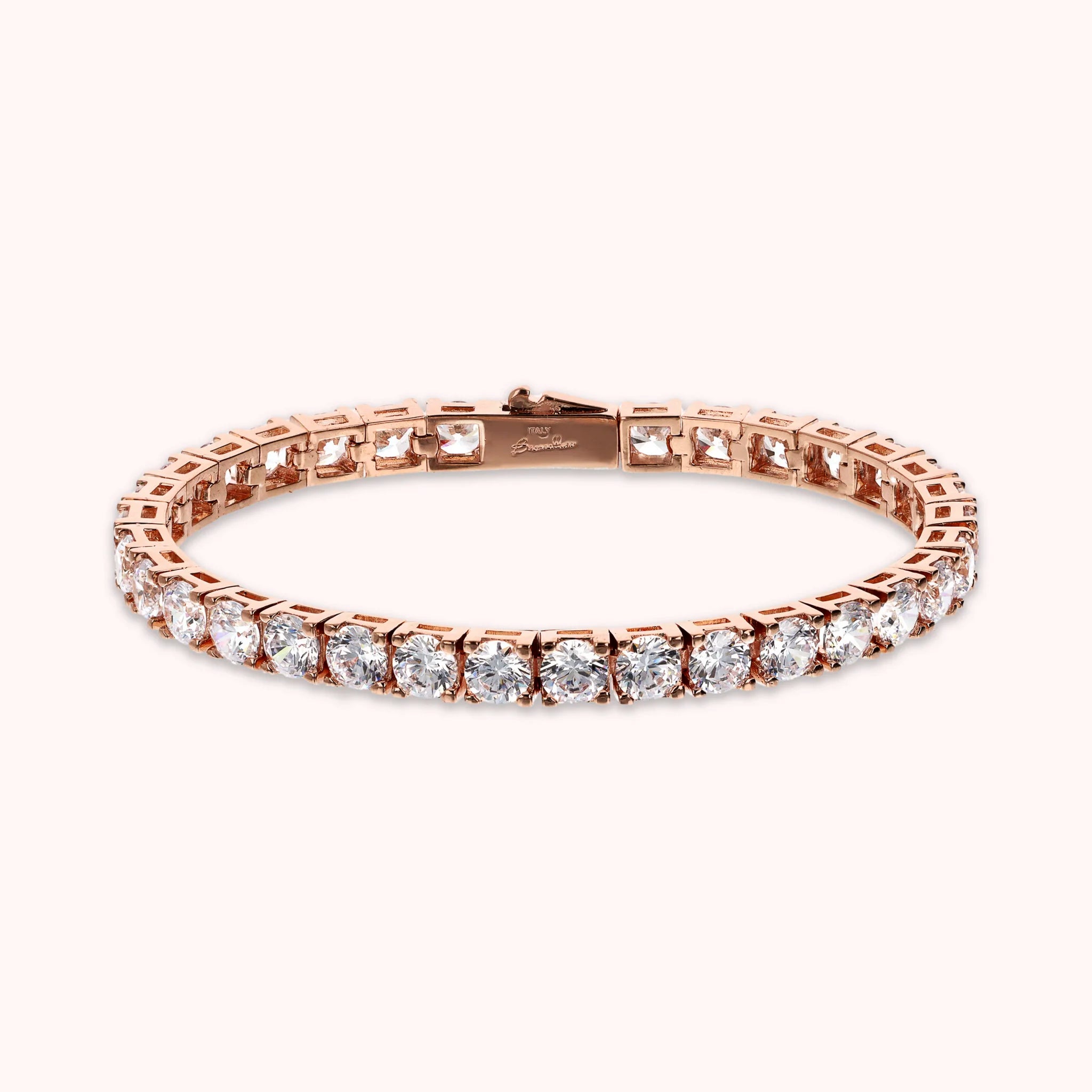 Bronzallure maxi tennis bracelet made of Golden Rosé alloy, 18kt rose gold plated, embellished with round-shaped cubic zirconia, luminous quality; cassette closure.