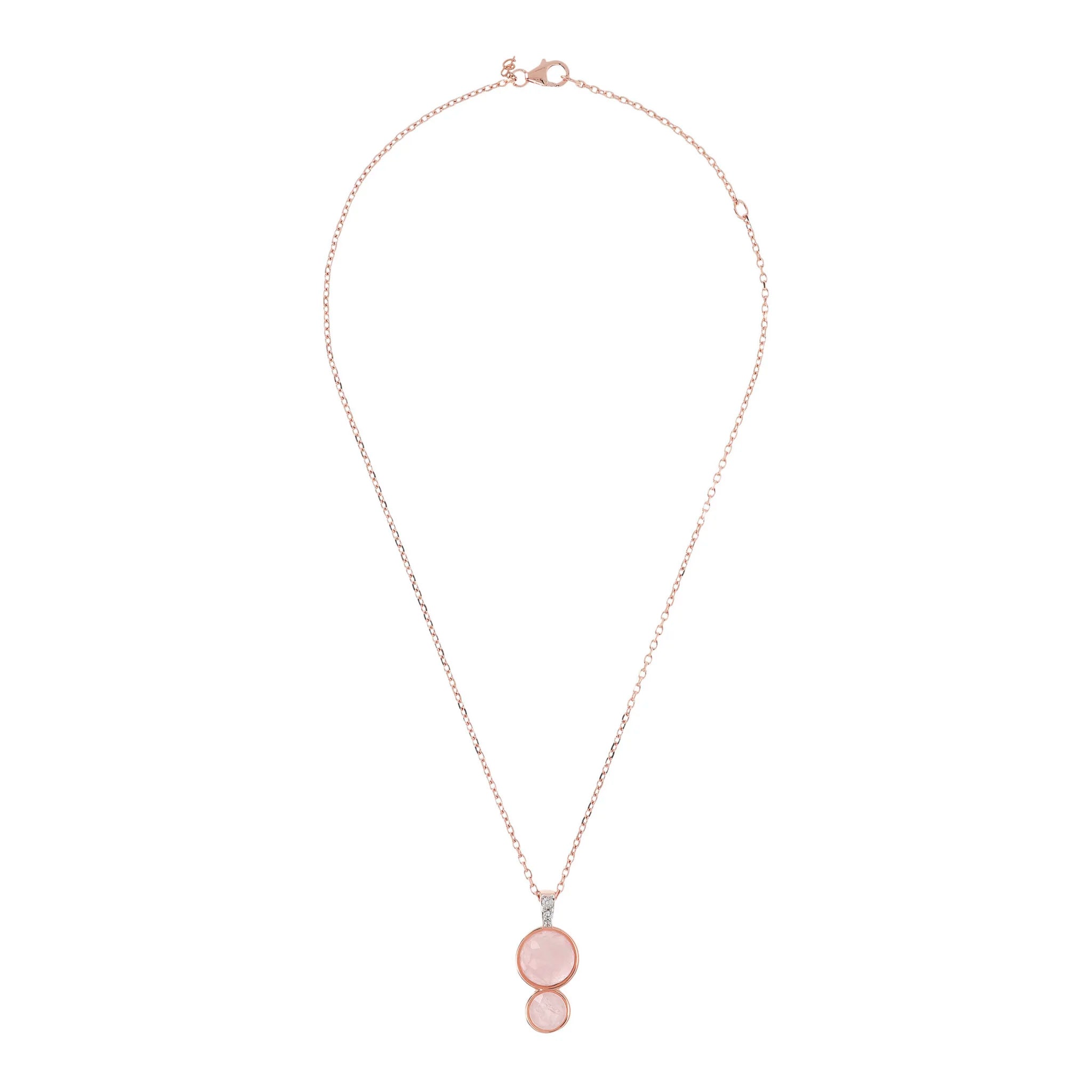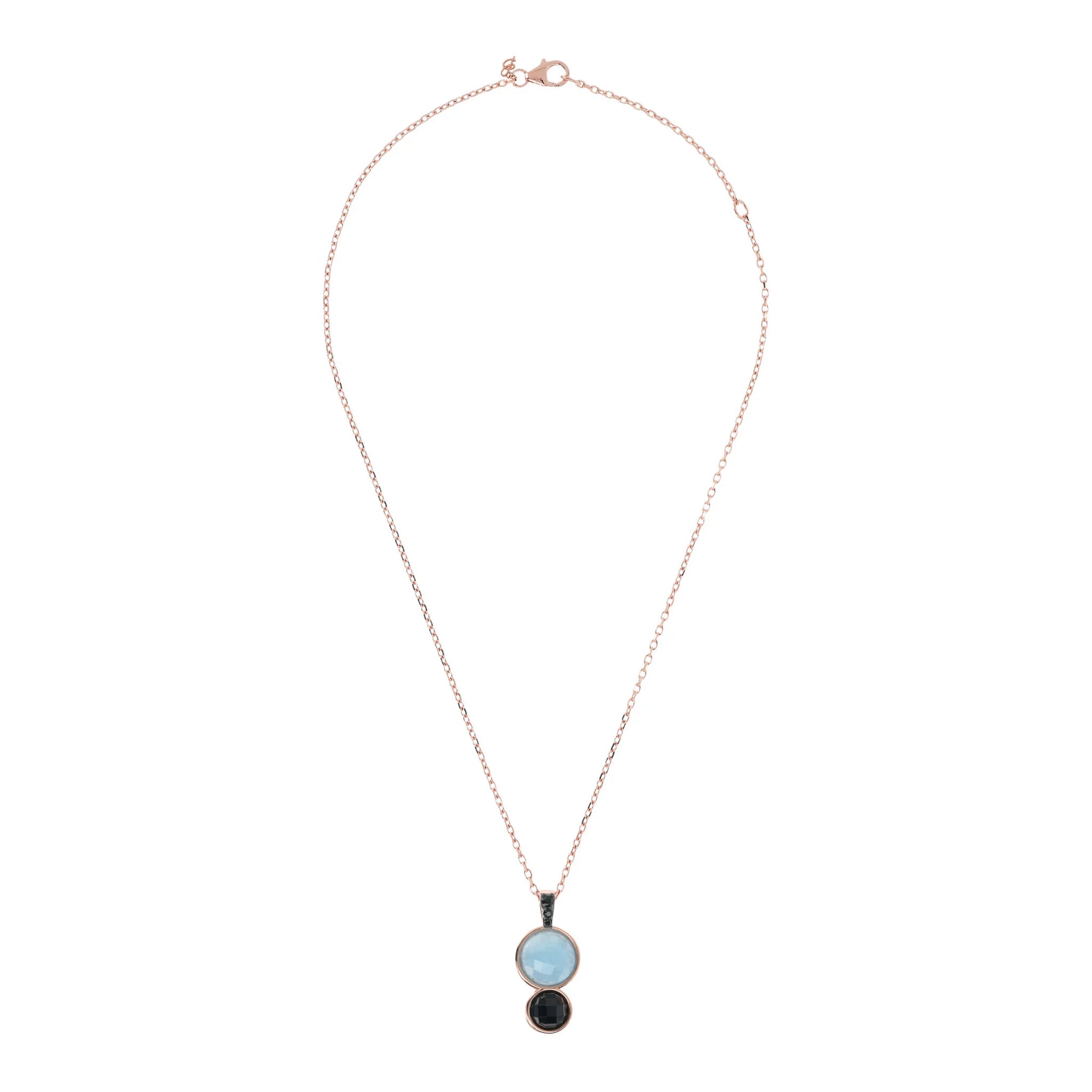 Bronzallure necklace made of Golden Rosé alloy, 18kt rose gold plated, with forzatina chain embellished with a pavé counter-link in black spinel or cubic zirconia and a pendant with double faceted natural stone (12 and 8 mm); lobster clasp closure.