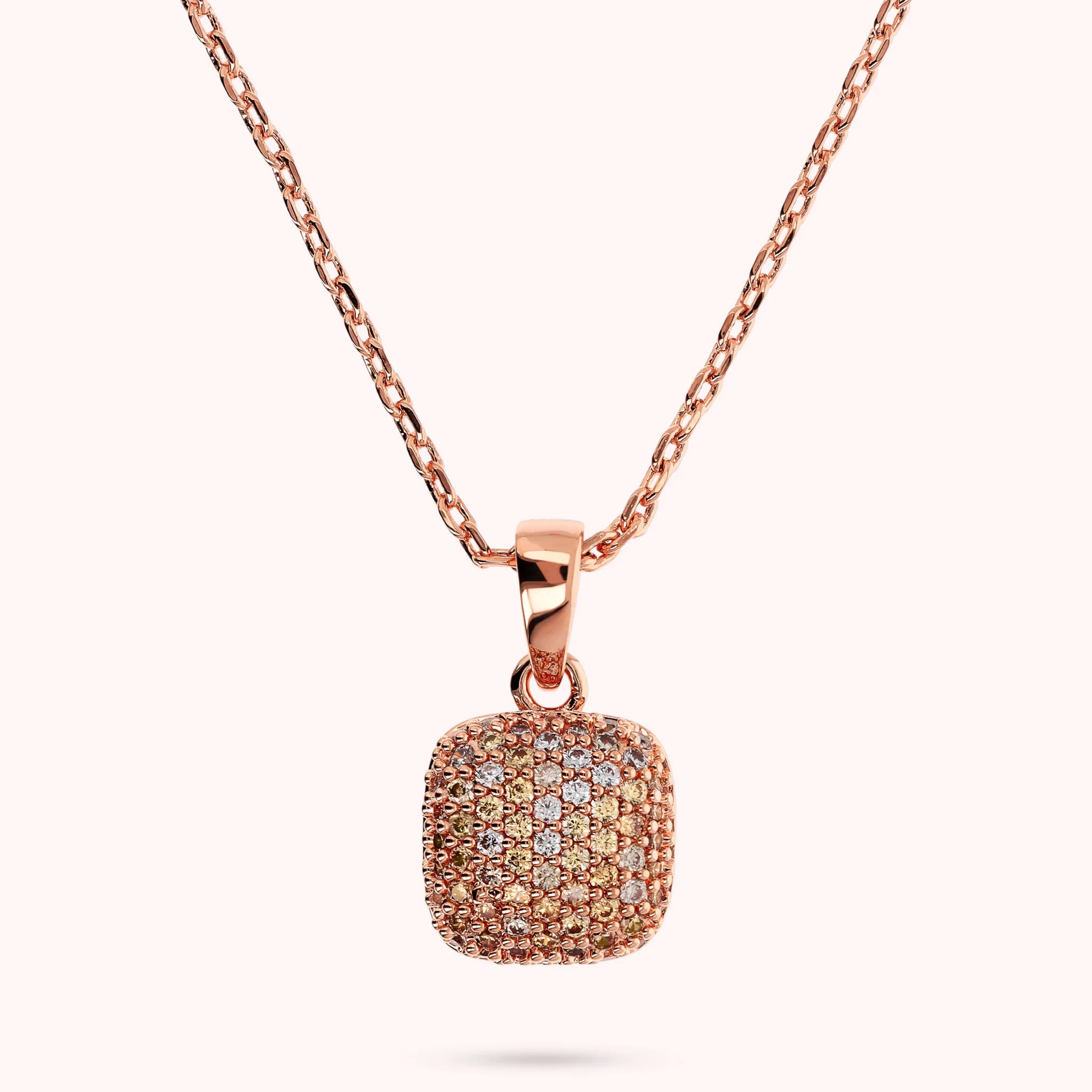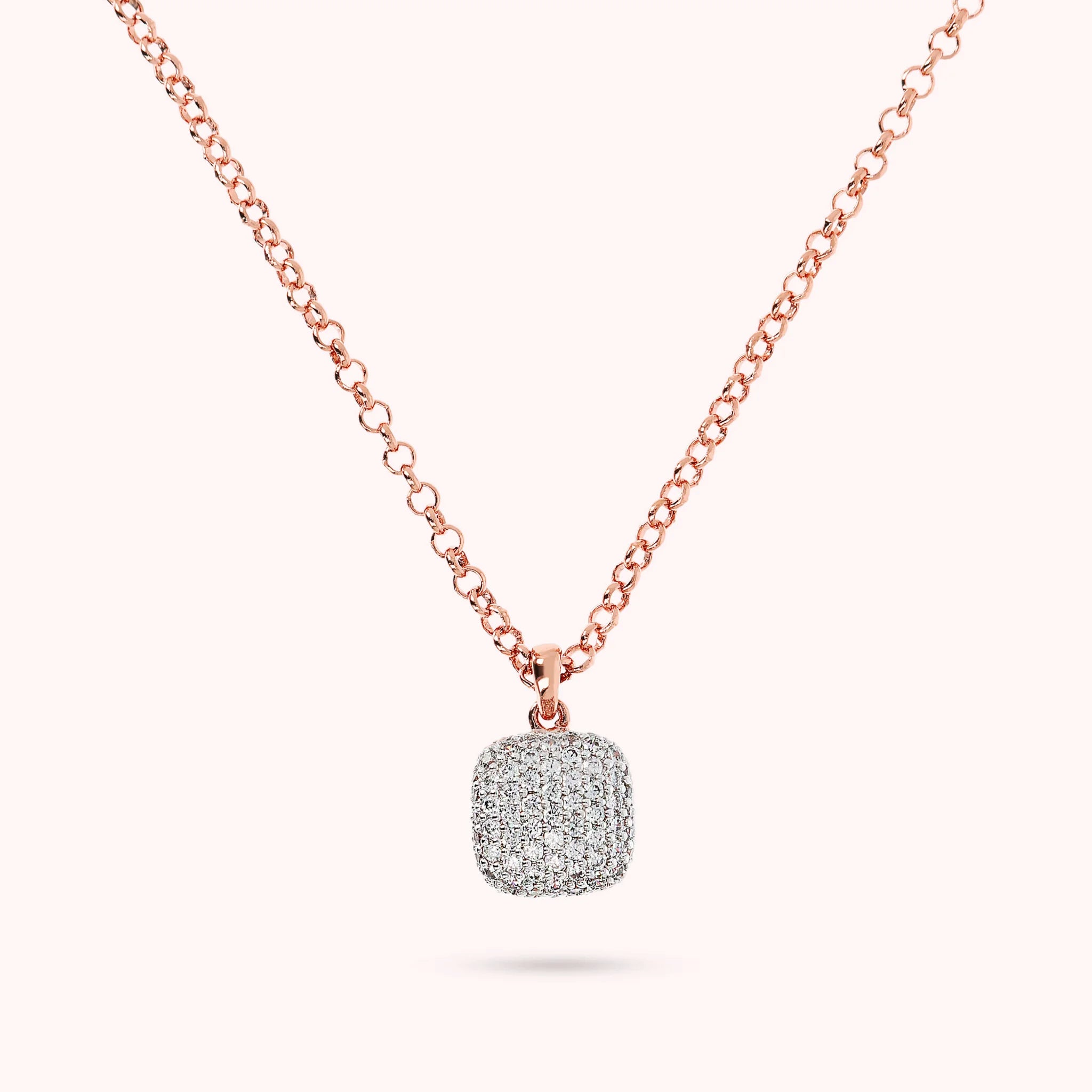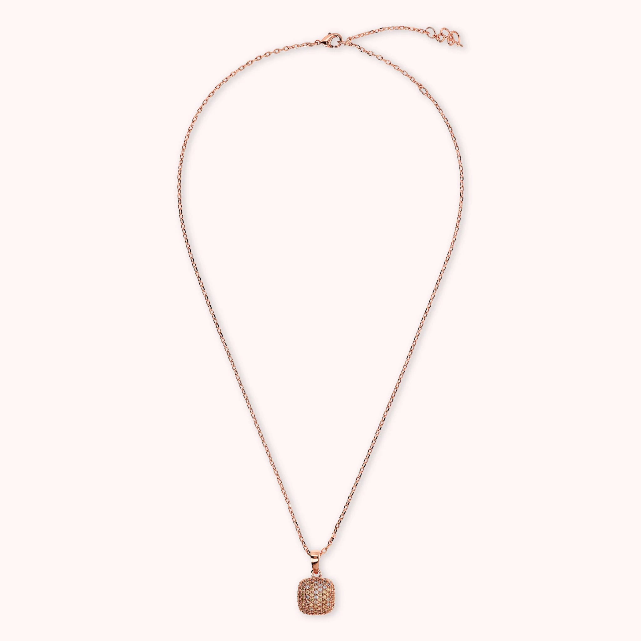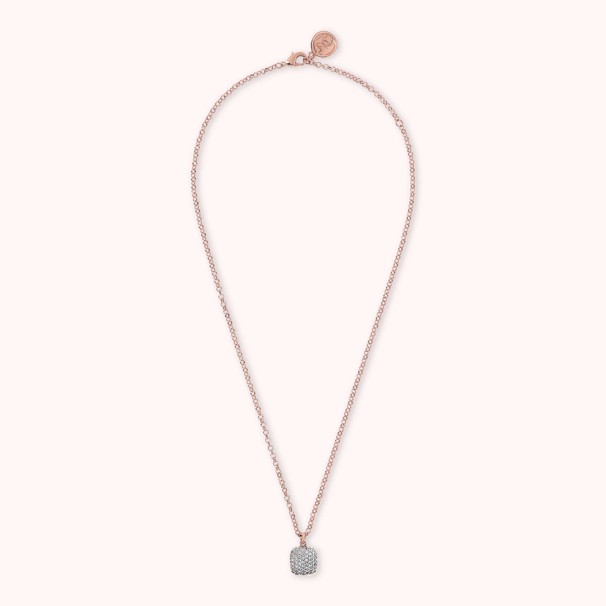 Bronzallure necklace made of Golden Rosé alloy, 18kt rose gold plated, with a square pendant (12x12 mm) with luminous cubic zirconia pavé; lobster clasp closure.