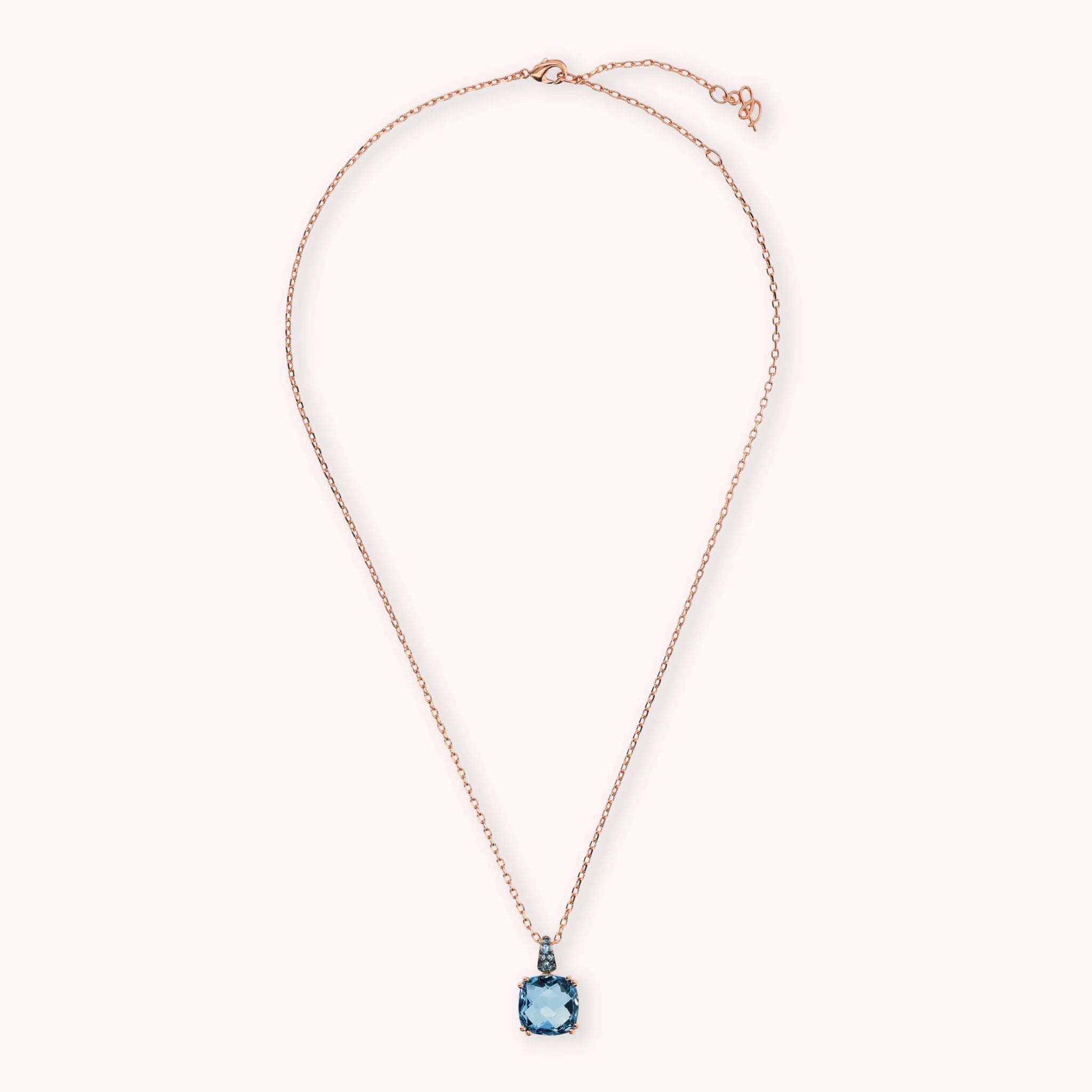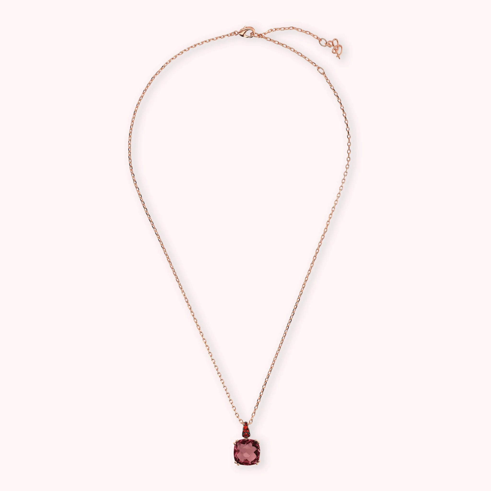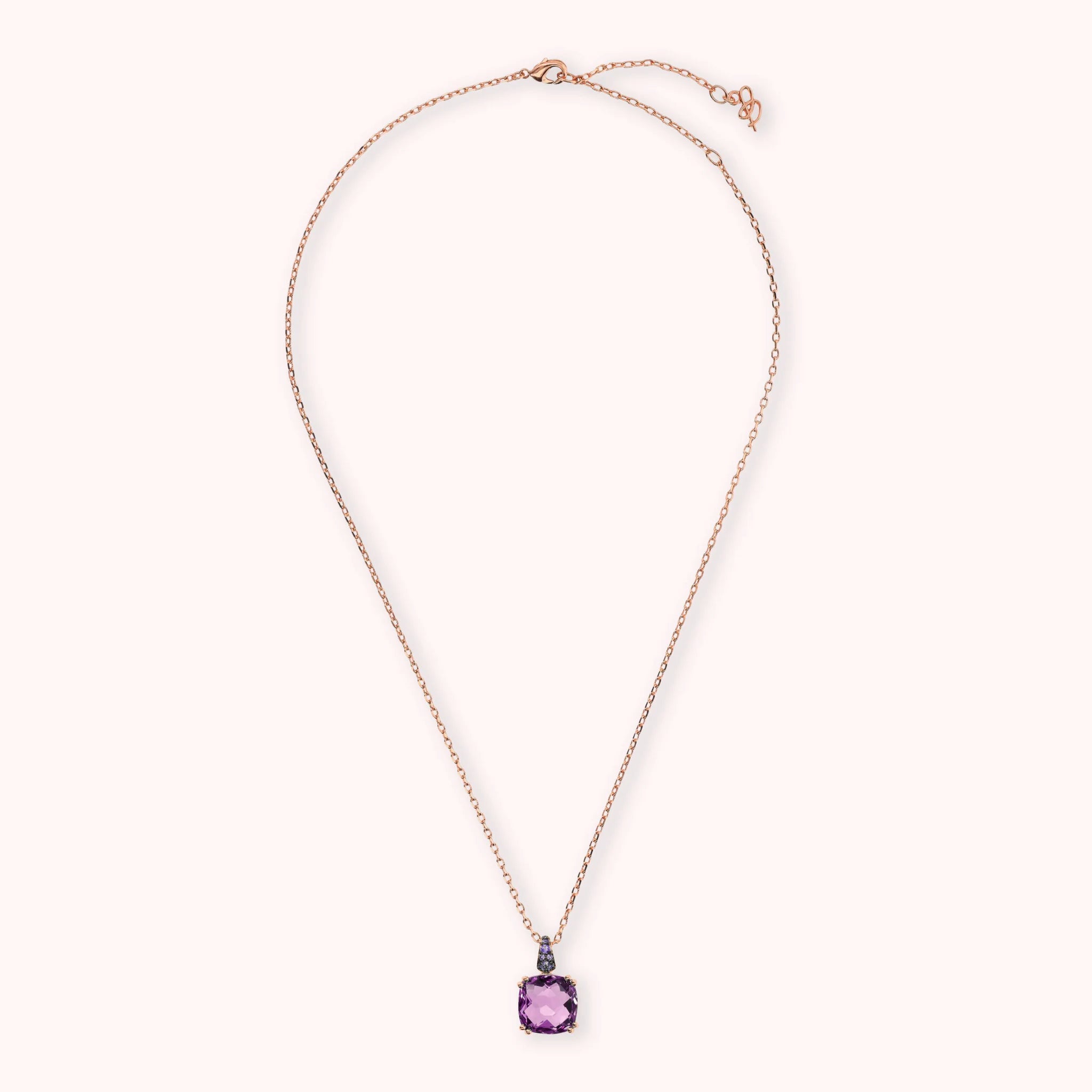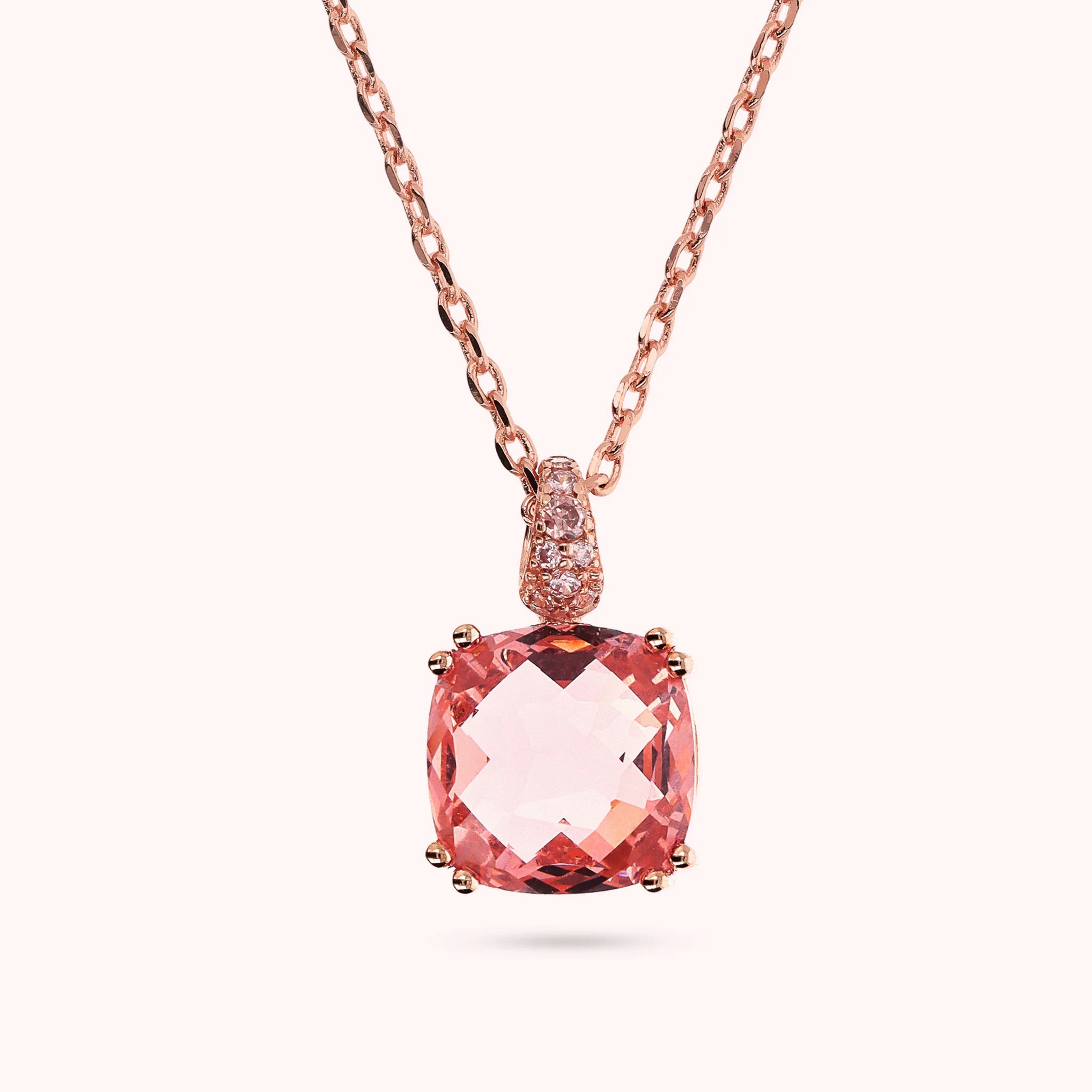 Bronzallure necklace made on a Golden Rosé base, 18kt rose gold plated, with rolo chain embellished with a pavé counter-link and a square gem prism pendant (12x12 mm); Lobster clasp closure with extender.