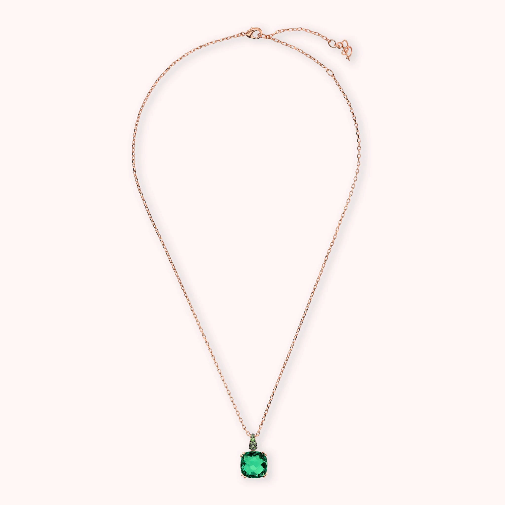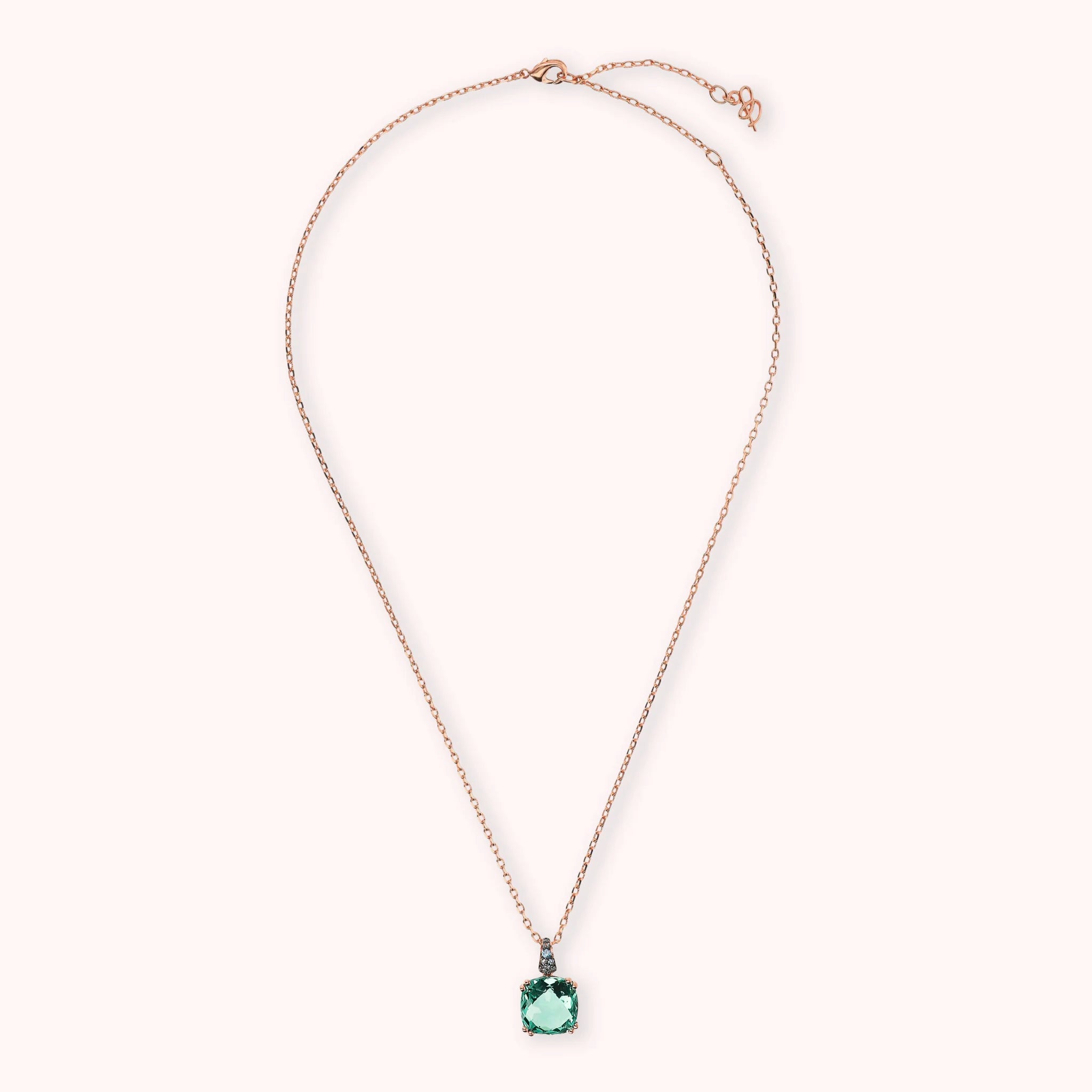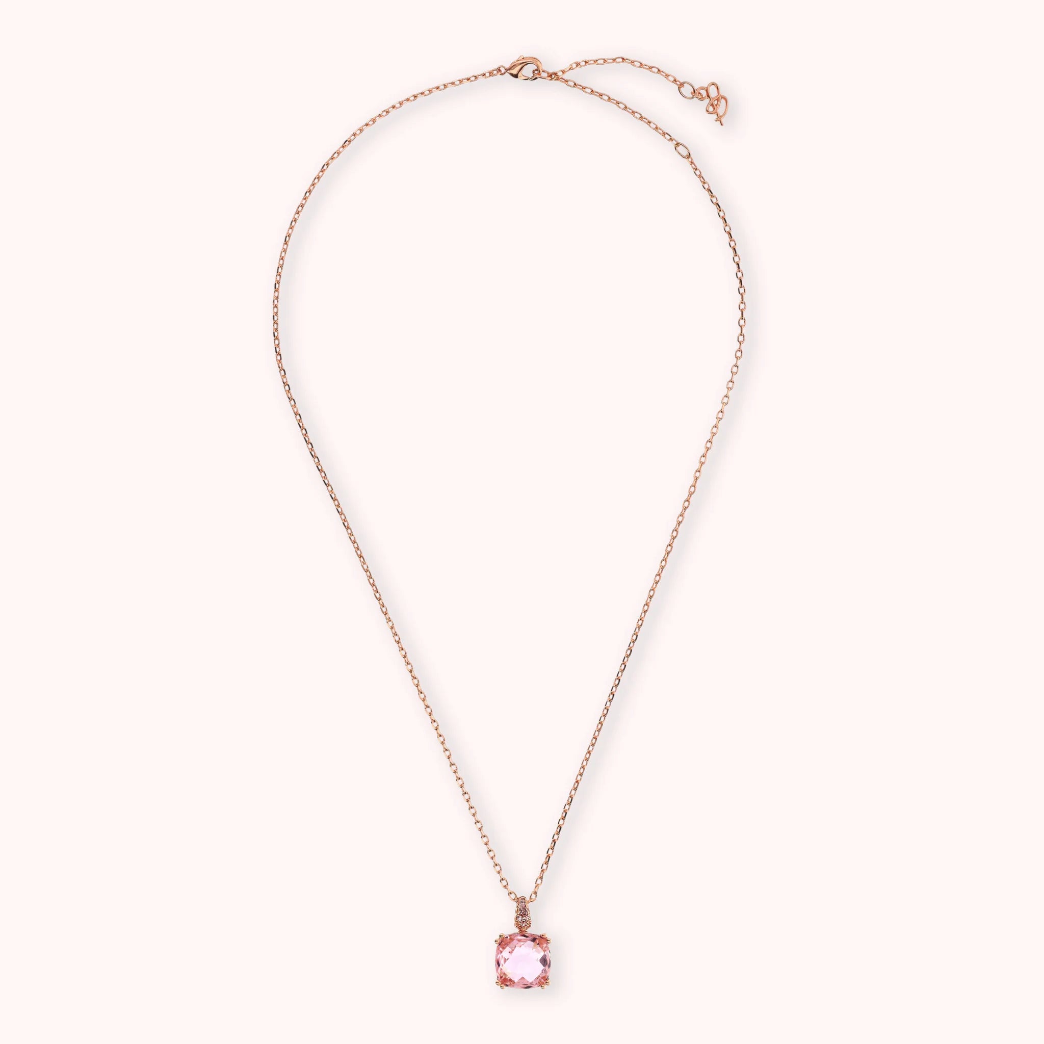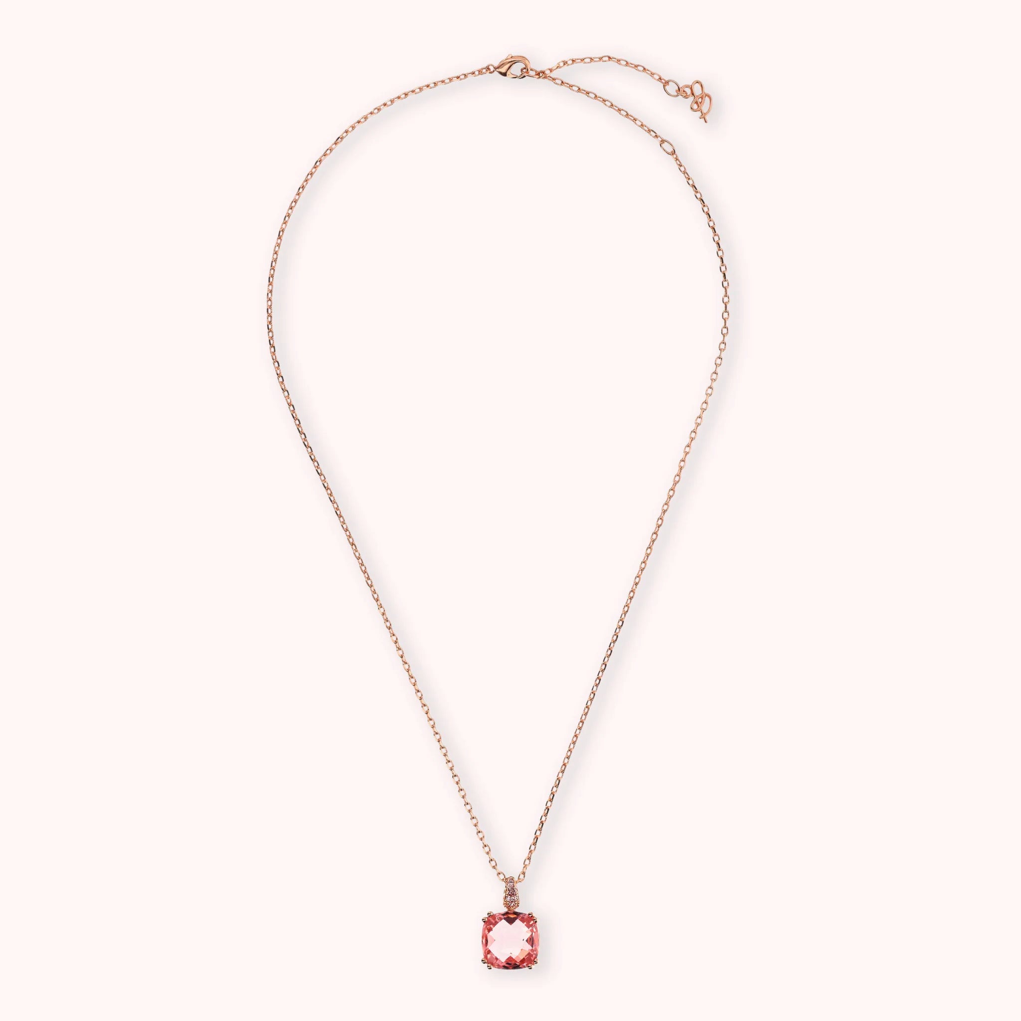 Bronzallure necklace made on a Golden Rosé base, 18kt rose gold plated, with rolo chain embellished with a pavé counter-link and a square gem prism pendant (12x12 mm); Lobster clasp closure with extender.
