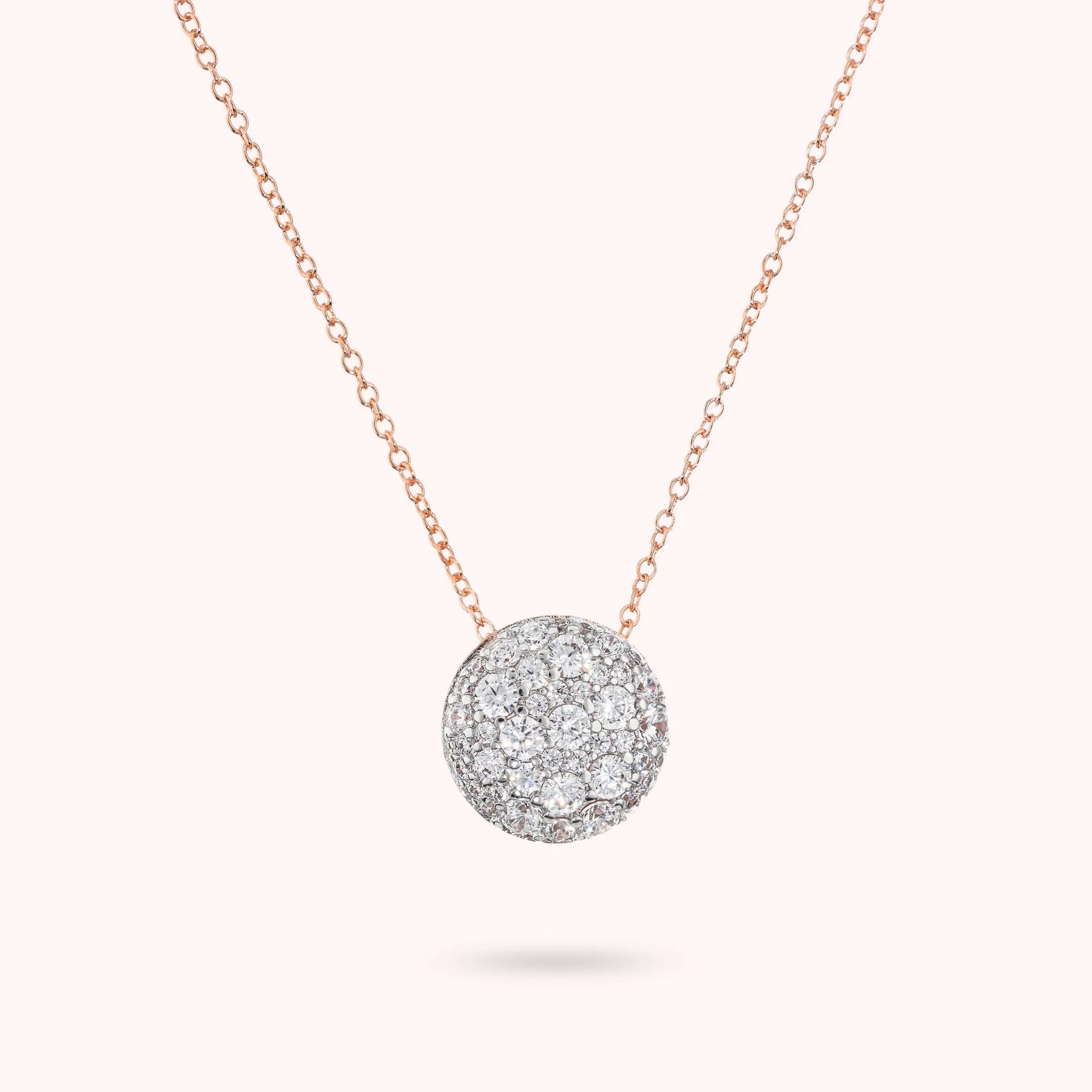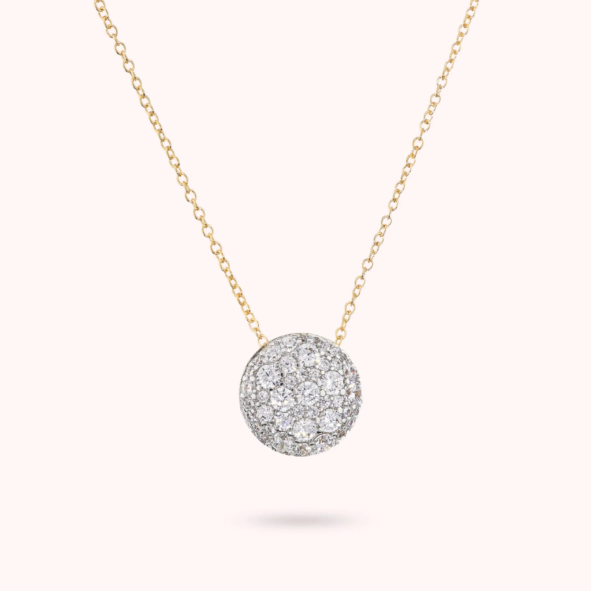 Necklace Button Pendant in Cubic Zirconia Pavé