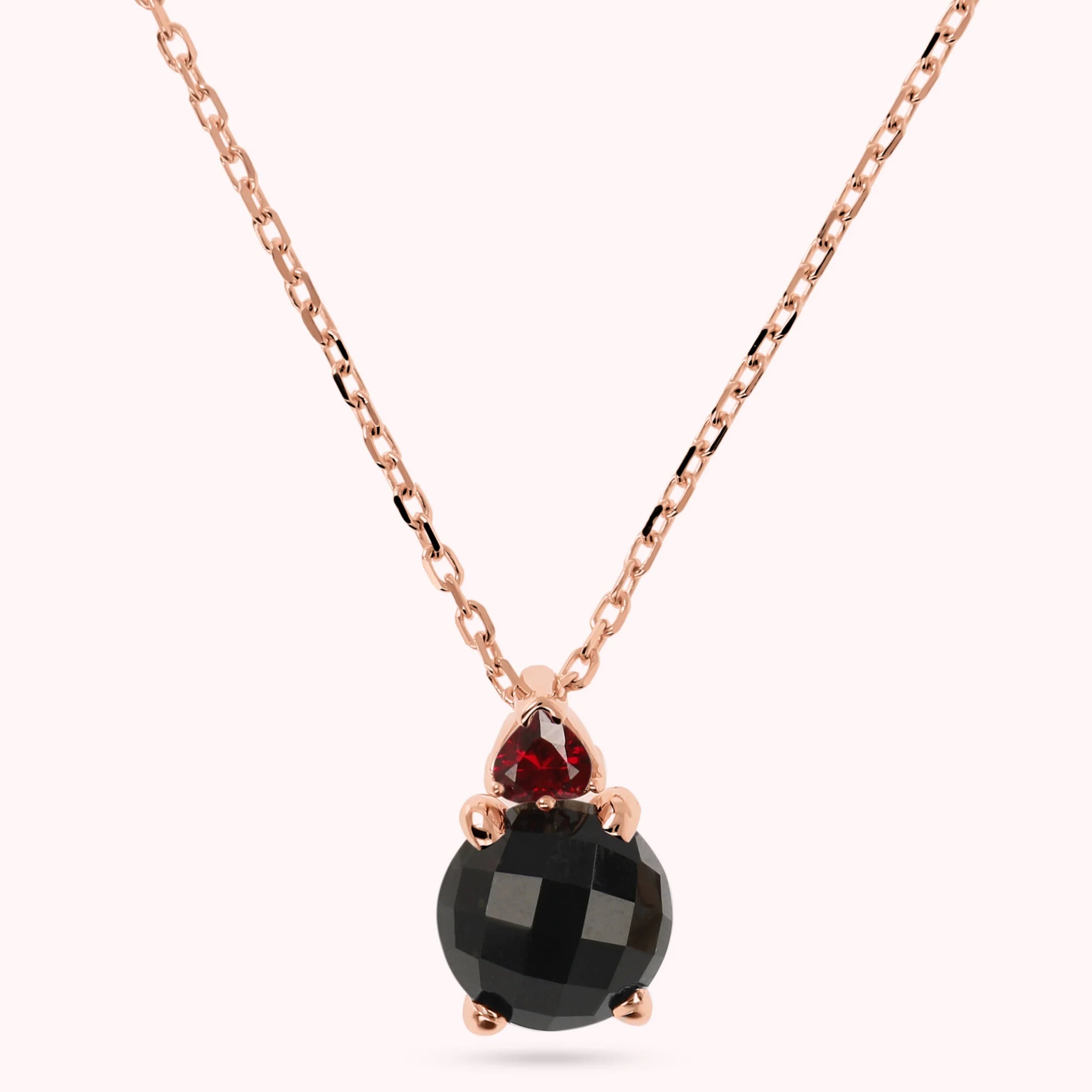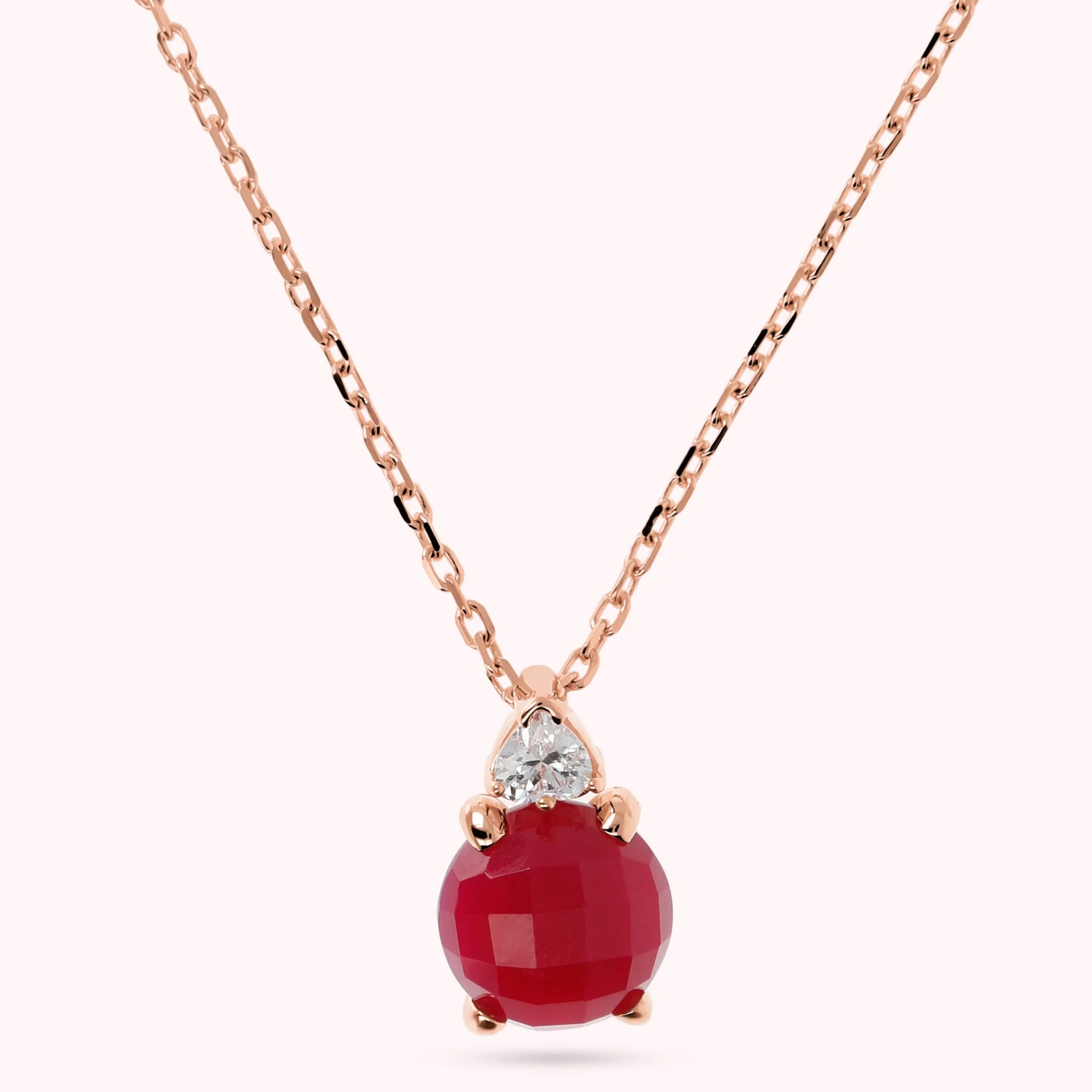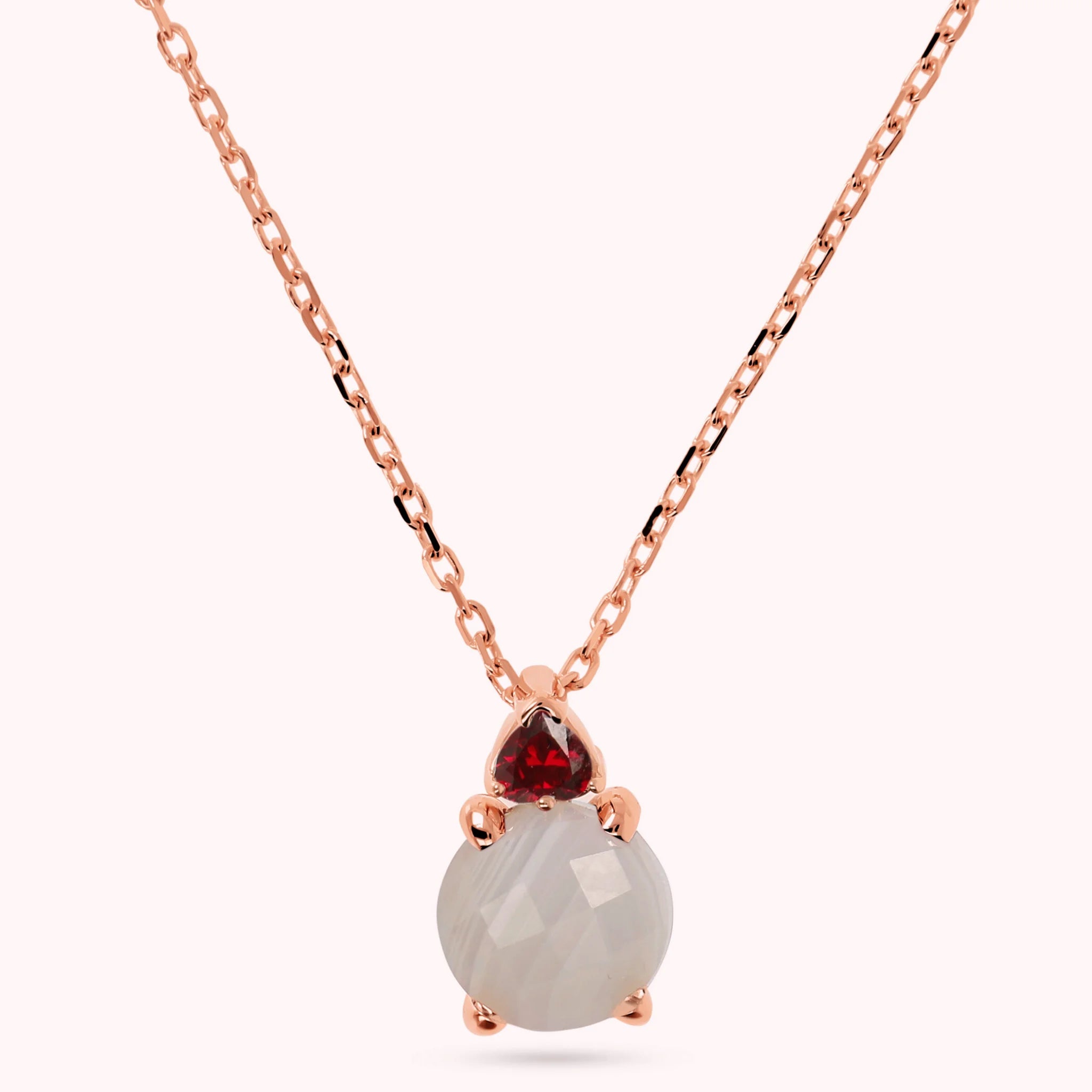 Necklace with Natural Stone Pendant and Cubic Zirconia Heart