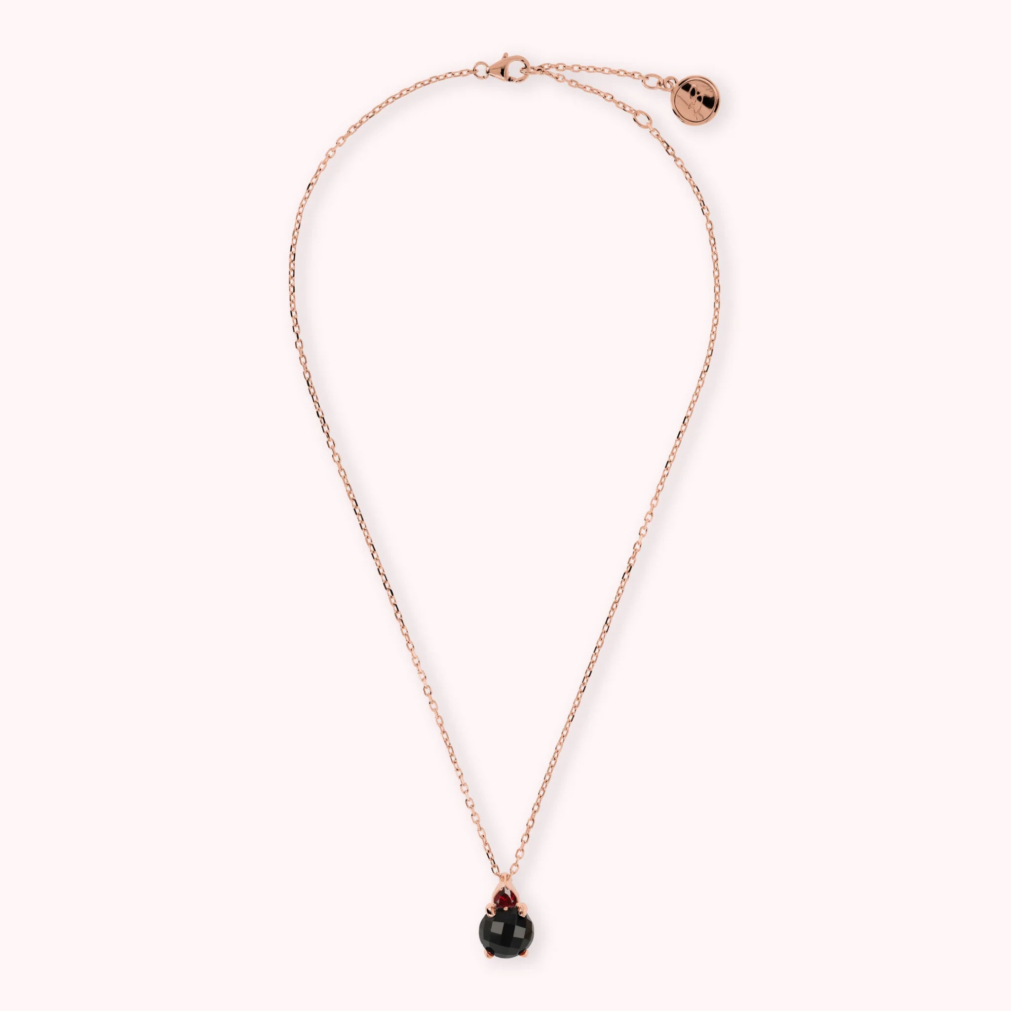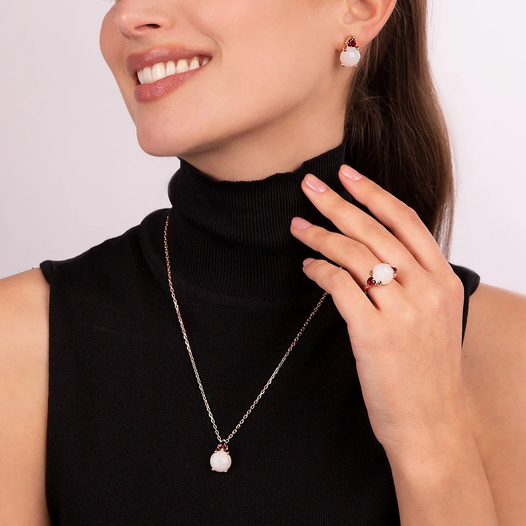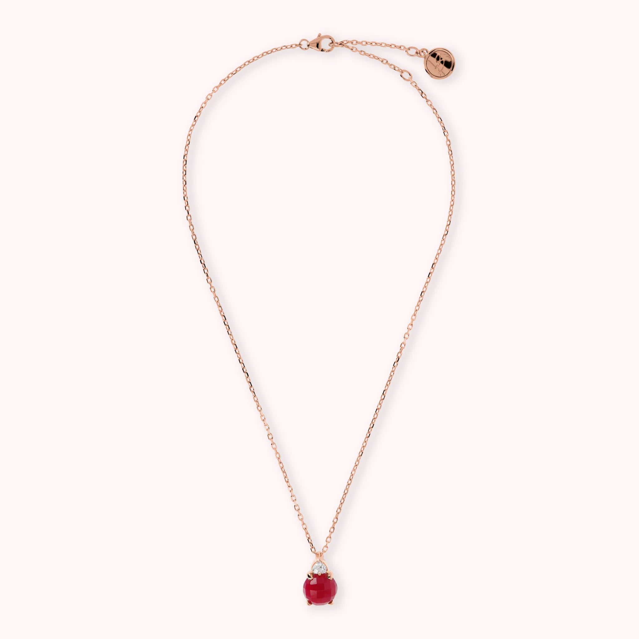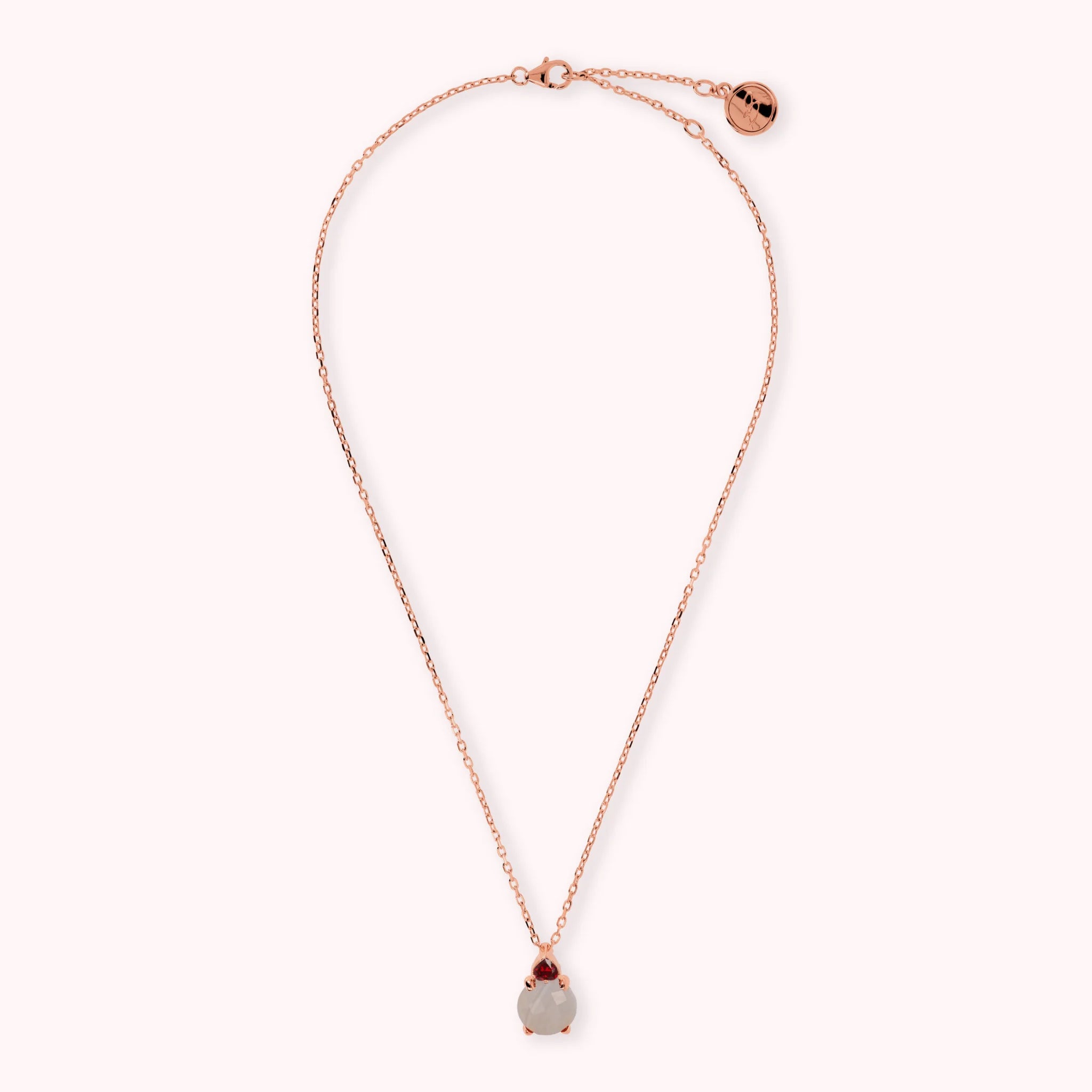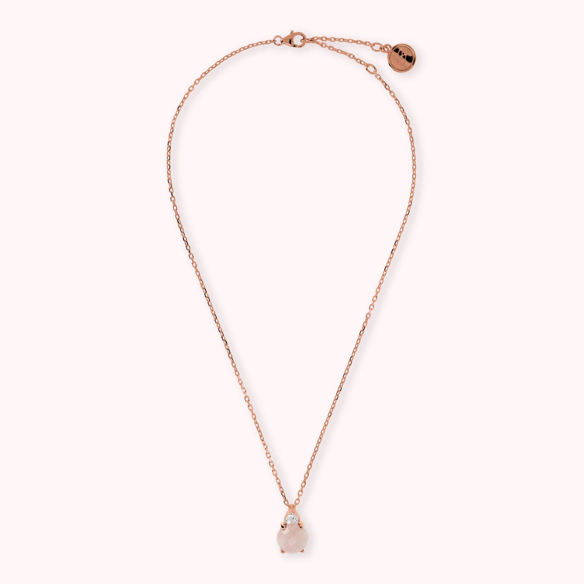 Bronzallure necklace made of Golden Rosé alloy, 18kt rose gold plated, with elongated forzatina chain and pendant embellished with a natural stone with a rounded shape and a cubic zirconia heart, luminous quality; lobster clasp closure and adjustable length by three rings (41cm / 43cm / 47cm).