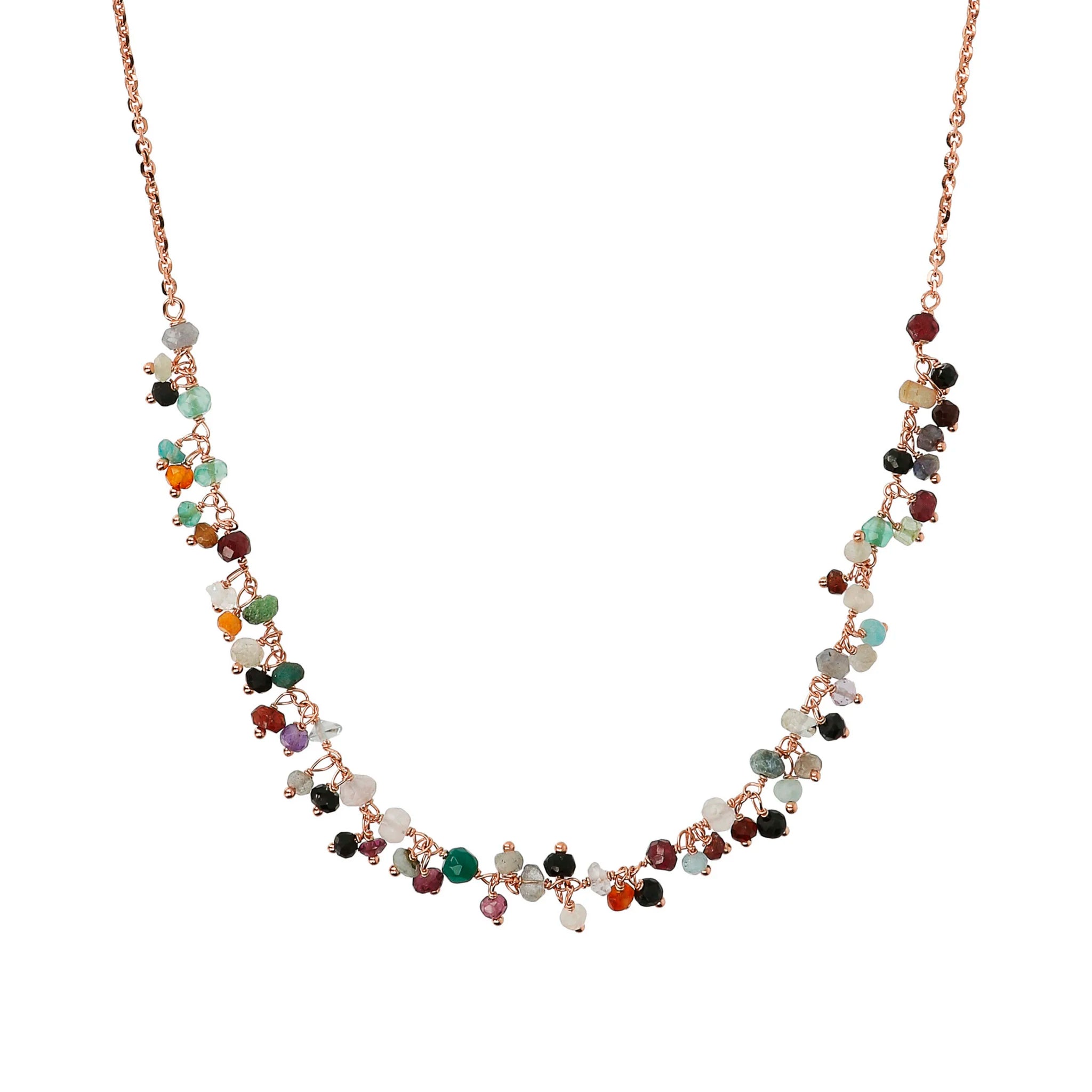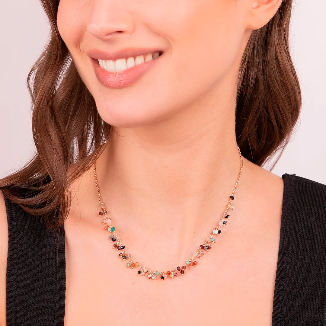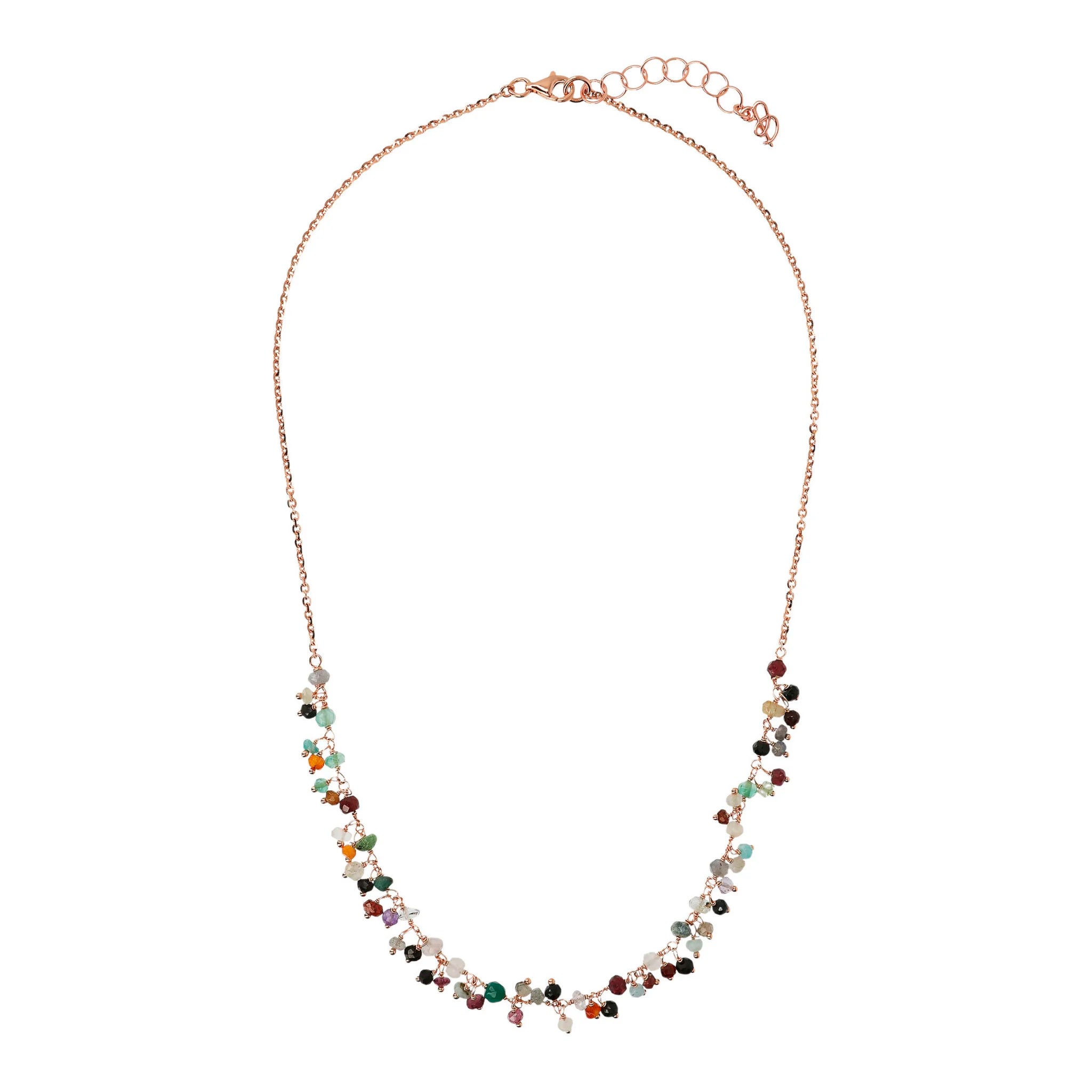 Bronzallure necklace made on a Golden Rosé base with 18kt rose gold plated rolo chain and embellished with small natural stones. Lobster clasp with 2.5cm extender.