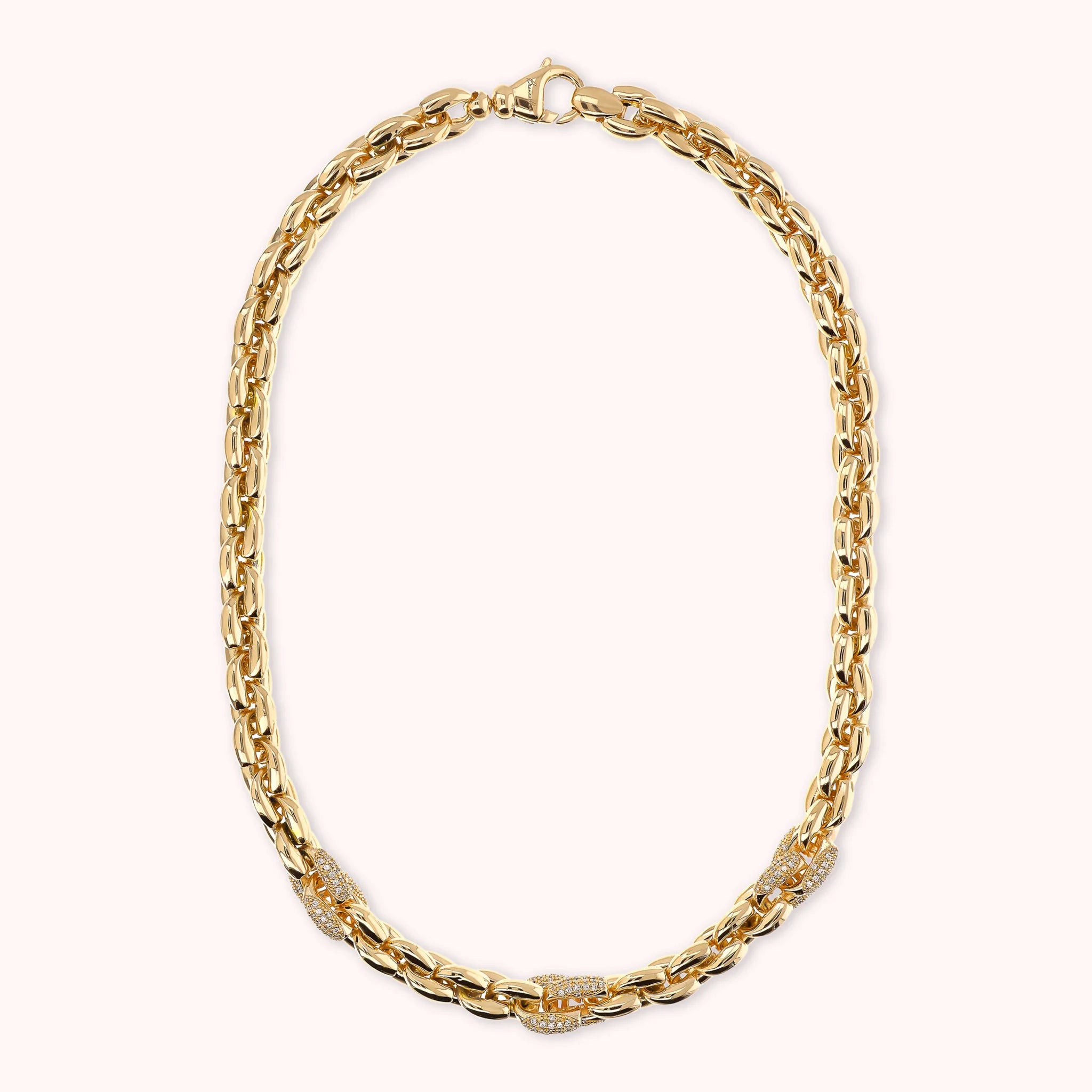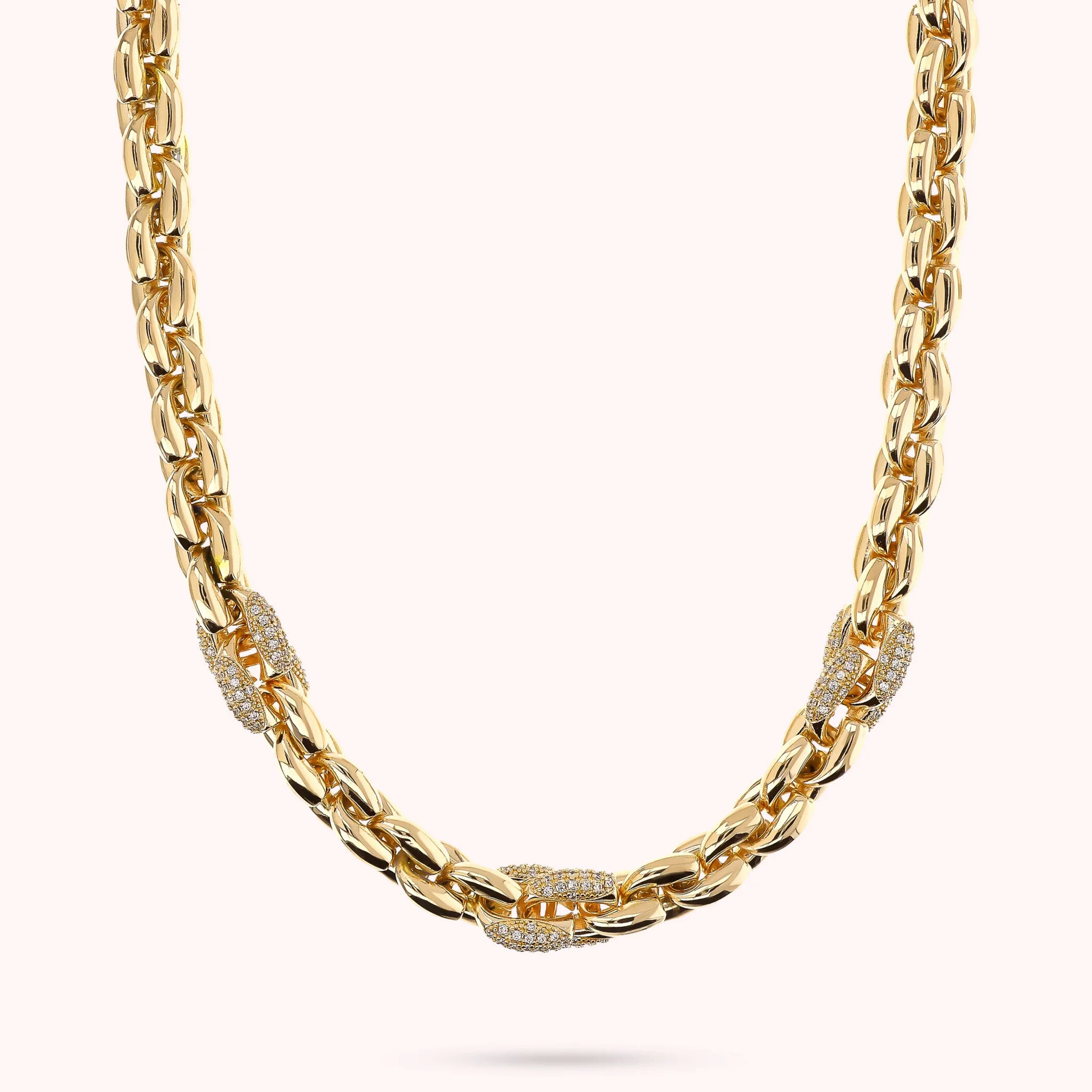 Bronzallure choker necklace made of Golden Rosé alloy, 18kt yellow gold plated, with geometric mesh alternating with cubic zirconia pavé elements, luminous quality. Length 44 cm. Lobster clasp closure.