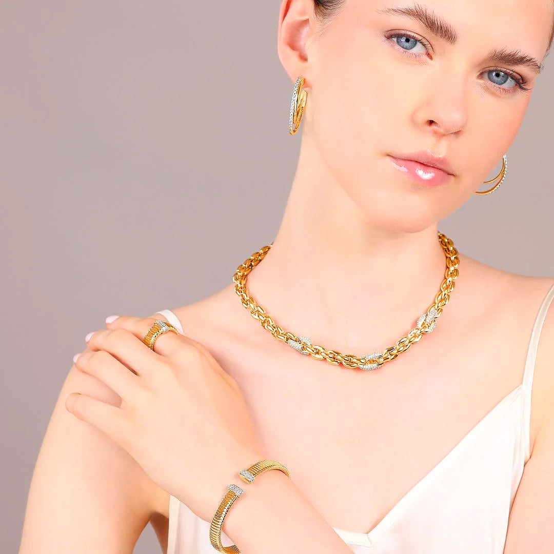 Golden Geometric Mesh Choker Necklace with Cubic Zirconia Pavé Elements