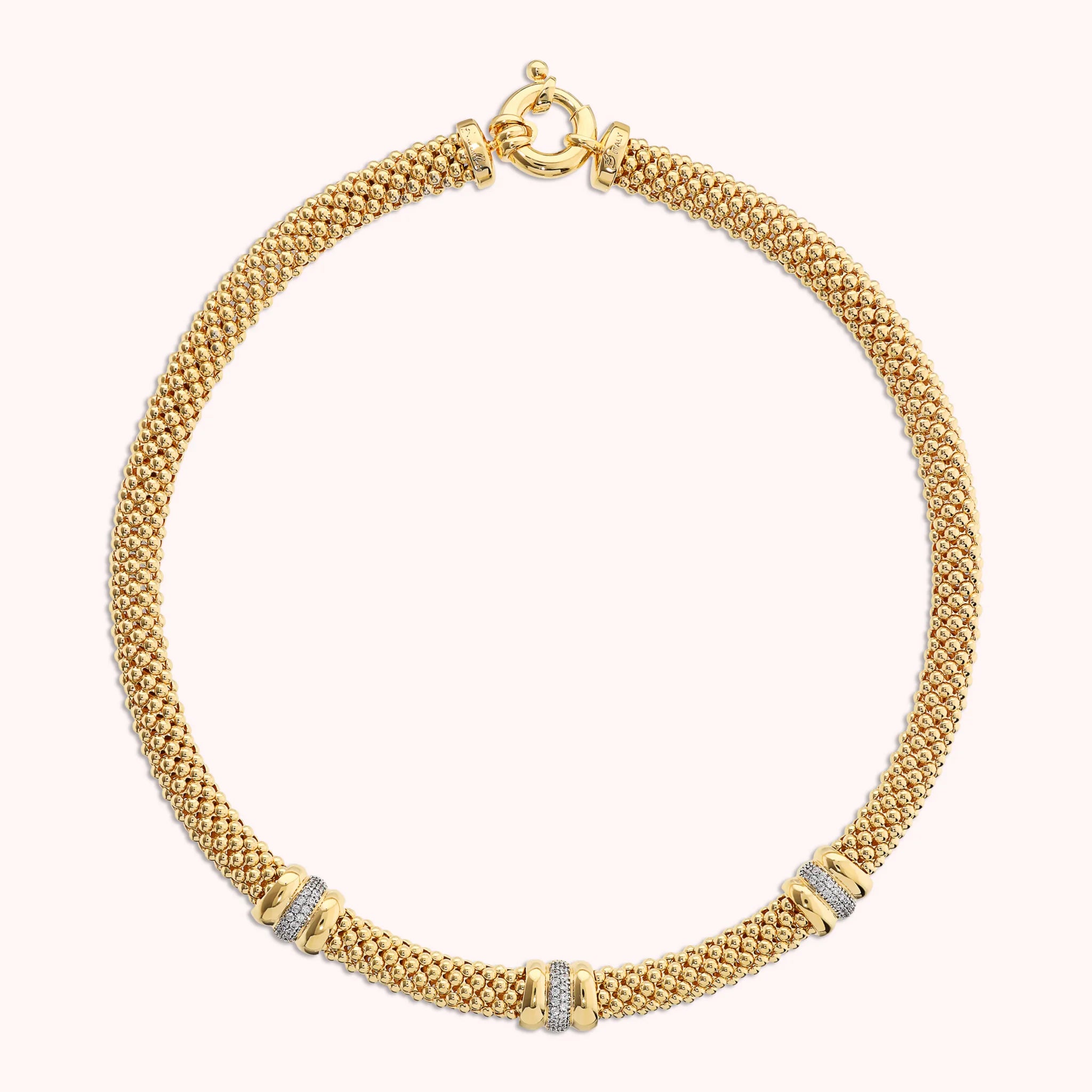 Golden Popcorn Chain Necklace with Pavé Cubic Zirconia Rondelles