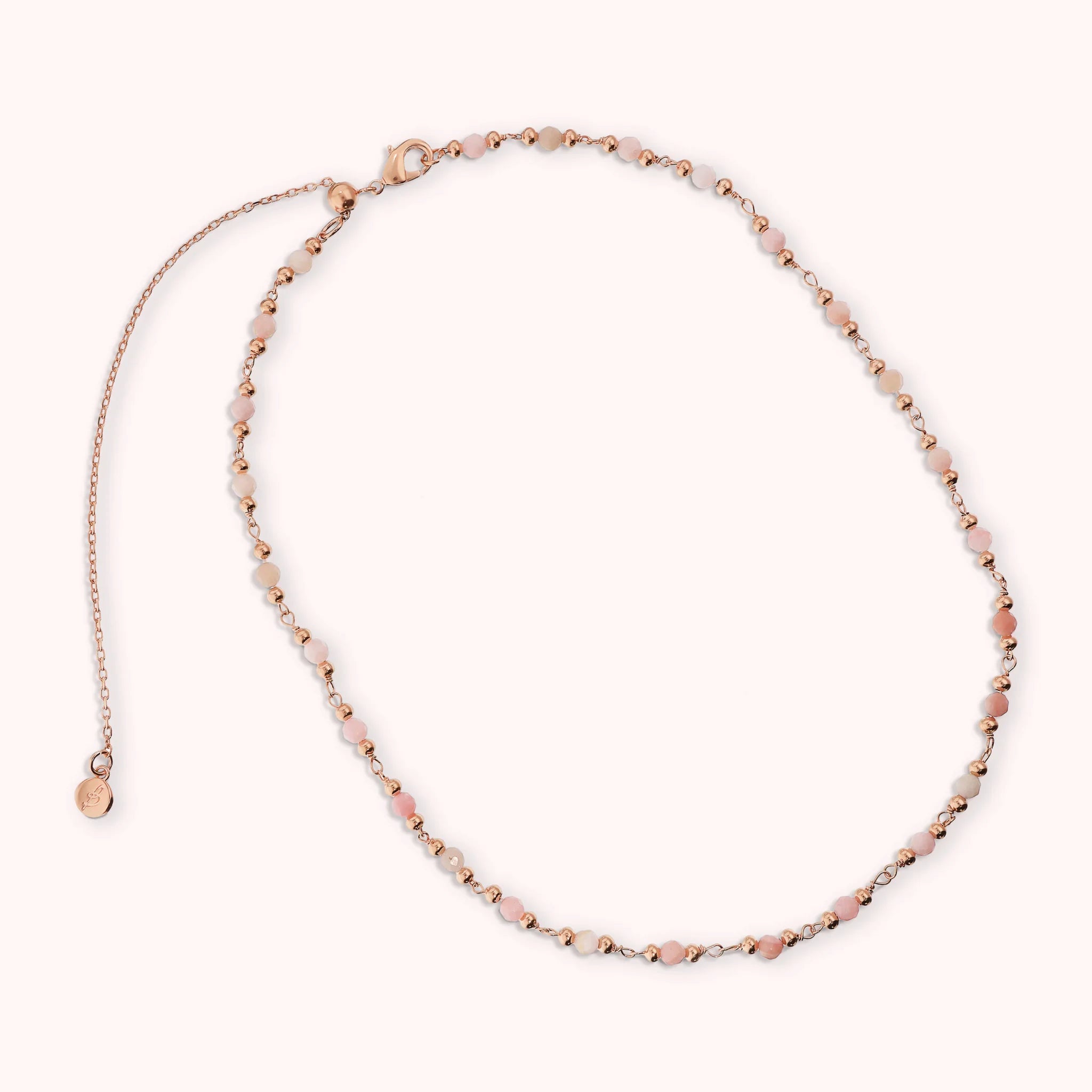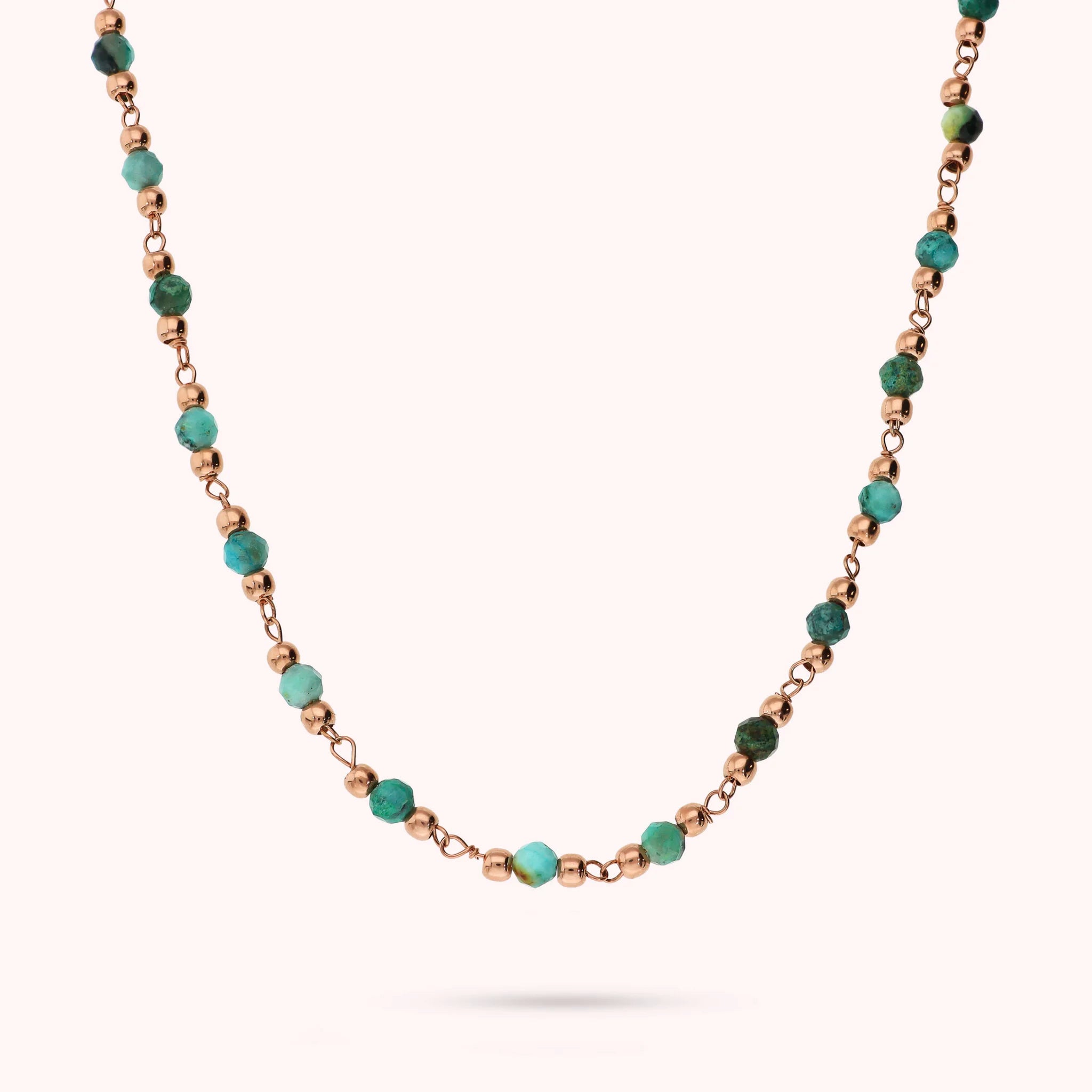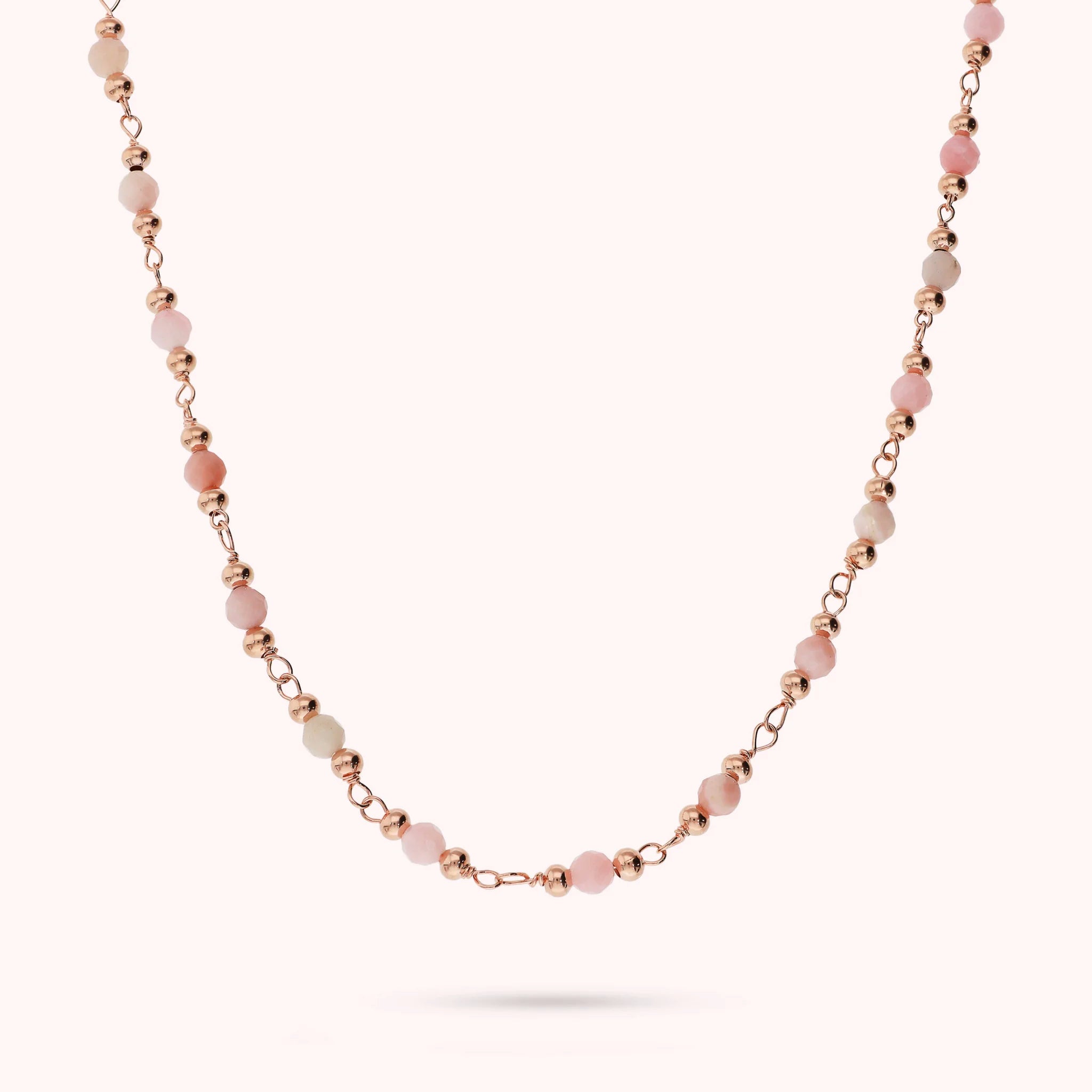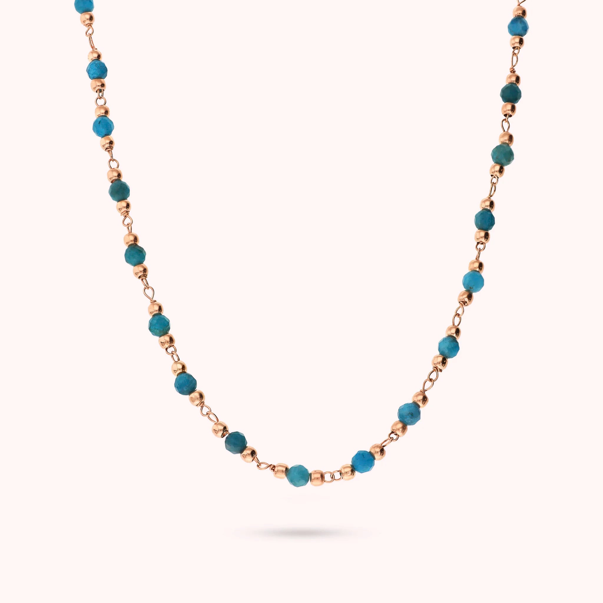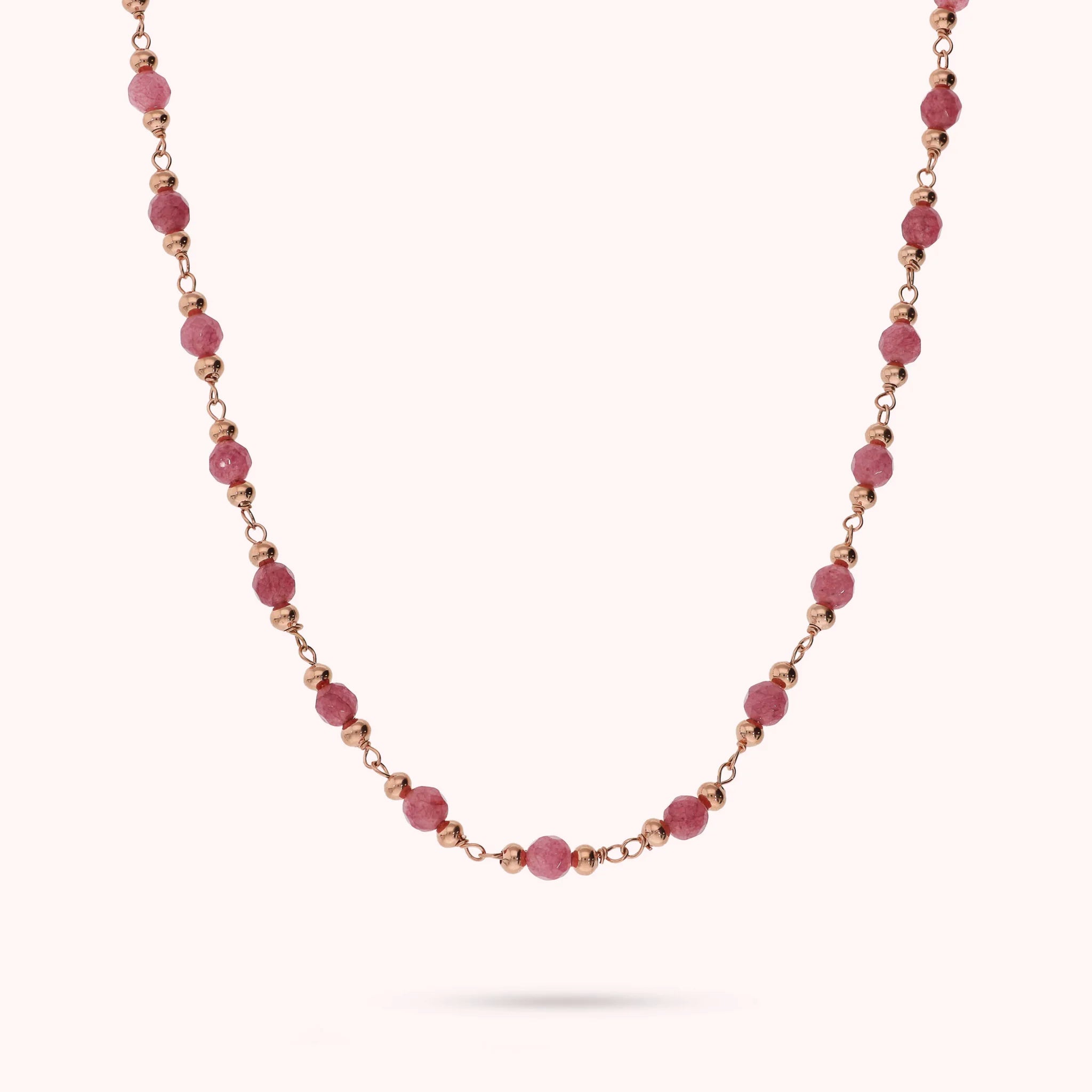 "Rosary choker necklace Bronzallure made of Golden Rosé alloy, plated with 18kt Rose Gold, with faceted natural stones (4 mm) alternating with small shiny beads (3 mm). Length 16.5+4 cm extension. Lobster clasp."