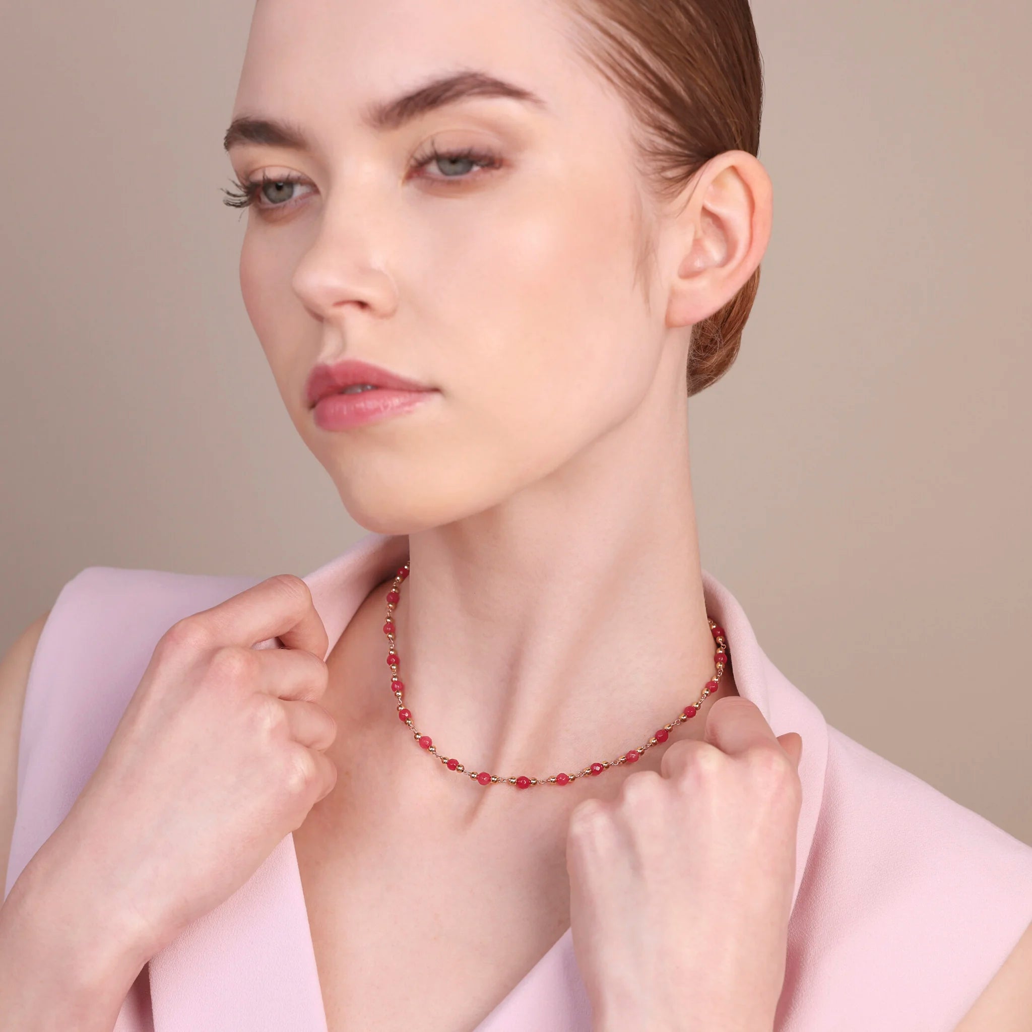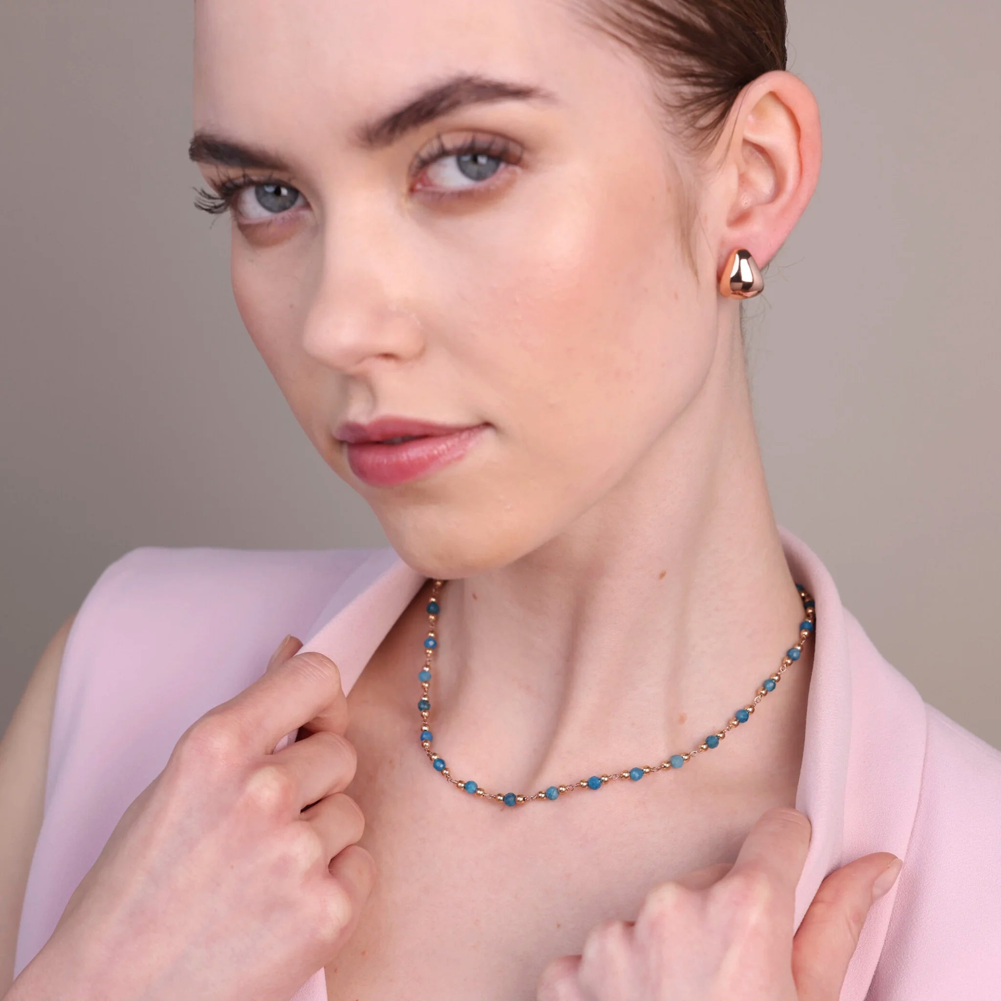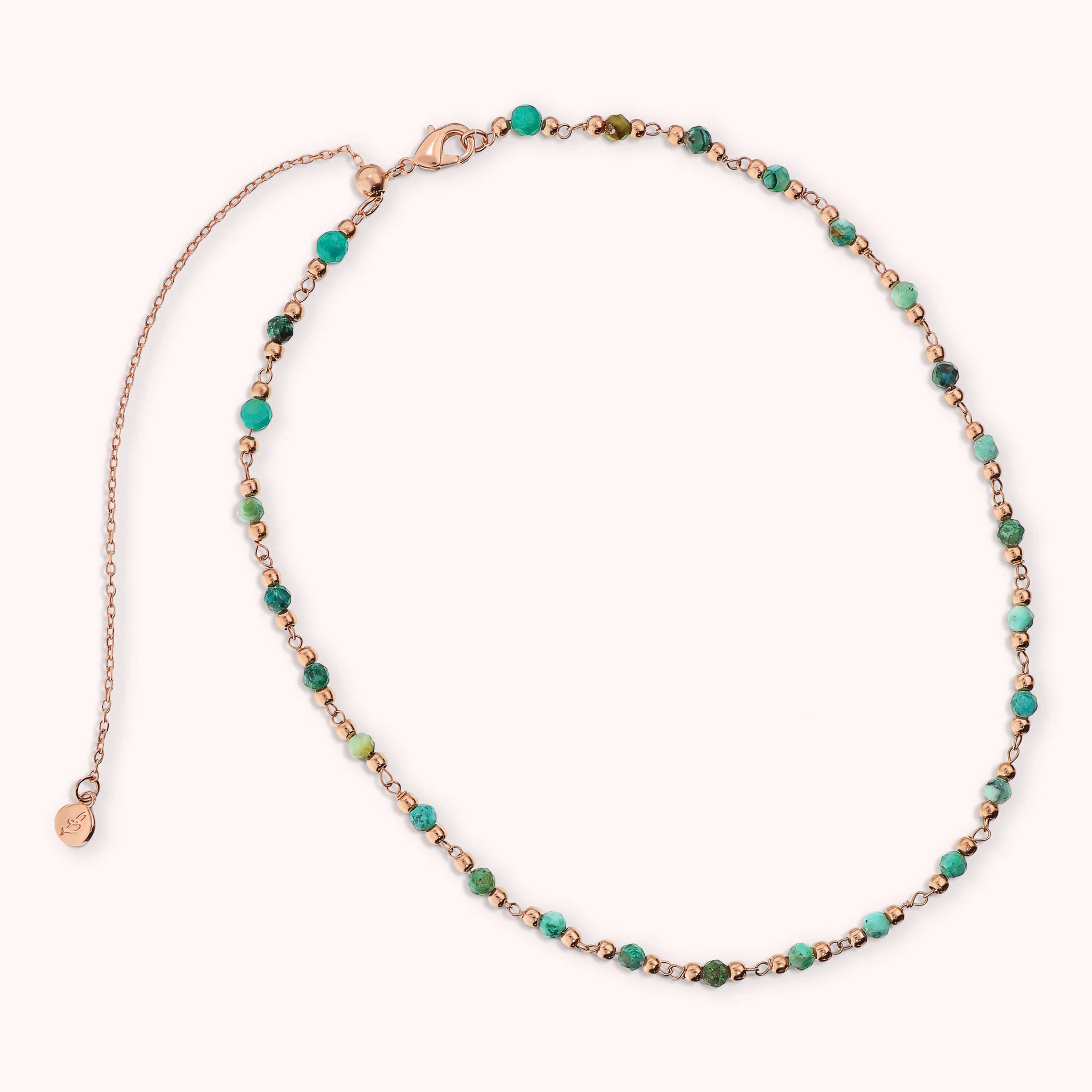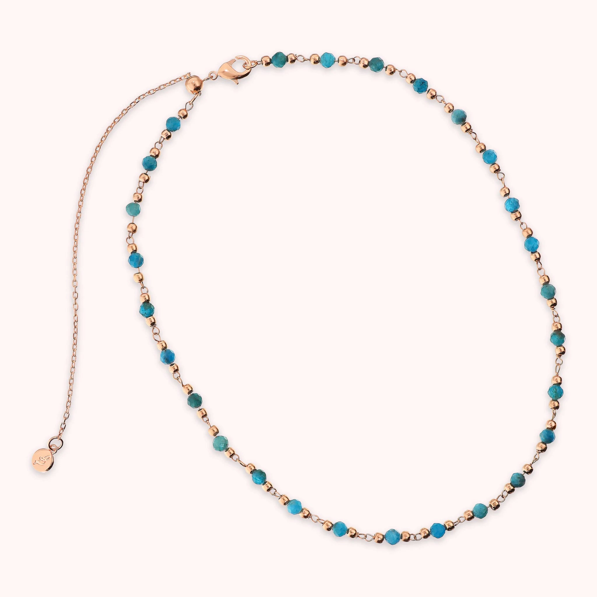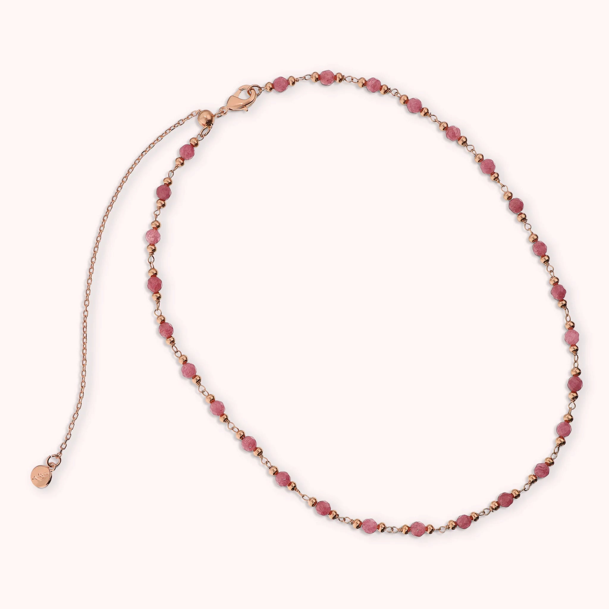 "Rosary choker necklace Bronzallure made of Golden Rosé alloy, plated with 18kt Rose Gold, with faceted natural stones (4 mm) alternating with small shiny beads (3 mm). Length 16.5+4 cm extension. Lobster clasp."