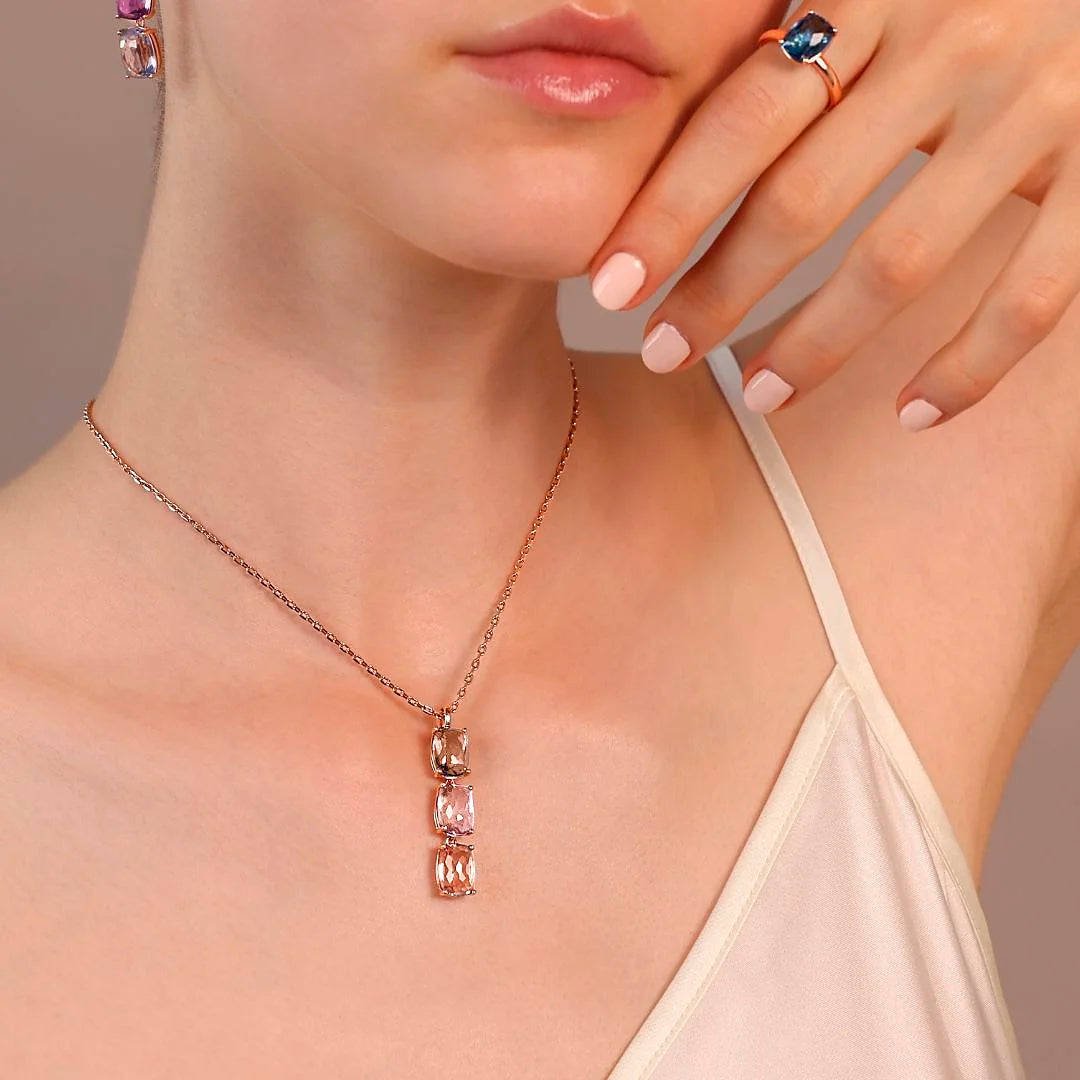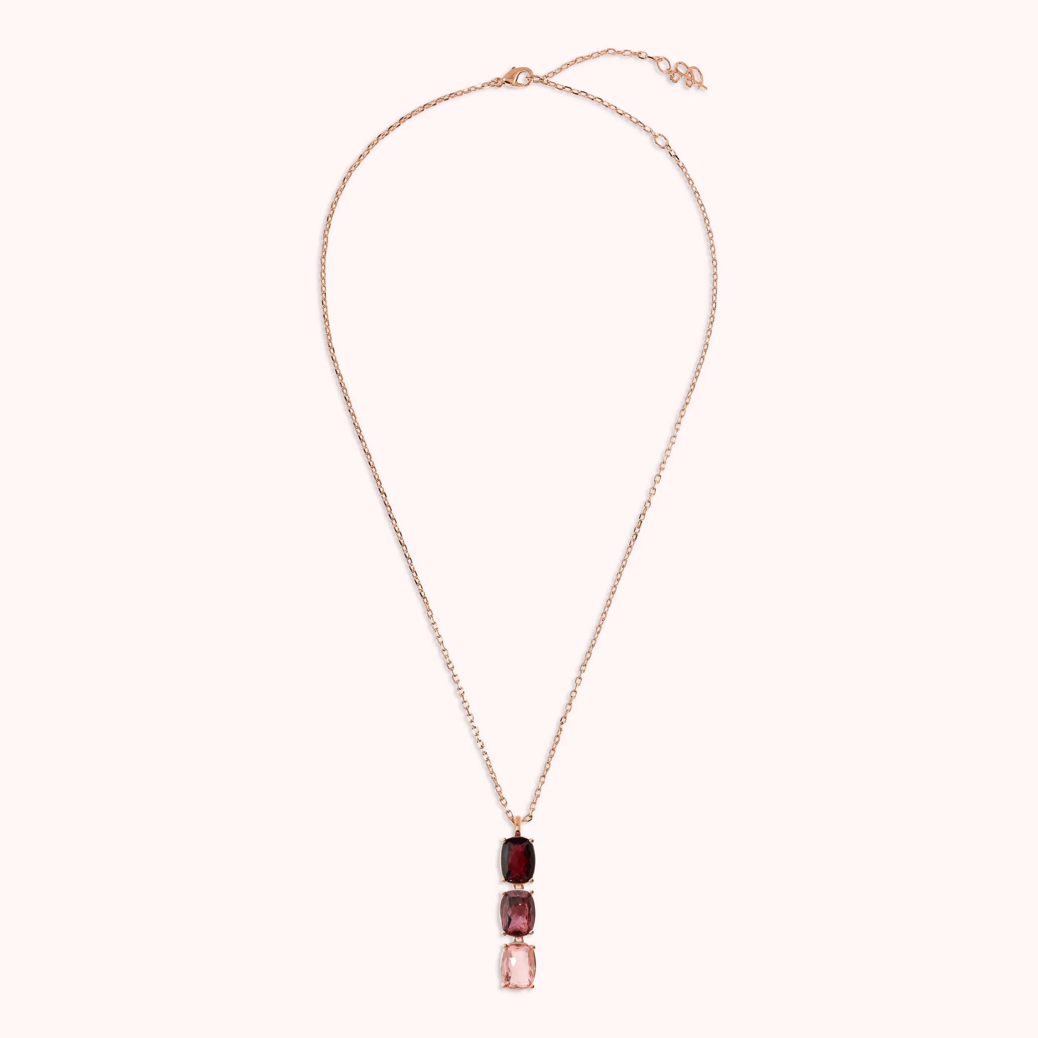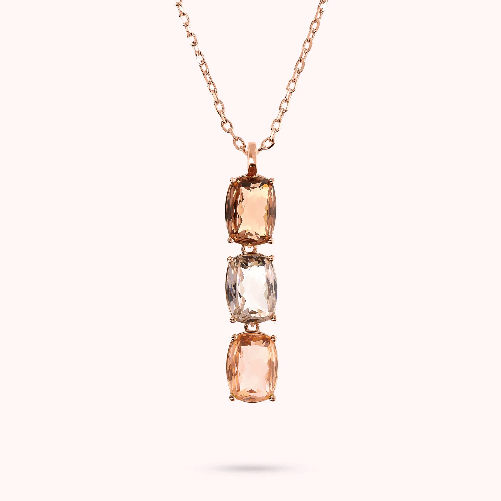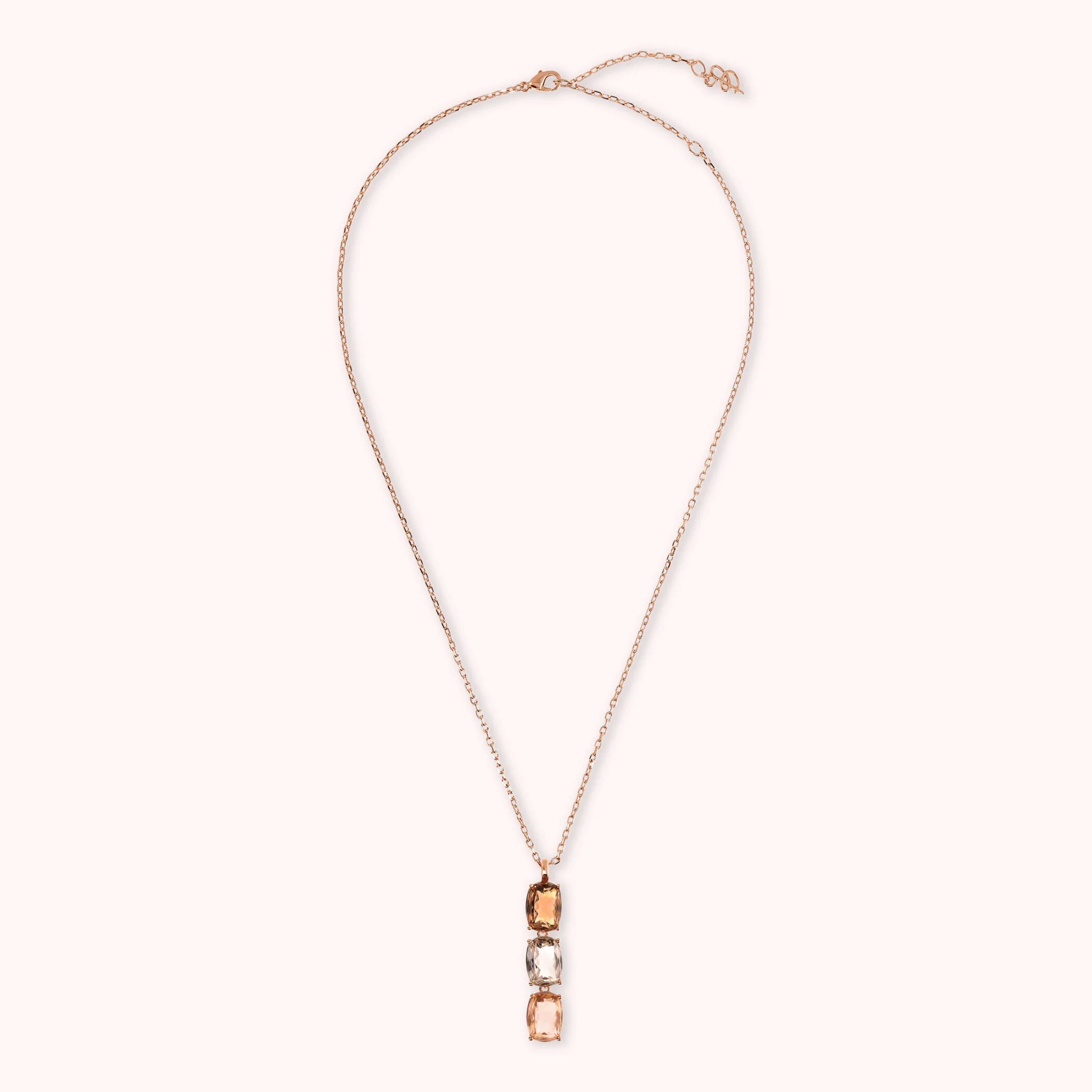 Necklace made of Golden Rosé alloy, 18kt rose gold plated, embellished with a pendant with rectangular gem prism stones (8x11 mm) with a mosaic cut. Lobster clasp closure with extender.