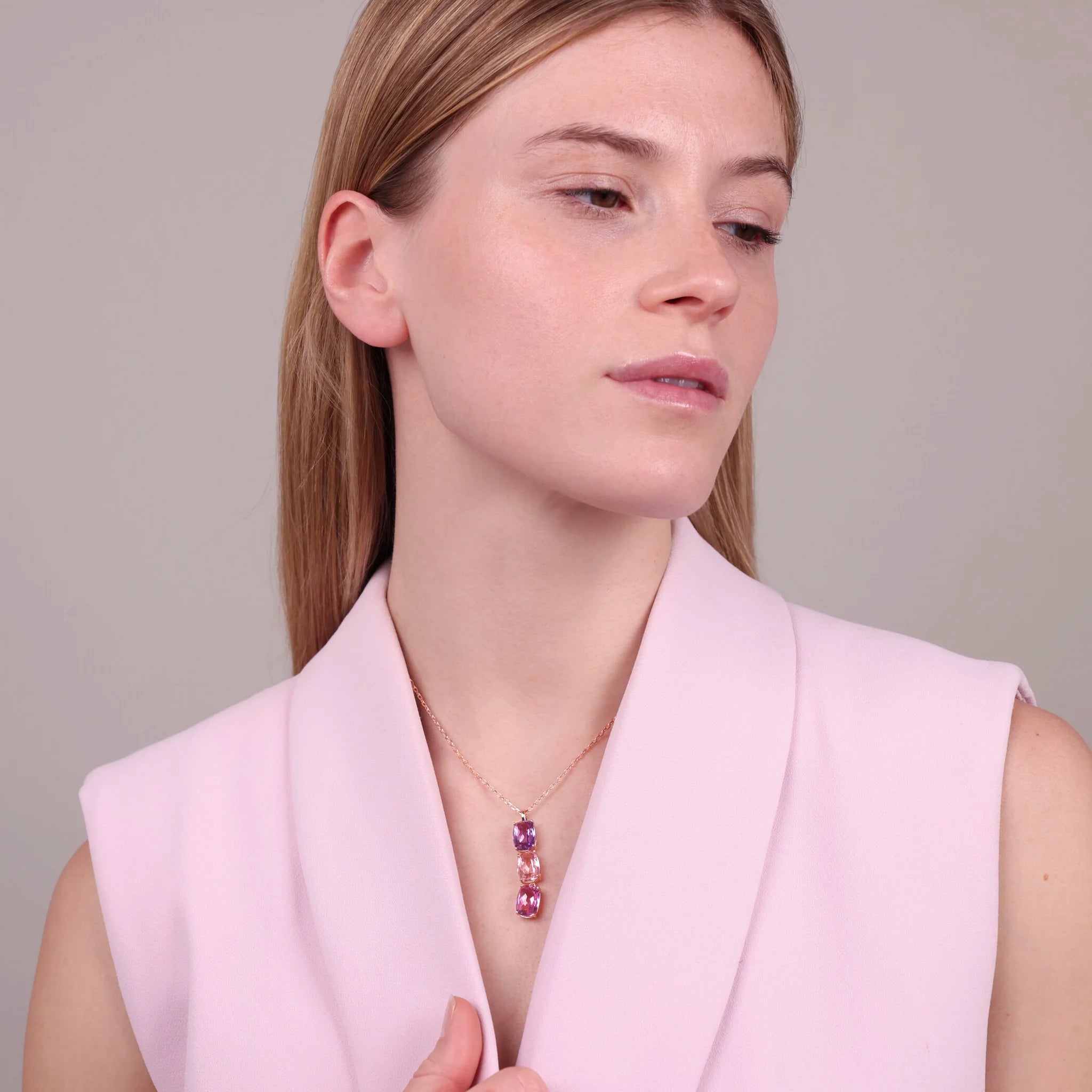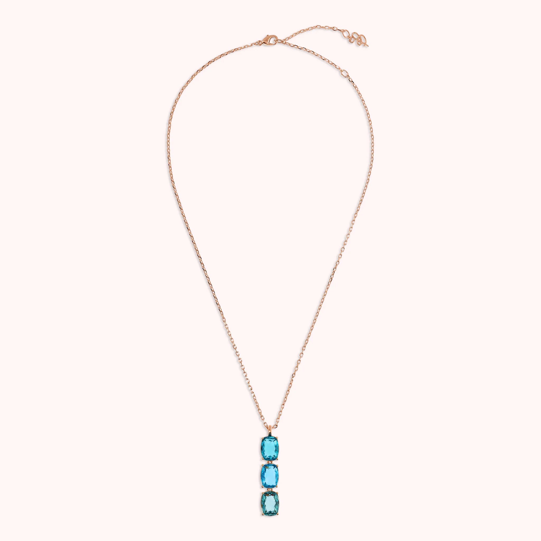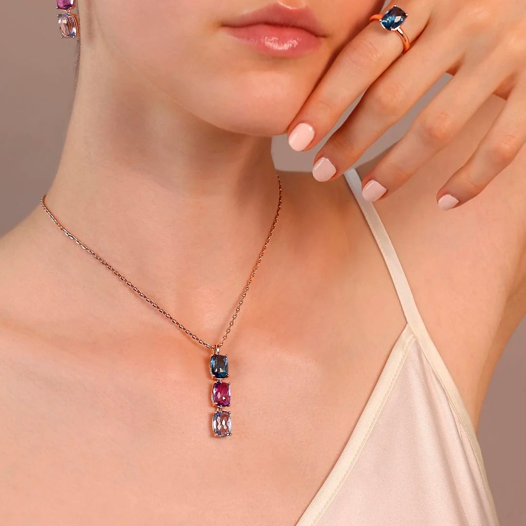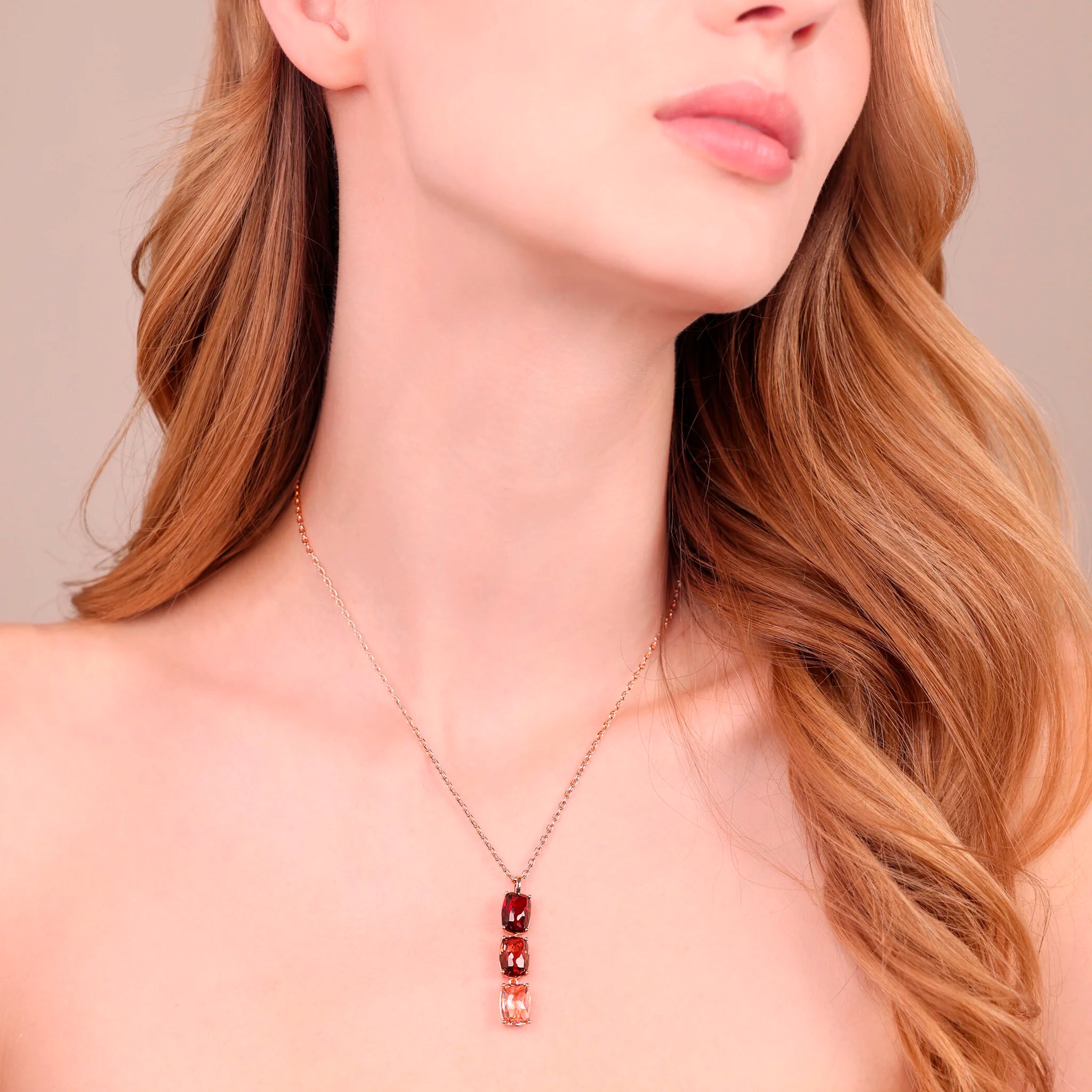 Necklace made of Golden Rosé alloy, 18kt rose gold plated, embellished with a pendant with rectangular gem prism stones (8x11 mm) with a mosaic cut. Lobster clasp closure with extender.