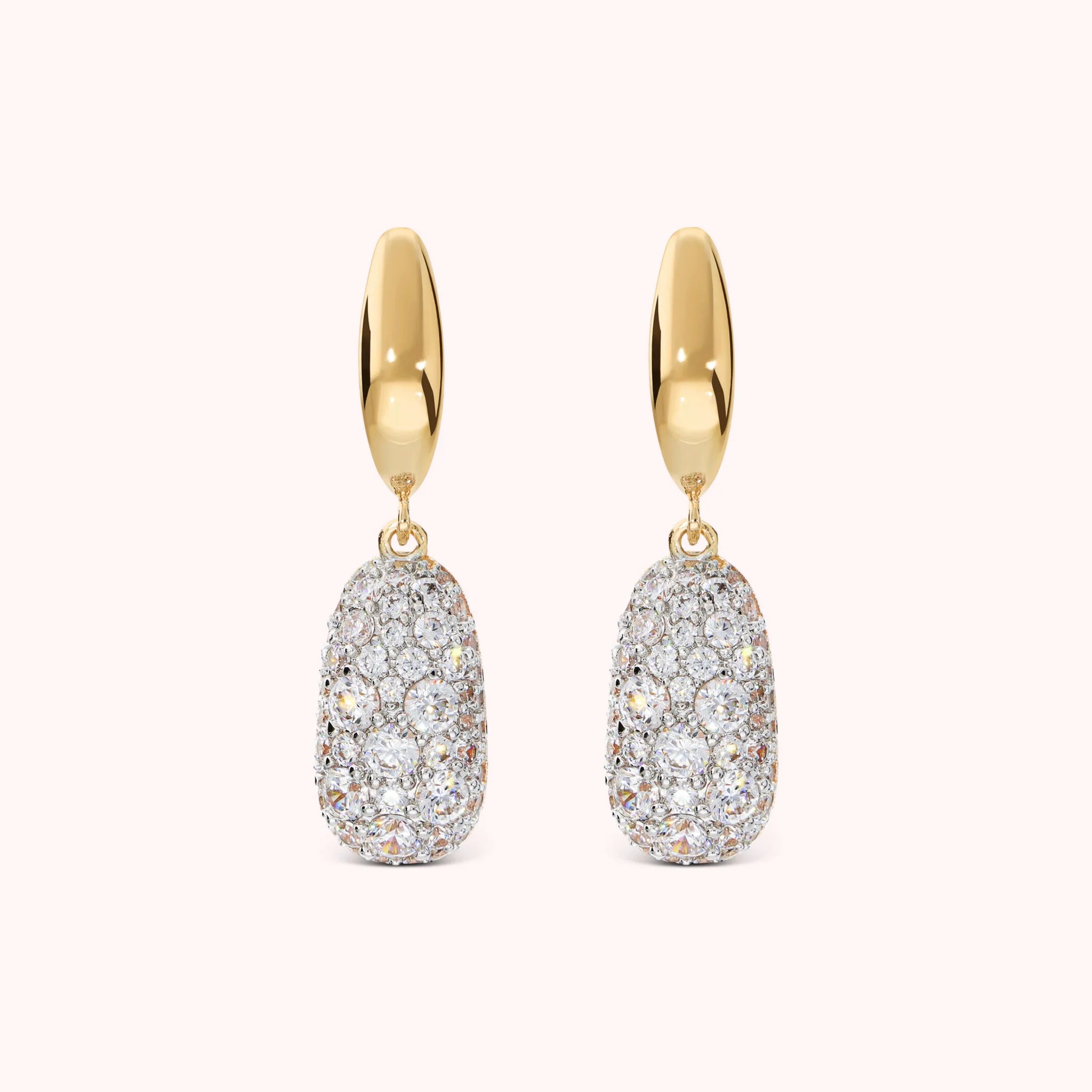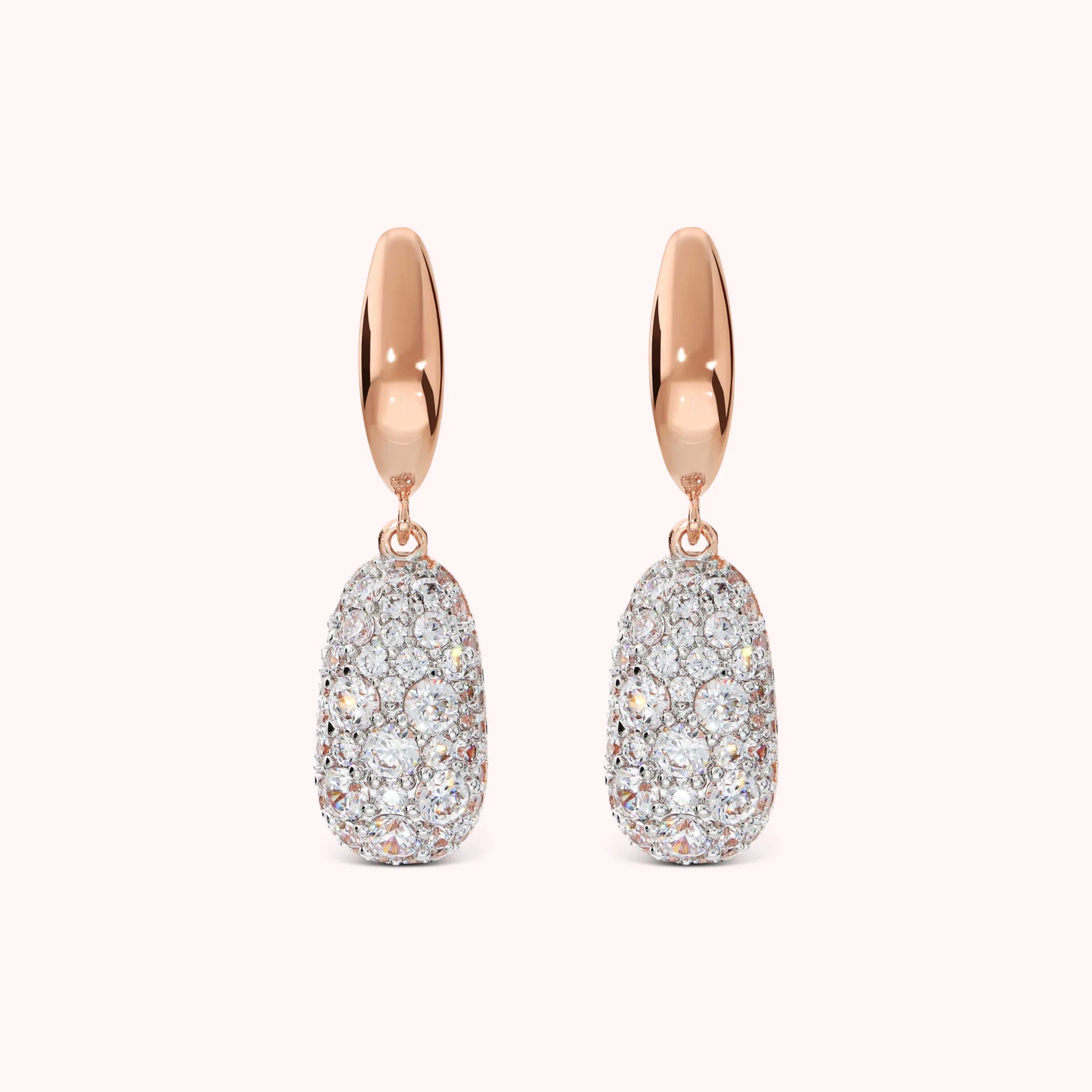 Bronzallure drop earrings crafted in Golden Rosé alloy, 18kt gold-plated, featuring a circular stud top and oval pendant in cubic zirconia pavé for a radiant look. Secure post and clutch fastening.