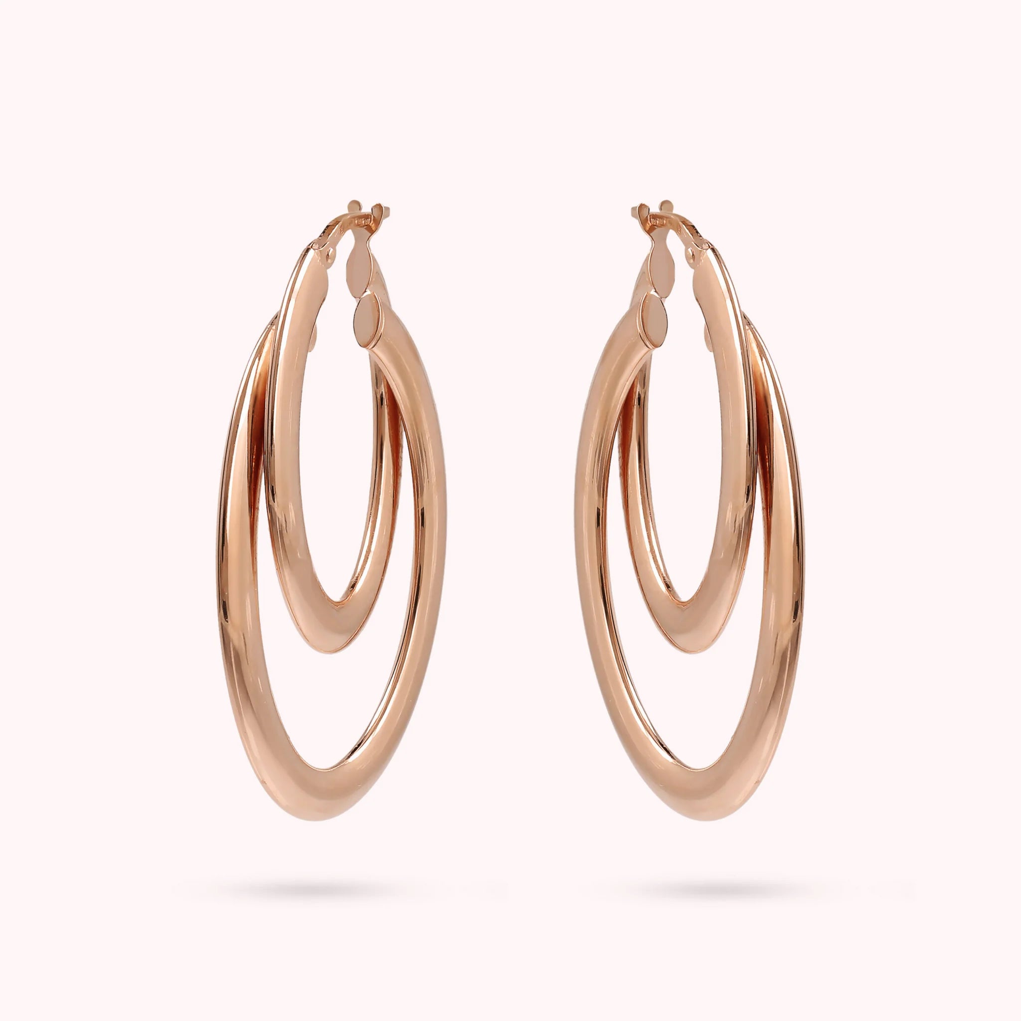 Bronzallure hoop pendant earrings made on a Golden Rosé base, 18kt rose gold plated, with double graduated circle; bayonet lock. Creation that enhances summer looks thanks to the brightness of rose gold. Ideal to combine with the jewels of the Purity collection, which highlights the elegance and refinement of the accessories through the combination of essential designs and sophisticated volumes.