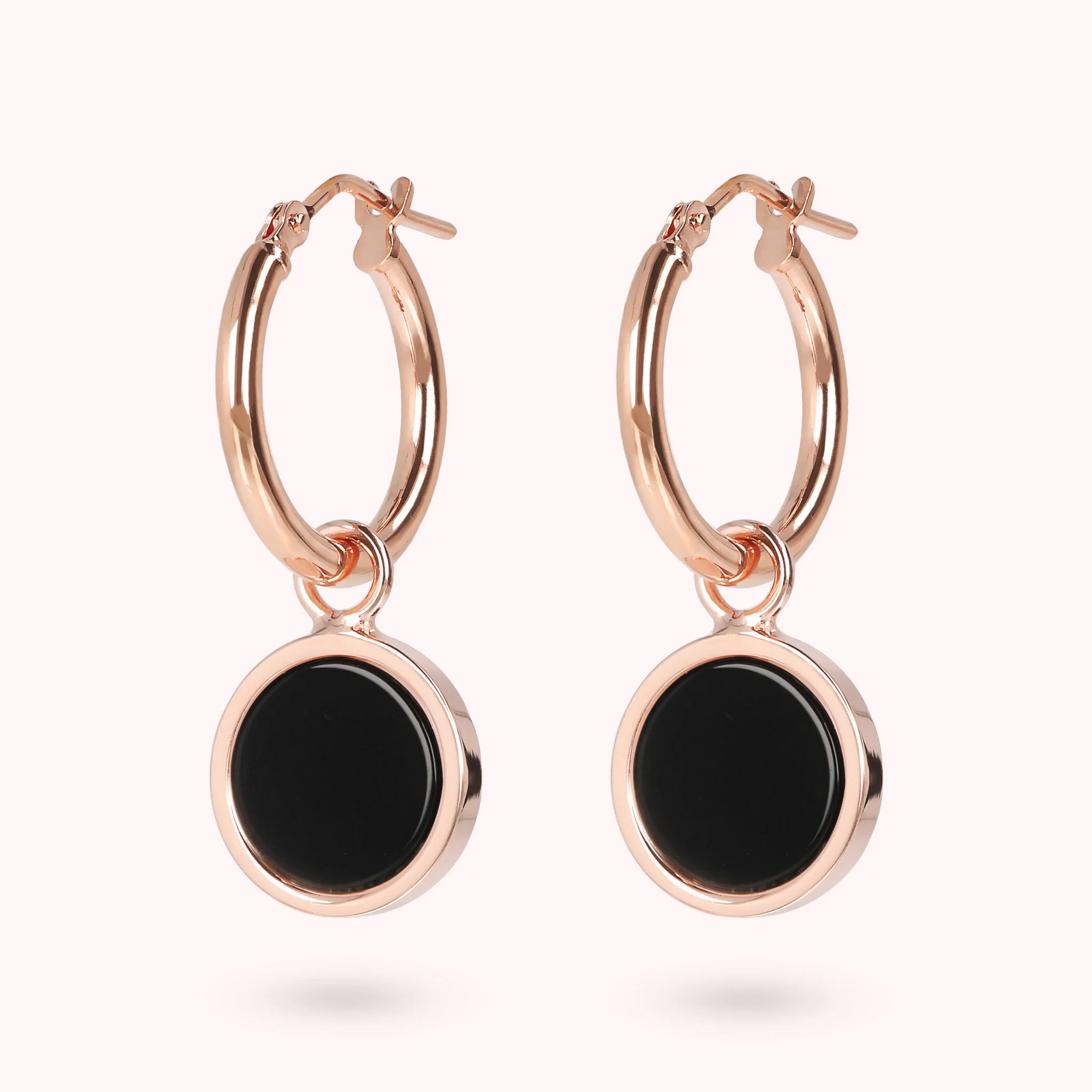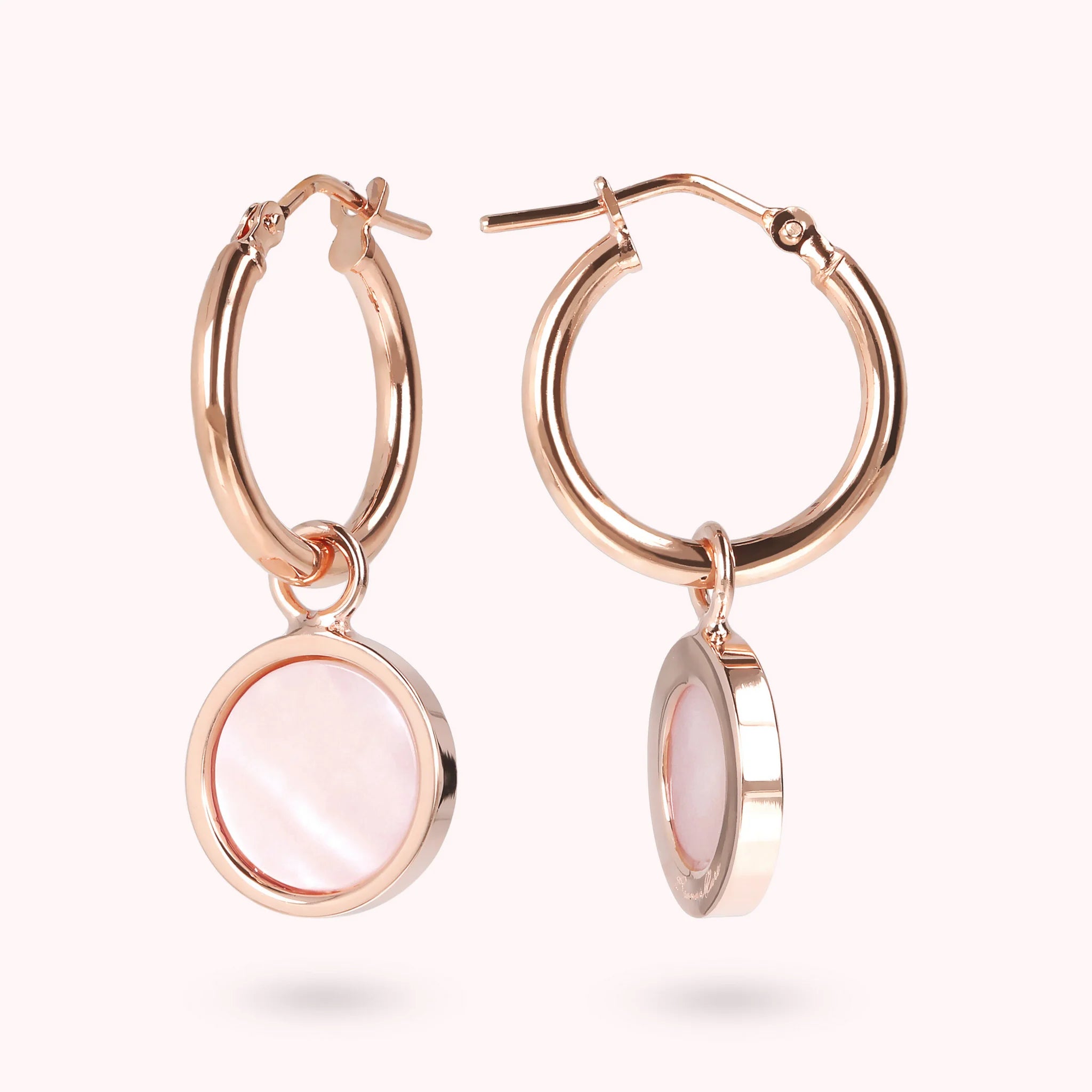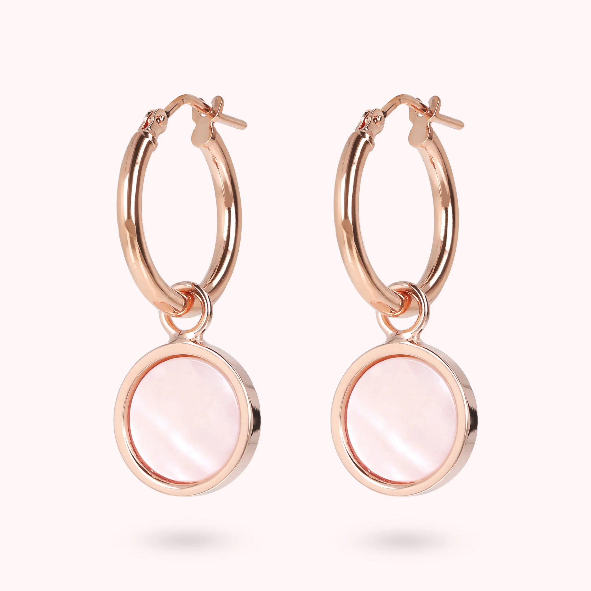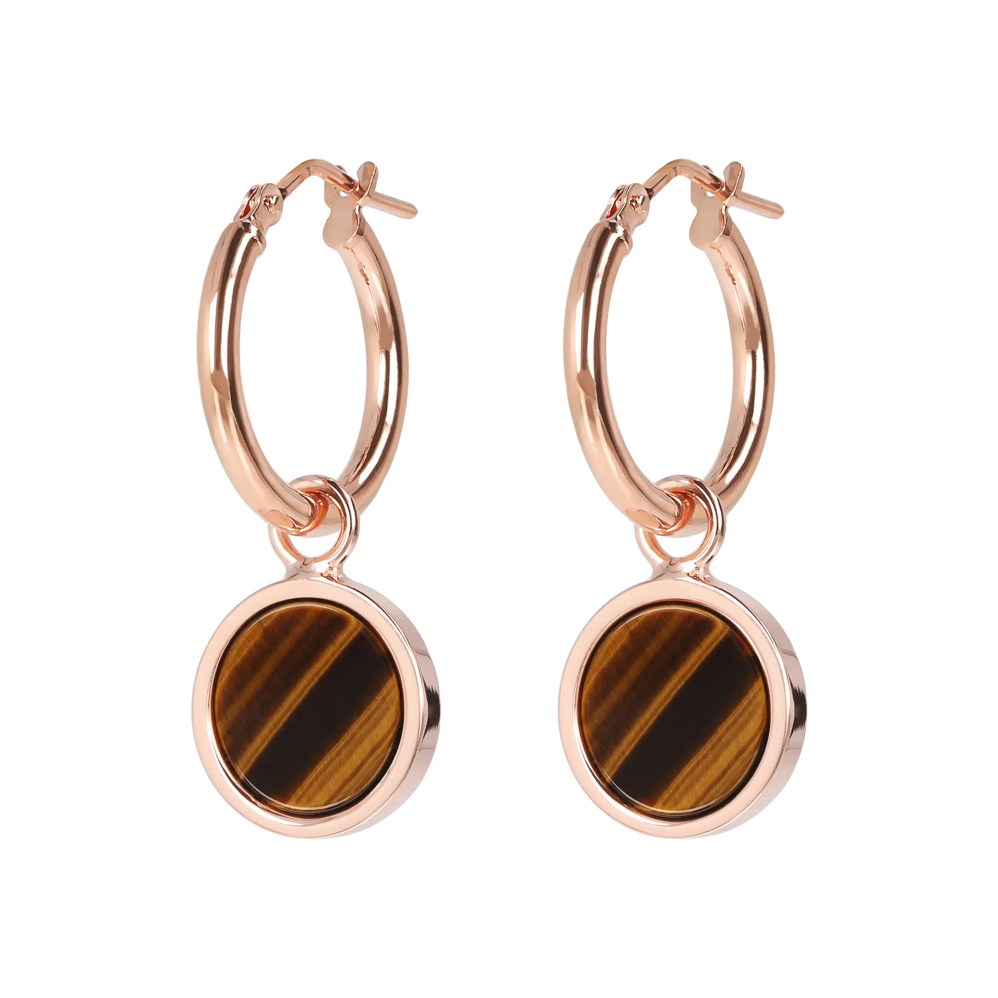 Bronzallure pendant earrings made of Golden Rosé alloy, 18kt rose gold plated with button pendant (10 mm) in flat natural stone mounted on an 18kt rose gold plated base; bayonet closure.