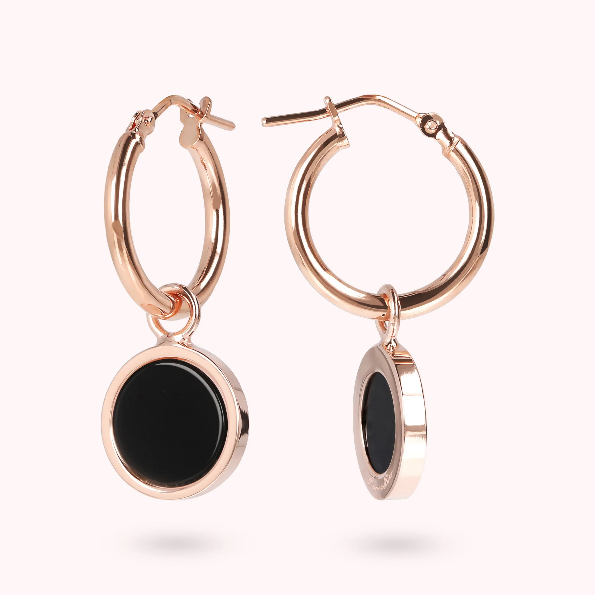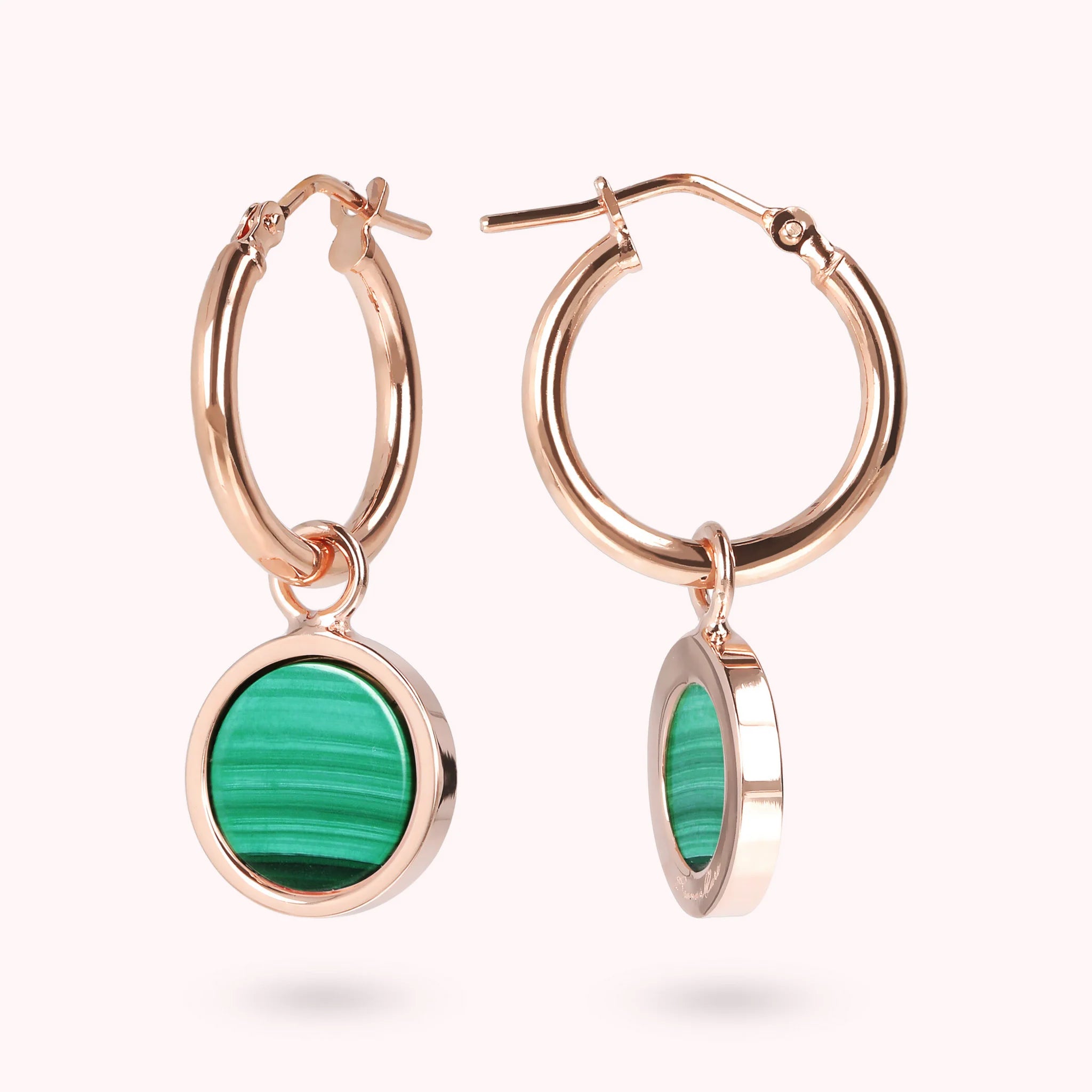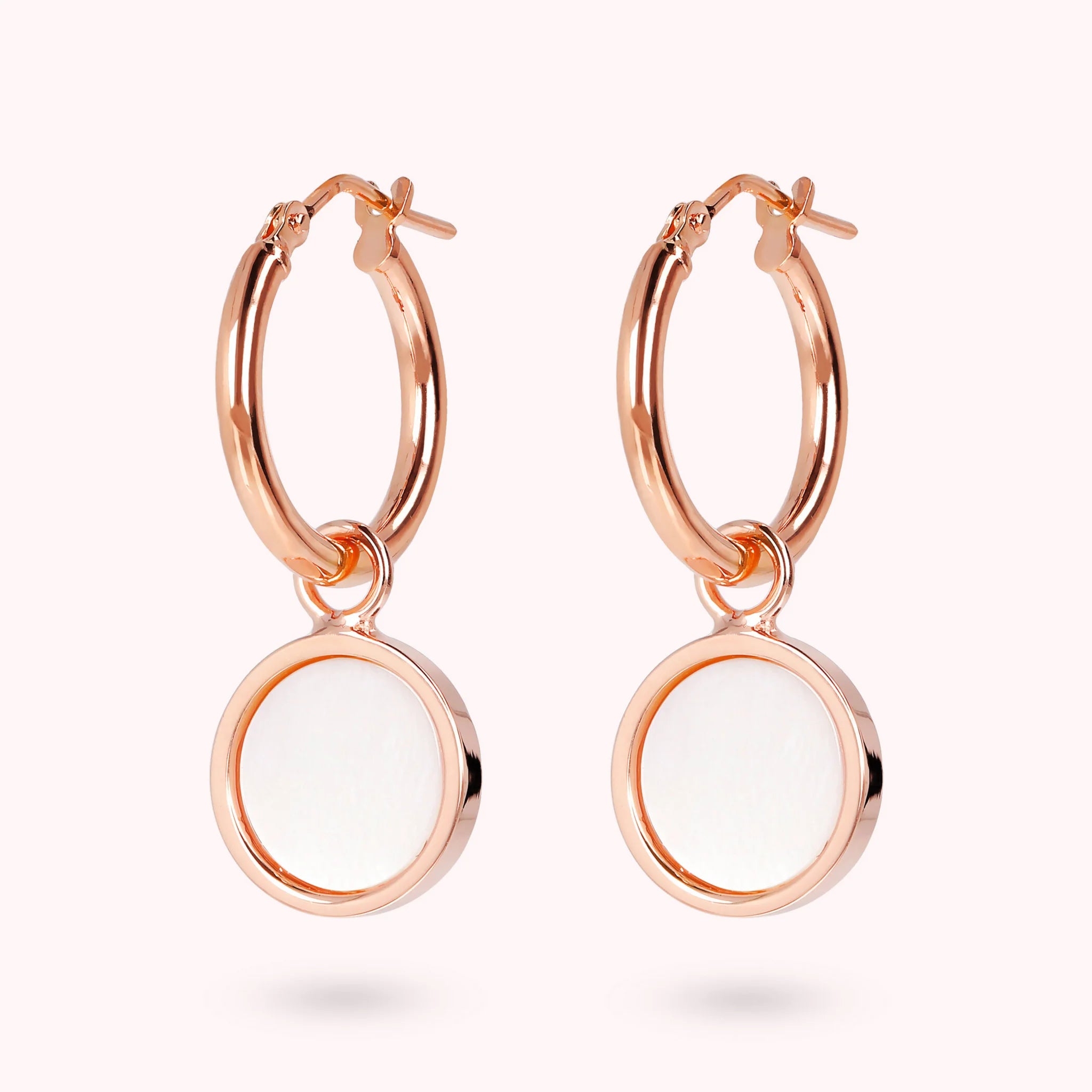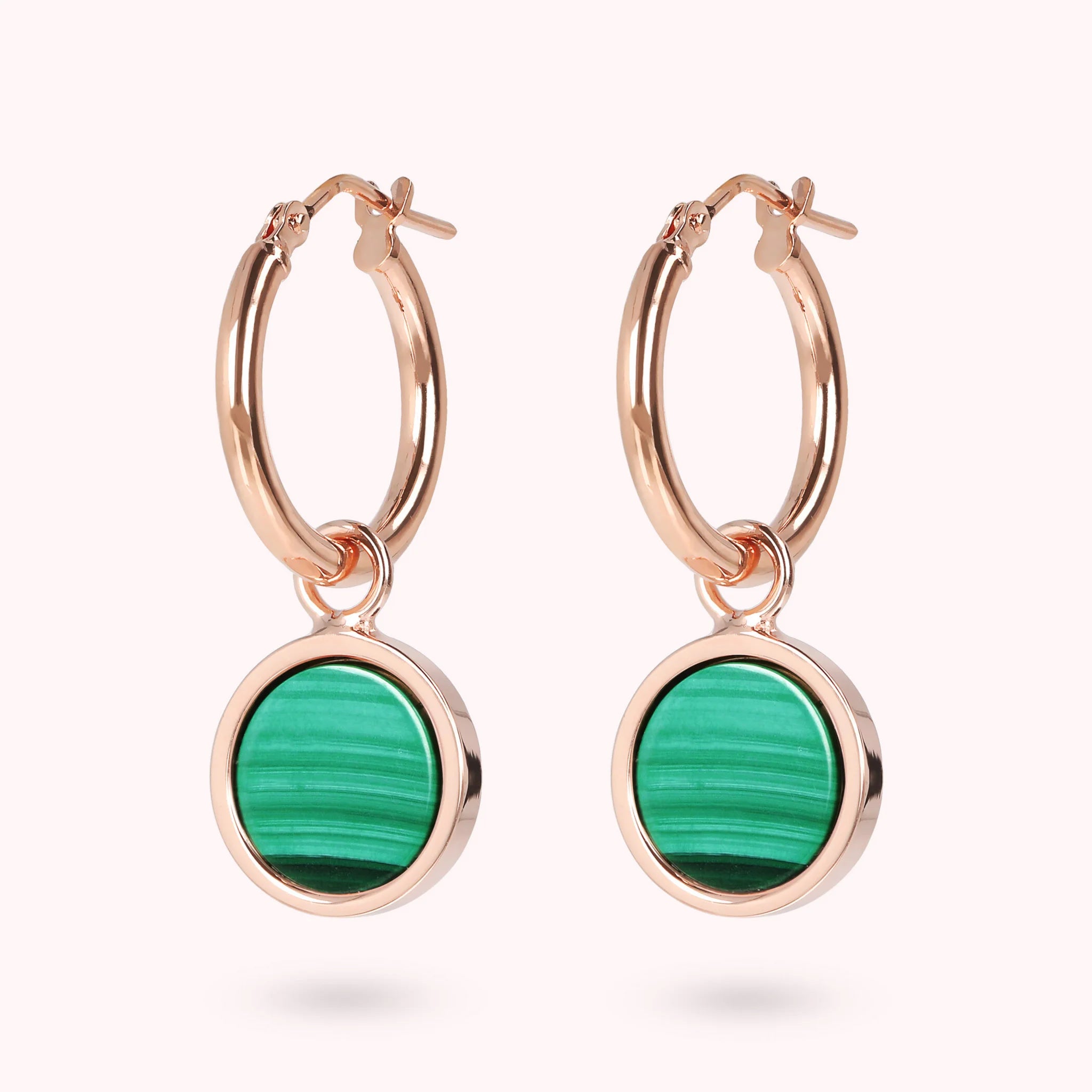 Bronzallure pendant earrings made of Golden Rosé alloy, 18kt rose gold plated with button pendant (10 mm) in flat natural stone mounted on an 18kt rose gold plated base; bayonet closure.